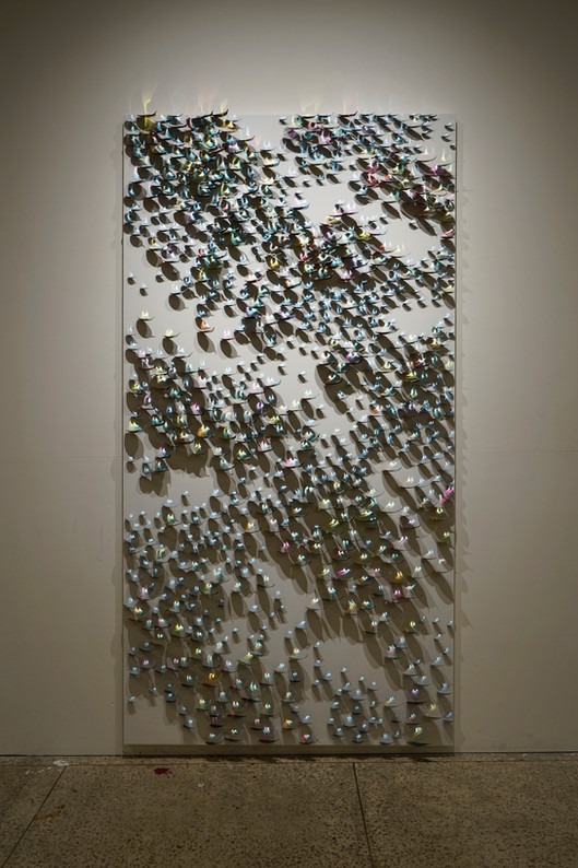 빛을 다채로운 경험으로 승화한 권용래의 작업은 스테인리스 금속판에 반사된 반짝이는 움직임을 가능성의 예술로 전환시킨다. 《영원의 불꽃(The Eternal Flame)》이라고 명명된 작품들은 내면과 외면 사이의 직관성을 동시대 정체성으로 승화한 ‘개념설치 작업’이다. 무엇도 정해지지 않은 21세기적 가치관은 빠른 전환의 시대 속에서 행선지를 고정하지 않은 부유(浮遊)하는 정체성을 갖는다. 개념 유목민의 시대, 주캐(The main character)와 수많은 부캐(The secondary character), 가상과 현실을 오가는 오늘의 정체성 그 자체는 감추면서도 드러내는 낯선 공유 속에서 ‘유동하는 빛’, 이른바 ‘Veiled & Floating’으로 기능한다. 작가는 사라지고 나타나는 카멜레온 같은 우리 시대의 경험 자체를 빛과 그림자의 경계 속에서 다룬다. 우리는 수많은 선택 속에 살수 밖에 없는 불안감 속에서도 상대성의 빛을 인식하는 고귀한 존재라는 것이다. 사회적 문제의식을 미적 아름다움으로 전환한 작업들은 “어차피 붕 뜬 세상 긍정의 빛으로 스스로 위로하는 가능성”을 지닌다.