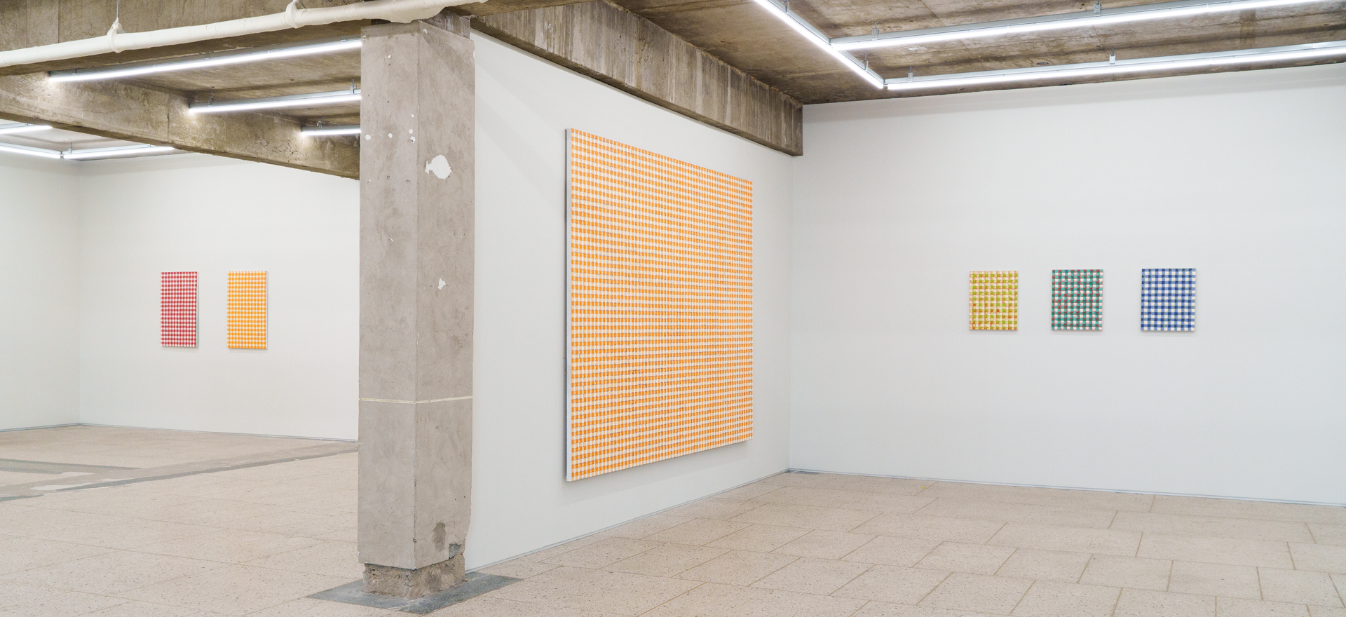 가나아트는 미국 위스콘신을 기반으로 활동하는 미셸 그라브너(Michelle Grabner, b. 1962)의 개인전 《Pattern》을 개최한다. 그는 회화, 드로잉, 영상, 조각 등의 다양한 매체로써 ‘패턴’을 소재로 한 작품을 발표했으며, 2013 휘트니 비엔날레의 공동 큐레이터이자 시카고 예술대학교의 회화과 학장을 역임하는 등 예술가, 기획자, 교육자로서 폭넓게 활동하고 있다. 그의 회화작품 20여 점을 소개하는 본 전시는 그의 국내 첫 개인전이자 작가가 표현하는 다양한 패턴의 확장된 영역을 조명하는 자리가 될 것이다. 그라브너는 지난 30여 년간 그의 일상과 주변 자연환경에서 발견할 수 있는 흔한 도상 및 재료들에 주목했다. 그는 특히 올이 굵은 황마 직물(burlap)을 캔버스 대신 사용하여, 직물의 엮인 실 일부를 손으로 풀어서 한 올씩 뽑아내는 독특한 초기 작업을 거친다. 이후 모양과 구성이 해체된 화면을 복원하듯 빈 공간을 젯소나 물감으로 칠하는 그의 기발한 프로세스는 치유와 명상의 행위로서 그의 작업에 자리하게 되었다. 그의 대표작으로 거론되는 ‘깅엄(gingham)’ 연작 회화는 거친 직물 위로 미국 전원주택의 가정적인 분위기를 대변하는 깅엄 식탁보를 시각화한 것이다. 작가는 그가 자리 잡은 미국 중서부 가정의 향수를 자극하는 친근한 격자무늬 패턴을 노동집약적인 반복 작업을 통해 표현함으로써 비가시적인 노동의 가치와 생산성을 기념한다. 이처럼 이번 전시에 소개된 그의 패턴화된 작업은 반복적인 과정에서 비롯된 일관성과 예측 가능성을 지닌 채, 너무나 익숙하여 주목받지 않았던 모티브를 새로이 번안하여 추상 언어로써 표현하고 있다. (출처 = 가나아트)
