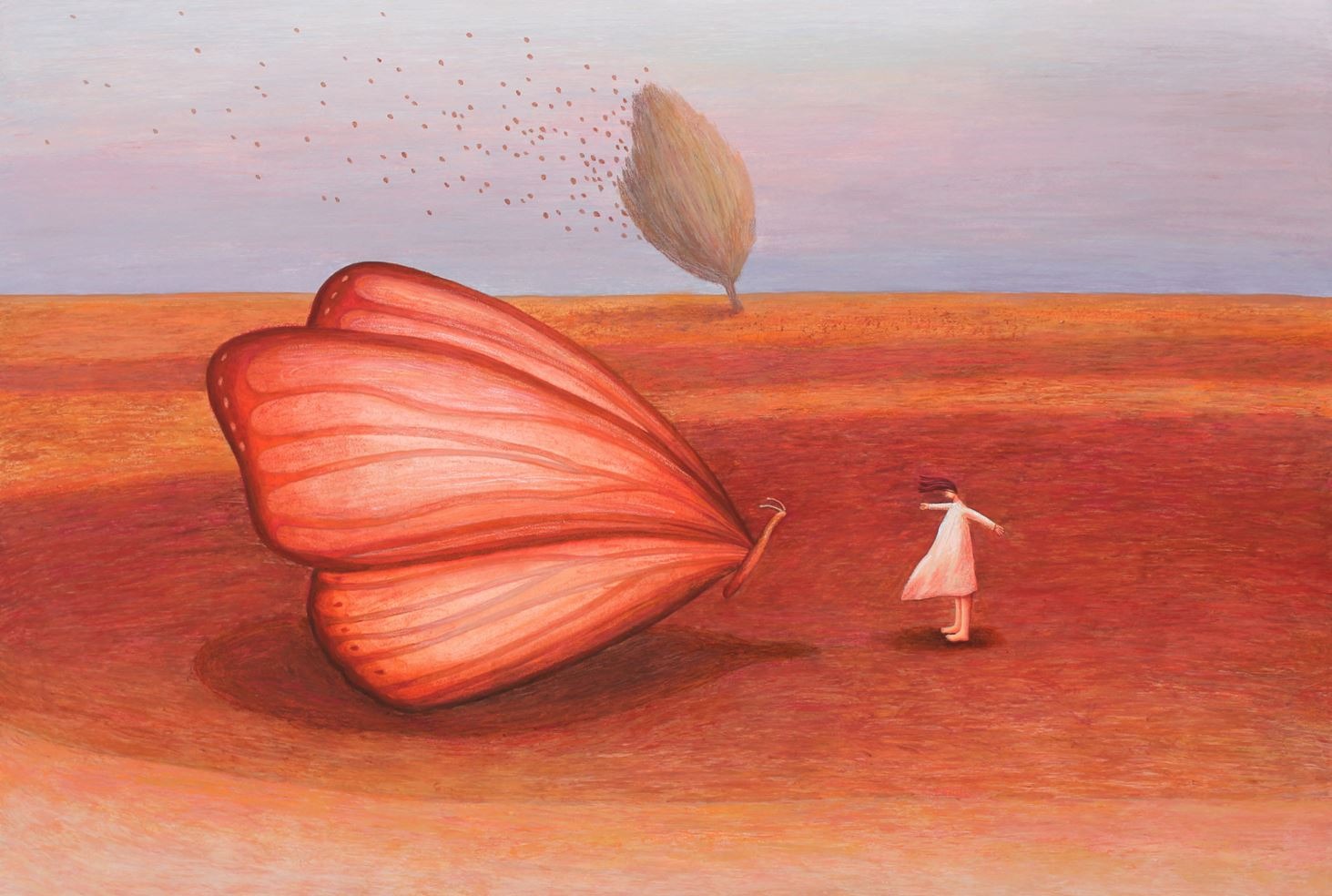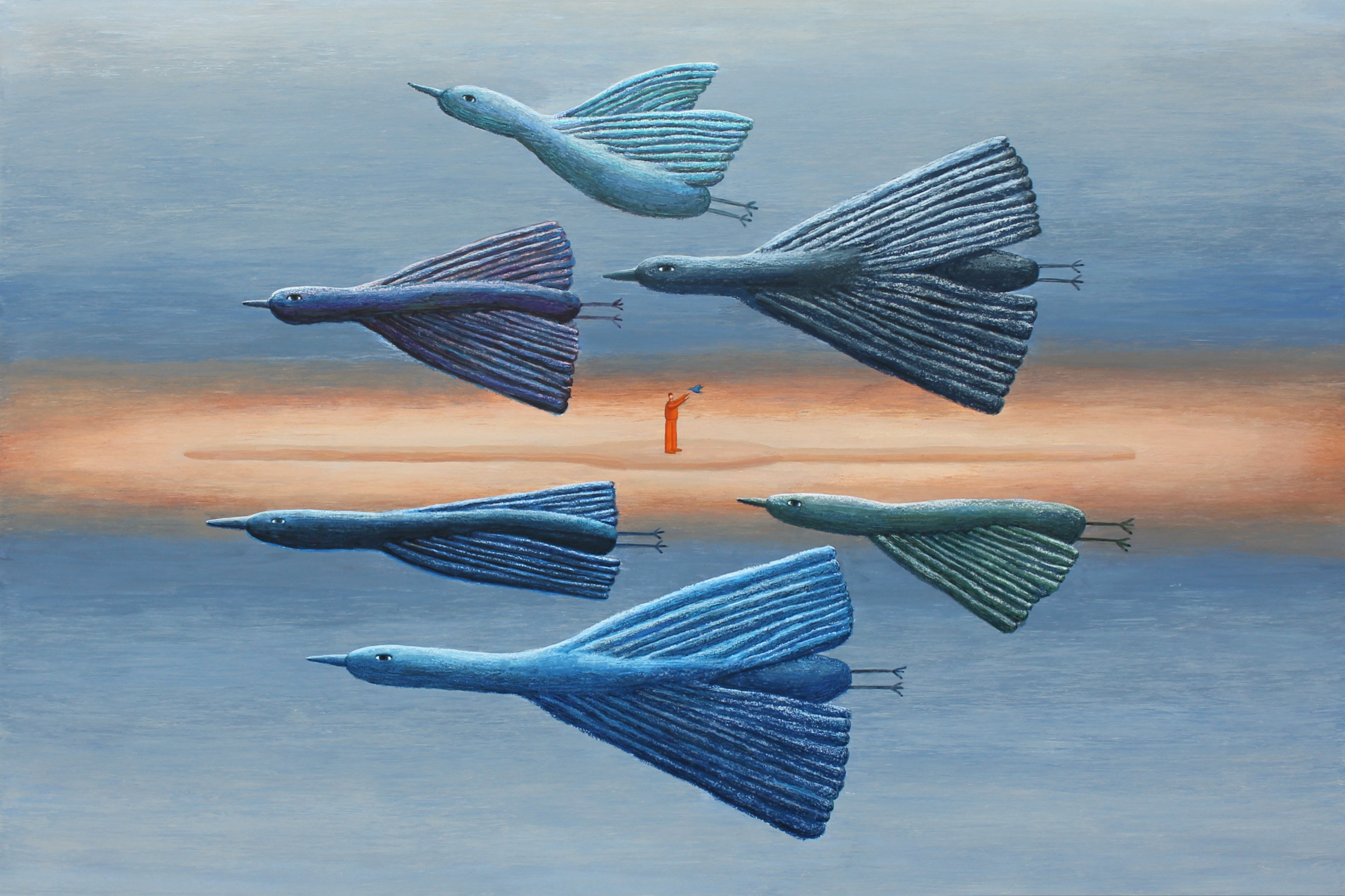 박유진 어제가 들려주는 오늘의 이야기 2023년 4월 6일 – 5월 3일 이번 전시는 ‘순환’과 ‘무해한 마음’ 두 가지 테마로 구분된다. 작가의 마음이 오롯이 담긴 작품에는 작가의 눈으로 본 동물과 사람들의 관계에서 오는 순수함과 애정을 담겨있다. 이번 전시에는 과거의 작품들과 함께 박유진 작가의 작업 흐름을 자연스럽게 살필 수 있다. 작가 박유진의 작품 ‘새의 섬’은 동물과 인간의 관계를 표현한다. 작품 속 여섯 마리의 새들은 각기 다른 따뜻함을 품고 있으며, 밀도 높은 색감의 따스함이 가슴속에 오롯이 전해진다. 작가는 동물과 인간의 관계에서 나오는 순수성과 사랑을 중요하게 생각한다. 모든 생명이 서로를 존중하길 원하는 ‘무해한 마음’이 작품 전체에 녹아 있다. 인간과 새들의 관계는 서로를 따르고 믿어주는 사랑과 믿음으로 표현되며, 그 따뜻함은 작품에서 느껴지는 가장 큰 감성적 요소다. 작가는 동물의 사랑이 인간의 이기적이고 부분적인 사랑과 달리 무한한 애정과 믿음으로 가득 찬 것에 큰 감동을 받는다. 동물과 사람, 사랑과 상처의 공존을 보여주는 작품 속에서 동물들의 순수하고 끝없는 사랑이 상처입은 인간에게 주는 위로와 치유의 힘을 느낄 수 있다. 작가 개인이 느낀 경험은 잔잔하게 관객의 마음에 전해진다. 작품 속에 등장하는 동물들은 인간과의 관계에서 오는 상처를 입은 존재지만 그들은 여전히 순수하고 미움 없는 사랑을 품고 있다. 인간은 관계성에서 빠져나올 수 없다. 복잡한 관계 안에서 서로를 아프게 하고 외롭게도 한다는 사실은 불가피하다. 이러한 과정에서 인간은 많은 상처를 주고받으며, 결국은 혼자 남아있음을 느낀다. 이때, 인간은 자신을 지탱해 줄 무언가를 찾아 나서기도 한다. 작가는 이러한 상처와 고독감을 달래 줄 수 있는 위로와 안정의 세상을 그린다. 박유진 작가는 서로를 담담하게 보듬어주는 모습들을 평면 위에 담는다. 이 대상은 강하지도 힘이 있어 보이지 않으며, 오히려 부드럽고 약한 모습이지만 서로에게 큰 위로가 된다. 아무 말없이 안아주는 것만으로 서로를 치유한다. 사람들이 더 이상 상처받지 않기를 간절히 바라고, 서로를 사랑해 주길 바라며 ‘무해한 마음’ 시리즈를 소개한다. <어제가 들려주는 오늘의 이야기>는 모든 생명이 연결되어 있다는 ‘순환’을 뜻하는 작가의 생각에서 기인한다. 오늘을 살아가는 우리의 현실 속에서 어제와 내일을 발견하는 틈새가 되길 바라는 마음이다. “사람은 끊임없이 새로운 문을 열며 살아가는 존재라고 생각한다. 새로운 지식을 알게 되거나, 새로운 사람을 만나게 되거나, 새로운 감정을 알게 될 때마다 자신이 있던 곳에서 문을 열고 나가 새로운 세계를 보게 되는 것이다. 우리는 익숙해진 일상에서 불현듯 새로운 세계로 이어주는 문틈 사이를 보게 될 때가 있다. 삶에 있어서 새로운 것이나 익숙하지 않은 것들은 흘러가는 대로 흘러가던 삶을 한 번씩 잡아주며 살면서 잊고 있었던 삶에 대한 의문을 던져준다.” -문틈, 박유진 (출처 = 히피한남)