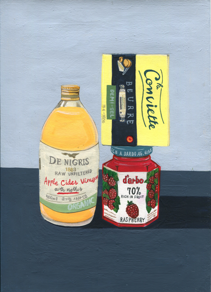 일상 속에 쉽게 마주하는 사물들과 개인의 취향이 담긴 사물들을 수집하며 그들을 그림 그리고 도자기로 만들었다. 사물의 형태 뿐 만 아니라 라벨의 이미지와 문자를 옮기며 순수한 조형과 디자인적 미학을 추구하려 하였다. 특히 여러 사물들을 인위적으로 배치하면서 익숙한 사물들을 낯선 이미지로 만들면서 고정관념 없이 자신만의 잊힌 기억 한 조각을 찾을 수 있도록 의도하였다. 흙을 통해 사물의 형태를 만들고 페인팅을 통해 선택한 대상을 표현하는 과정을 거치고, 불에 두 번 구워진 뒤 나온 도자기는 이미 알고 있는 사물이 아닌 새로운 대상이 되면서 모두에게 자신의 감정을 담을 수 있는 기억의 한 조각이 되어줄 것이다.