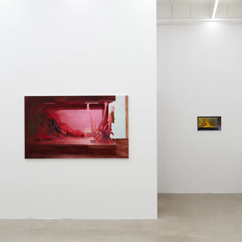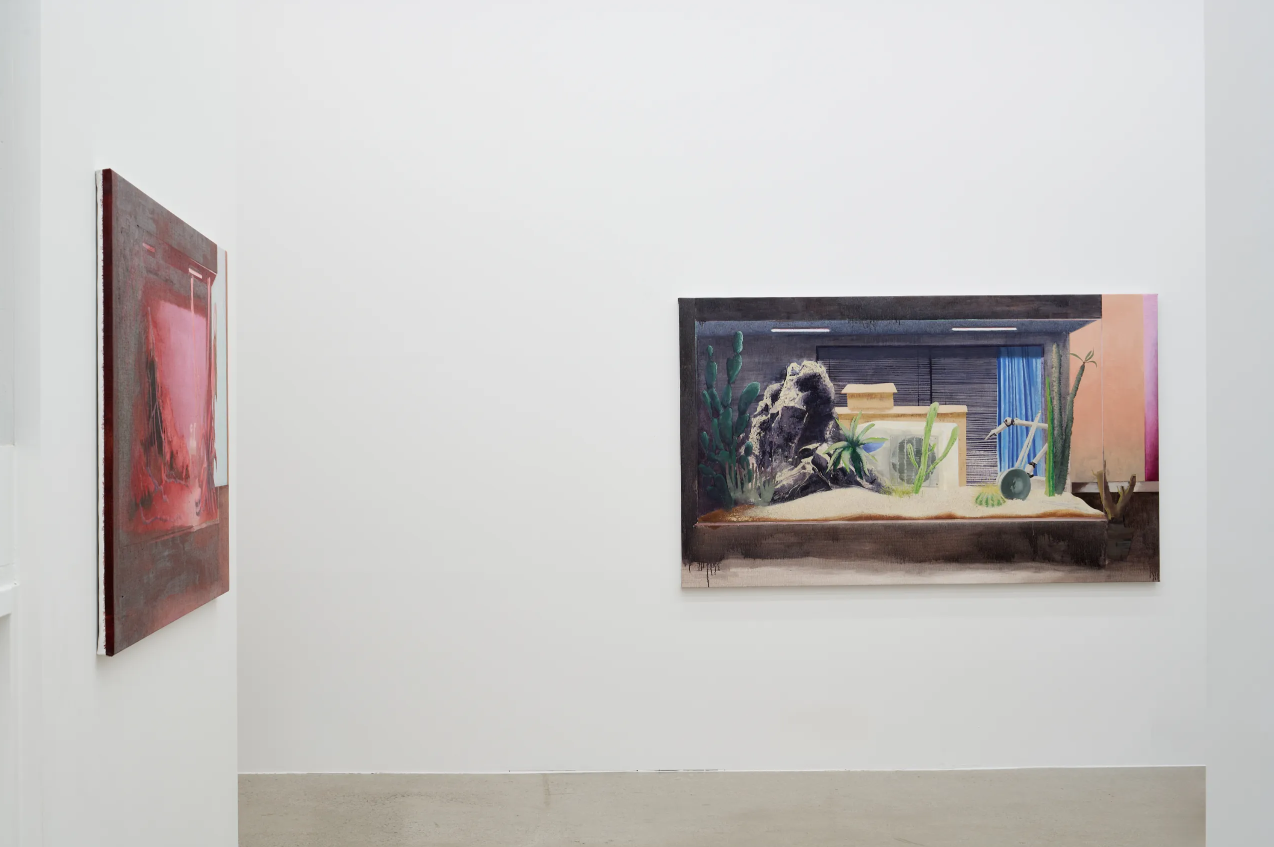 이 전시에서 우리는 거친 자연이 가두어져 있는 풍경을 보게 된다. 유리나 투명한 용기에 자연환경을 재현한 작은 정원을 테라리움이라고 부른다. 작가는 회화적 공간과 그것을 표현하는 방법 사이의 관계를 탐구하면서 자연과 인공의 경계를 탐색하는 독특한 테라리움을 만들어낸다. 그의 작업은 실제 유리 수조나 테라리움과 마찬가지로, 작가의 가장 개인적인 문제의식과 관심이 함께 오랫동안 길러지고, 자라나 독특한 생태계로 변화하는 과정을 전시하는 역할을 한다. 작품 속 테라리움은 간과되는 공간이 어떻게 그것을 둘러싼 사람들의 기록을 담고 있는지를 시사한다. 한때는 장식을 위한 그러나 지금은 잡동사니로 가득한, 내밀함과 산소가 부족한 이러한 공간은 기후변화의 위험을 암시하고 점점 줄어드는 사적공간의 결핍을 말한다. 작품에 묘사된 전이 공간의 세계(Liminal Worlds)는 축소되어 나타나 보인다. 그 안에는 주로 본질이 실용적인 사물로 가득한데 때론 밀실 공포증을 불러일으킬 것 같다. 작품에 묘사된 장소와 물체 그 자체는 우리의 감각을 압도한다. 화덕, 기름통, 타버린 케이블, 가솔린 등의 물체는 그 특유의 냄새를 상기시킨다. 오렌지빛의 유해하고 먼지 낀 도시 공기는 우리가 보는 세계의 윤곽을 그려주기도 한다. 그가 묘사한 세계는 분명 물질적이고 만질 수 있는 것들이기 때문에 마치 우리가 디지털 세상에 마음을 빼앗긴 사이에 남겨진 껍질들을 은유하는 것 같다.