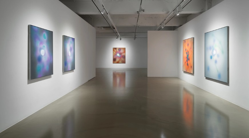 백 개의 태양 최지목 개인전 갤러리바톤은 최지목(Jimok Choi, b. 1981)의 개인전 《A Hundred Suns(백 개의 태양)》을 2025년 8월 20일부터 9월 20일까지 한남동 전시 공간에서 개최한다. 수년 동안 몰입해 온 "잔상" 시리즈의 형식과 개념이 한층 무르익은 시기에 열리는 이번 전시는, 관객 참여형 퍼포먼스(〈당신의 망막은 나의 캔버스〉)를 아우르며, 작가가 일관되게 추구해 온 “지각적 회화(Perceptual Painting)”의 세계를 심층적으로 탐구할 기회를 선사한다. 괴테의 색채론 『Zur Farbenlehre』(1810)에 기술된 “눈이 태양과 같지 않다면, 우리는 빛을 어떻게 볼 수 있겠는가? 우리들 속에 신 자신의 힘이 살아 있지 않다면, 신성이 우리를 어떻게 매혹시키겠는가?”라는 주장은 최지목의 잔상 시리즈를 이해하는 첫걸음이다. 괴테는 색을 빛의 물리적 속성에 종속시킨 뉴턴의 광학이 지닌 한계를 지적하고, 빛에 노출된 신체 기관의 경험과 감각을 색채의 본질이라고 주장하였다. 특히, 특정 광원에 오래 노출된 후 망막이 즉각적으로 생성하는 보색 잔상(Nachbilder, 적색-녹색, 청색-황색 등) 개념은 작품의 색채 구성과 미학적 구조의 핵심을 형성한다. 전시 제목이 암시하듯이, 최지목의 페인팅은 태양과 마주한 자신의 망막이 형성한 시각적 반응, 보색 잔상에 대한 회화적 아카이빙이다. 태양을 정면으로 응시한 후 눈을 감았을 때 나타나는 형형색색의 환영은 본래의 색과는 전혀 다른 보색으로 나타났다가, 점차 연해지고, 이내 사라진다. “결국, 나는 눈 속의 세계를 그린다”라는 작가의 고백은, 빛이 사라진 자리에서 나타나는 무작위적이고 예측 불가한 환영들이 그가 다루는 대상이자, 안료라는 물질로 번역해야 하는 매체임을 나타낸다. 흥미롭게도 입자이자 파동인 빛의 이중성은 회화의 기교적인 면에서 작가의 작업 방식과 밀접하게 연결되어 있다. 감각에 의존하여 잔상을 묘사함에 있어, 에어 브러쉬는 경계 없는 중첩과 부유하는 듯한 색 덩어리의 비물질적 존재감의 묘사에 있어 탁월하다. 지배적인 잔상은 흐르듯 두텁게, 잔향을 잃어가는 이미지는 색 입자의 엷은 산포로 처리되며, 망막에 “맺히고 사라지는” 이미지의 속성을 시뮬레이션한다. 동시에, 브러시로 캔버스에 물리적인 접촉을 일으키는 부분은 작가가 의도적으로 경계를 구축하고 고착시키는 부분에 집중된다. 빛의 파동이 겹치며 경계가 뚜렷한 간섭무늬를 형성하듯, 브러시로 강조된 이미지들은 감각의 재연을 넘어 순수 추상을 향한 작가의 갈망을 은연중에 드러낸다. 관객 참여형 퍼포먼스 〈당신의 망막은 나의 캔버스〉 ① 9월 2일(화) 19:00~19:15 (Frieze Seoul 한남 나잇) ② 9월 6일(토) 14:00~14:30, 17:30~18:00 (Frieze Seoul Week)