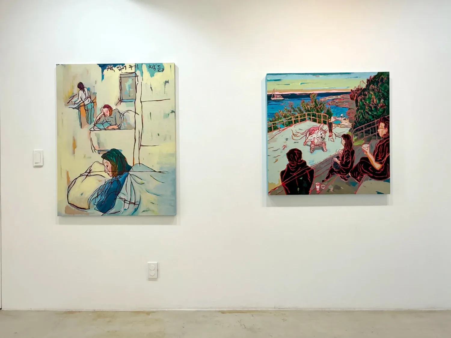 물불 안 가리는 사람 방정아 개인전 방정아 작가의 개인전 《물불 안가리는 사람》의 작가노트 첫 줄에 놓인 이 문장은, 서로 다른 성질이 충돌하고 섞이는 지점에서 오늘의 삶을 읽어내는 작가의 시선을 보여준다. 이는 단순한 포용을 넘어 우리가 직면한 현실을 향한 비판적 질문이다. 국가 간 권력 관계, 불합리한 사회 구조, 여성의 권리와 인권, 기후 위기와 환경 문제, 핵 발전과 같은 첨예한 의제들은 개인의 삶에 깊숙이 스며들며, 동시에 해결하기 어려운 모순으로 다가온다. 무엇 하나만 선택할 수 없는 상황 속에서, 우리는 어떻게 살아야 하고 예술은 무엇을 해야 하는가. 《물불 안가리는 사람》은 바로 이 질문에서 출발한다. 작가의 화면에는 서로 무관해 보이지만 묘하게 맞닿은 이미지들이 자리한다. 버스 창밖의 표범과 호피무늬 가방을 끌어안은 여자, 발끝을 파고드는 닥터피쉬와 무표정한 얼굴, 복숭아와 쪽파가 담긴 바구니처럼, 어긋나 보이는 사물과 존재들은 한 화면 안에 공존하며 낯설게 마주한다. 작가는 ‘물과 불’처럼 정반대의 성질을 가진 사물과 상황을 함께 붙잡고, 그것을 끝내 살아내는 인간의 태도에 주목한다. 익숙한 풍경 속에 드러난 균열과 이질적인 것들의 포용은 일상의 복잡한 감정과 사회적 긴장을 드러낸다. 이는 곧 우리 일상 속에 겹겹이 얽힌 모순―삶과 죽음, 권력과 약자, 자연과 인간―을 비추는 은유다. 이번 전시에서는 캔버스 회화와 더불어 실험적 작업을 선보인다. 목화솜 이불 속통을 펼쳐 제작한 대형 솜 작업, 전통 한복 천 위에 채색된 작품들은 사적 기억과 물질의 층위를 새로운 표면으로 변형한다. 이는 방정아 작가가 오랫동안 탐구해온 리얼리즘적 시선과 사회적 비평을 확장하는 동시에, 규격화된 사각 프레임을 넘어서는 회화의 또 다른 가능성을 제시한다. 《물불 안가리는 사람》은 결국, 선택을 강요받는 세계 속에서 ‘무엇이든 해야만 하는’ 우리의 처지를 드러낸다. 물과 불, 대립과 모순을 가리지 않고 껴안는 행위는 불편한 공존의 현장을 드러내며, 예술은 그 산만하고도 파편적인 현실을 관통하는 질문이 된다. 방정아 작가의 작업은 관람객에게 흩어진 조각들을 스스로 꿰어내고, 삶과 사회를 다시 성찰하도록 이끈다. *출처 및 제공:맥화랑