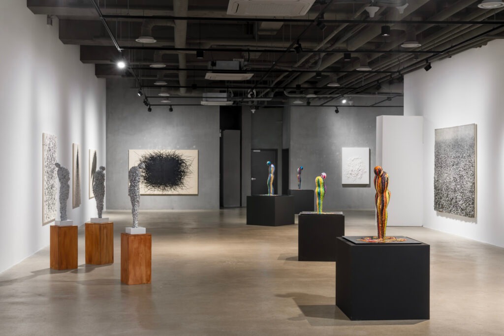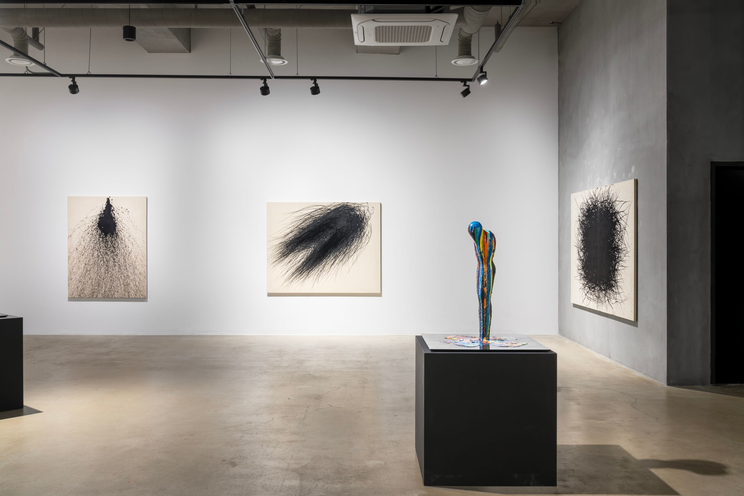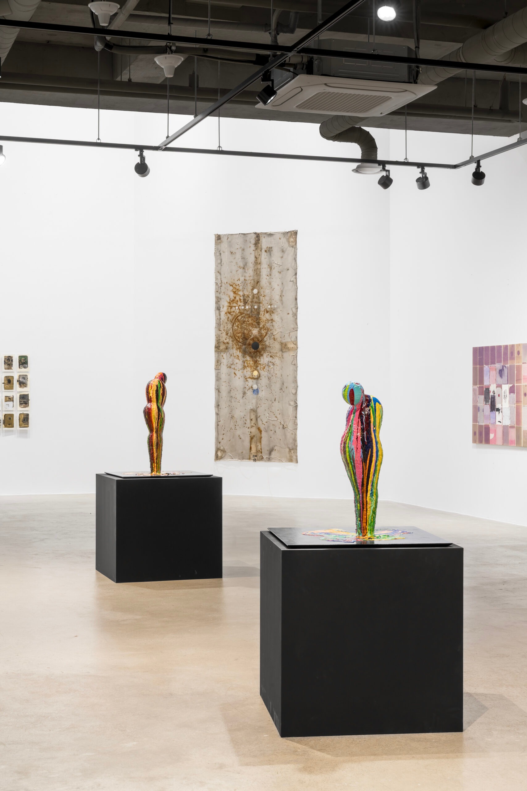 데비 한의 〈그림자 사람들(Shadow People)〉에서 고개 숙인 사람의 굽은 등과 어깨와 가슴을 타고 흘러내리는 것이 정화의 흐름이다. 세계의 간교한 술수와 온갖 풍조에 요동하는 존재, 그 마음에 쌓인 응어리를 씻어내는 형형색색의 정화다. 흘러내리는 것은 단순한 안료가 아니다. 그것은 물질이되 가장 비물질적 강도가 강한 물질이고, 영혼과 육체 사이의 막이 가장 얇아지는 순간 같은 것이다. 정화가, 모던 아트의 해독제가 조각을 타고 내려와 대지로 번진다. 조각과 세계는 다시 화해한다. 예술이 세상과 동떨어진 것이 되어야 할 어떤 이유도 여기에는 없다. 참으로 아름다운 정화의 표현이다.