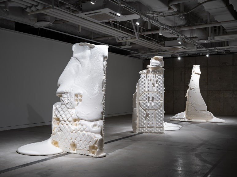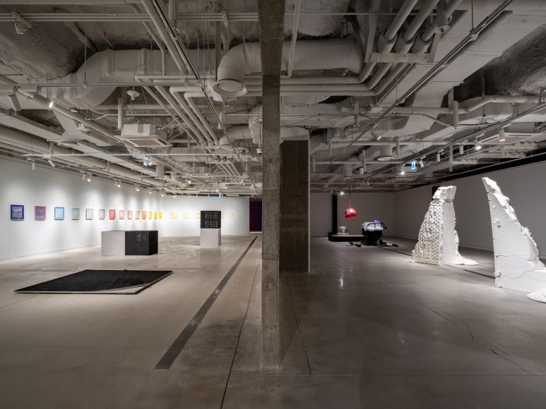 수원시립아트스페이스광교 × 경기문화재단 2025 경기 시각예술 창작지원 성과발표전 《생생화화 生生化化 : 화두 話頭》 말(言)보다 앞서가는 것 수원시립아트스페이스광교와 경기문화재단은 창작 생태계를 최우선으로 하는 문화예술기관으로서 2025년 경기시각예술 창작지원 결과발표전 《생생화화 : 화두》를 협력하여 개최합니다. 두 기관의 만남을 통해 기금 지원사업의 한계를 벗어나 창작-비평-전시의 선순환 시스템으로 지역 예술의 지형도를 그려보고자 합니다. 올해는 ‘화두’라는 주제로 창작자 각각의 화제에 집중하는 한편, 오늘날 포화상태에 이른 장치를 재정립하려는 시도로서 공통의 태도를 연결해봅니다. 9인의 창작자는 도구나 기계로서의 장치뿐만 아니라 각종 제도를 발생시키고 제어하는 개념, 의식, 담론에 이르기까지 광의의 의미에서 장치 체계를 분석하고 자신의 방법론으로 조형화, 시각화합니다. ‘화(말씀 話), 두(머리 頭)’ 란 본래 수행자가 깨달음을 얻기 위해 탐구하는 문제를 의미하는 것처럼, 창작은 말보다 앞서가는 것을 발견하는 여정입니다. 세상의 상태와 삶의 방식, 실존에 대해 의문을 일으켜 자신의 언어로 답을 구하는 이들의 ‘화두’가 우리가 처한 현실을 다각도로 읽어내는 ‘서두’가 되기를 기대합니다. 화두 1. 이수지, <닮은 것>, <넓은 것> 이수지는 작업을 만들기 위한 도구나 장치를 손수 제작한 뒤, 자신의 몸이 개입하여 장치의 동력을 수행함으로써 결과물을 만듭니다. 서체를 구현하는 글자 쓰는 기계(2018), 종이를 만드는 기계(2018-2019)의 구동원리는 곧 형식을 찾기 위한 탐구였습니다. ‘100줄의 실을 합사하는 합사기’(2022)의 커다란 바퀴를 돌려 굵은 실을 만들고, ‘속이 빈 정육면체를 만드는 도구’(2023)의 안과 밖, 위아래를 몸으로 통과하며 종과 횡으로 실을 꿰어가는 과정은 형식과 내용, 둘 중 어느 것도 우위를 차지 하지 않는 평행선을 향한 실험입니다. 작가는 이번 전시에서 과정을 유추할 수 있는 장치 대신, 정육면체가 되어가는 상태를 암시하는 〈넓은 것〉을 펼쳐 놓습니다. 형식 그대로의 ‘것’을 드러내는 미완의 상태로 내용의 의미망을 벗어나려는 시도입니다. 화두 2. 최태훈, <지지체들> 최태훈은 사물을 이용해 재료의 형태와 물성으로부터 발생하는 조형 언어를 실험합니다. 2017년에는 기성품의 형태와 용도를 분석하여 사물 본연의 기능을 바꾸거나, 일련의 규칙에 따라 DIY 모듈 가구를 재조립하는 통제의 방식이었다면, 2021년부터는 건축용 발포 우레탄 폼을 사용하여 통제하기 어려운 우연성과 증식하는 생명력을 적극 끌어들입니다. 이케아 홈페이지 알고리즘에 의해 추천 받은 가구들로 〈자소상〉(2020)을 만들고, 전시 공간을 조각의 뼈대로 접근한 〈살(SAL)〉(2021)처럼 최태훈은 사물의 조형 언어를 유기체적 관점에서 바라봅니다. 신작 〈지지체 1,2,3〉(2025)은 작업과 전시에서 가시화되지 않는 사물들을 조합한 틀에 발포 우레탄을 부어, 단 시간에 내부 공간에서 부풀며 발생하는 형(刑)과 비정형의 상호작용을 조형의 일부로 개입시킨 작업입니다. 화두 3. 안성석, <우리는 미래를 포기하고 그 자리에 비관과 냉소를 채워 넣는다> 안성석은 사진, 영상, 게임, 그래픽에 이르기까지 미디어의 속성을 자전적 경험안에서 사유하며 작업을 선보이고 있습니다. 2009-2012 〈역사적 현재〉 연작에서는 유적지, 광장, 공공장소 등지의 과거 이미지와 장소의 현재를 물리적으로 대비시키며 사적 기억과 공적 역사를 교차하는 매체로서 사진이 가진 명증성을 활용하였습니다. 3D 모델링, 게임 엔진, VR을 활용한 영상 작업은 현실에 기반한 가상성으로 세대, 시대, 역사와 개인의 간극이 빚어내는 세계를 매개합니다. 〈우리는 미래를 포기하고 그 자리에 비관과 냉소를 채워 넣는다〉(2025)는 모션 시뮬레이터를 통해 불가항력적인 미래의 불안을 은유하는 작업입니다. 리부팅할 수 없는 현실과 중력이 부재한 가상은 평행선상에 놓인 또다른 세계처럼 지금 우리가 마주한 세상에 대한 태도를 열어놓습니다. 화두 4. 방수연, <모래길>, <유령곡선> 방수연은 바람, 안개, 진동, 소리와 같이 의식 바깥에서 느껴지는 것을 겹겹의 붓 터치로 담아내면서 발 딛고 선 시공간의 현재성에 의문을 갖는 작업을 해왔습니다. 정적인 장소에서 작가가 포착한 자연(自然)은 스스로 존재하는 본연의 상태와 질서, 생성과 소멸의 부딪힘을 바라보게 합니다. 이번 전시에서 작가는 우주처럼 공(空)의 시간을 떠다니는 작은 입자들의 패턴을 사막의 모래산에서 발견하고 이를 회화로 그려냅니다. 발 밑의 감각을 가시화하기 위해, 대지의 굴곡을 선으로 패턴화하고 알갱이 입자를 점으로 중첩하며 빛의 파장에 따라 모습을 달리하는 형상을 겹쳐 그려냅니다. 흐릿하게 겹겹이 쌓아 올리는 움직임 속에서 무형의 풍경을 찾아갑니다. 화두 5. 김소산, <기계로 물든 꽃들> 김소산은 2013년부터 에칭 작업을 선보여왔습니다. 산(酸, acid)의 부식작용을 이용하는 에칭은 미술, 제조업, 반도체에 이르기까지 광범위한 범위에서 사용됩니다. 작가는 다양한 에칭 기법과 세밀한 페인
