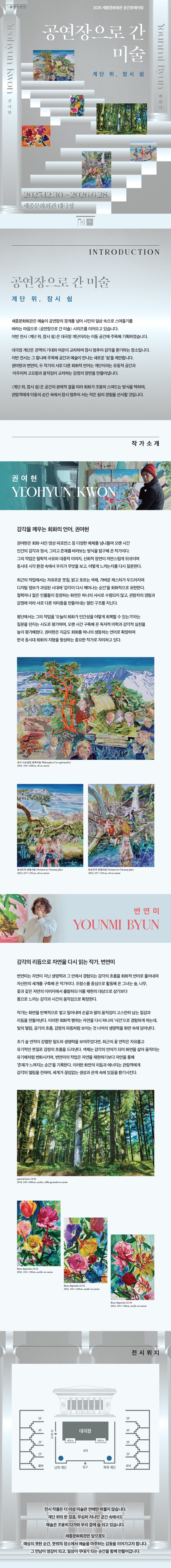 누구에게나 열려 있는 이 열린 공간은 예술이 전시장 문턱을 넘어 우리 삶의 현장으로 들어오는 순간을 공유합니다. 잠시 발걸음을 멈추고 계단 위에 앉아 느끼는 예술적 정취는, 지친 현대인들에게 다시 나아갈 수 있는 짧지만 깊은 치유의 시간을 선사할 것입니다.
