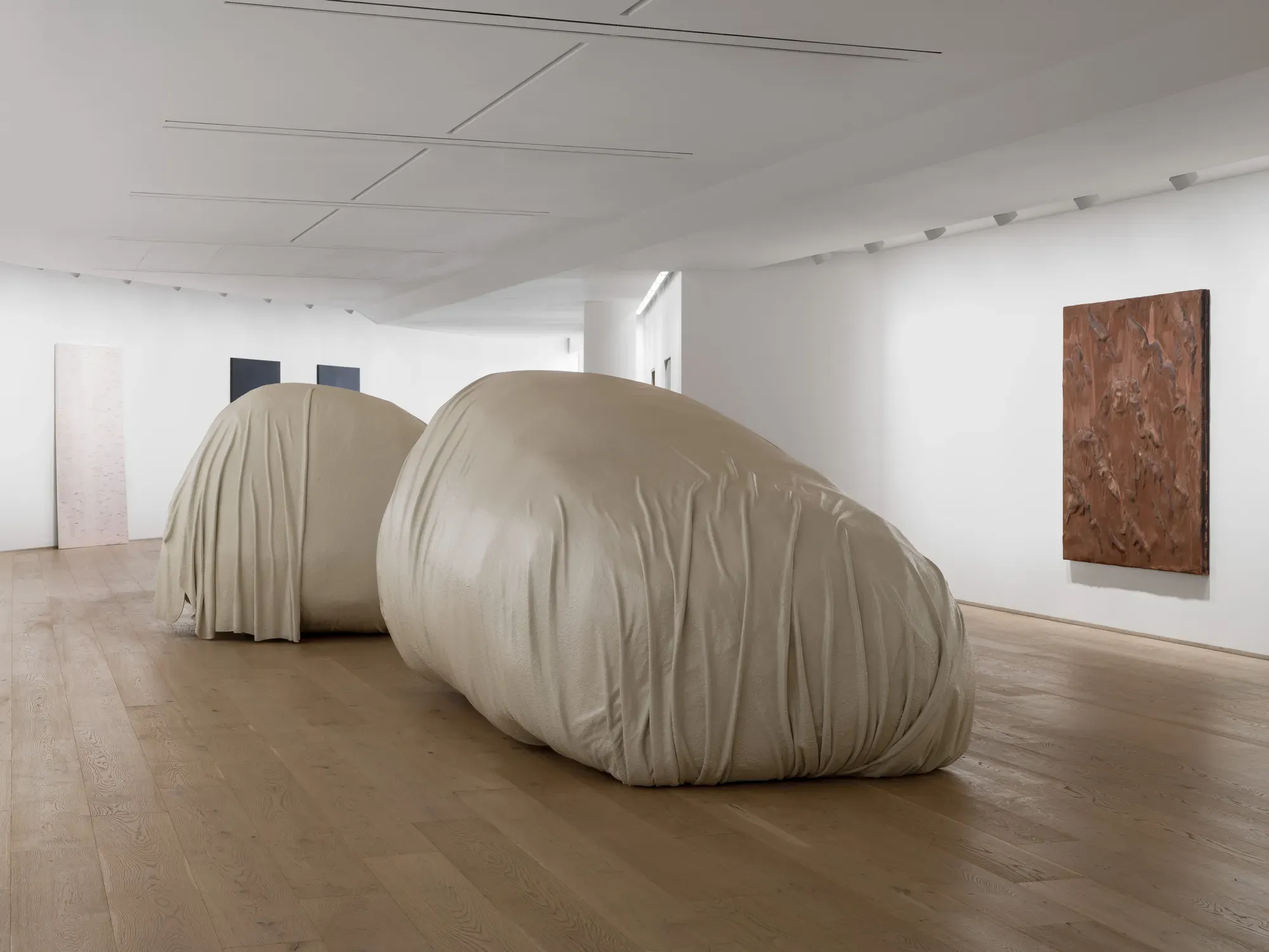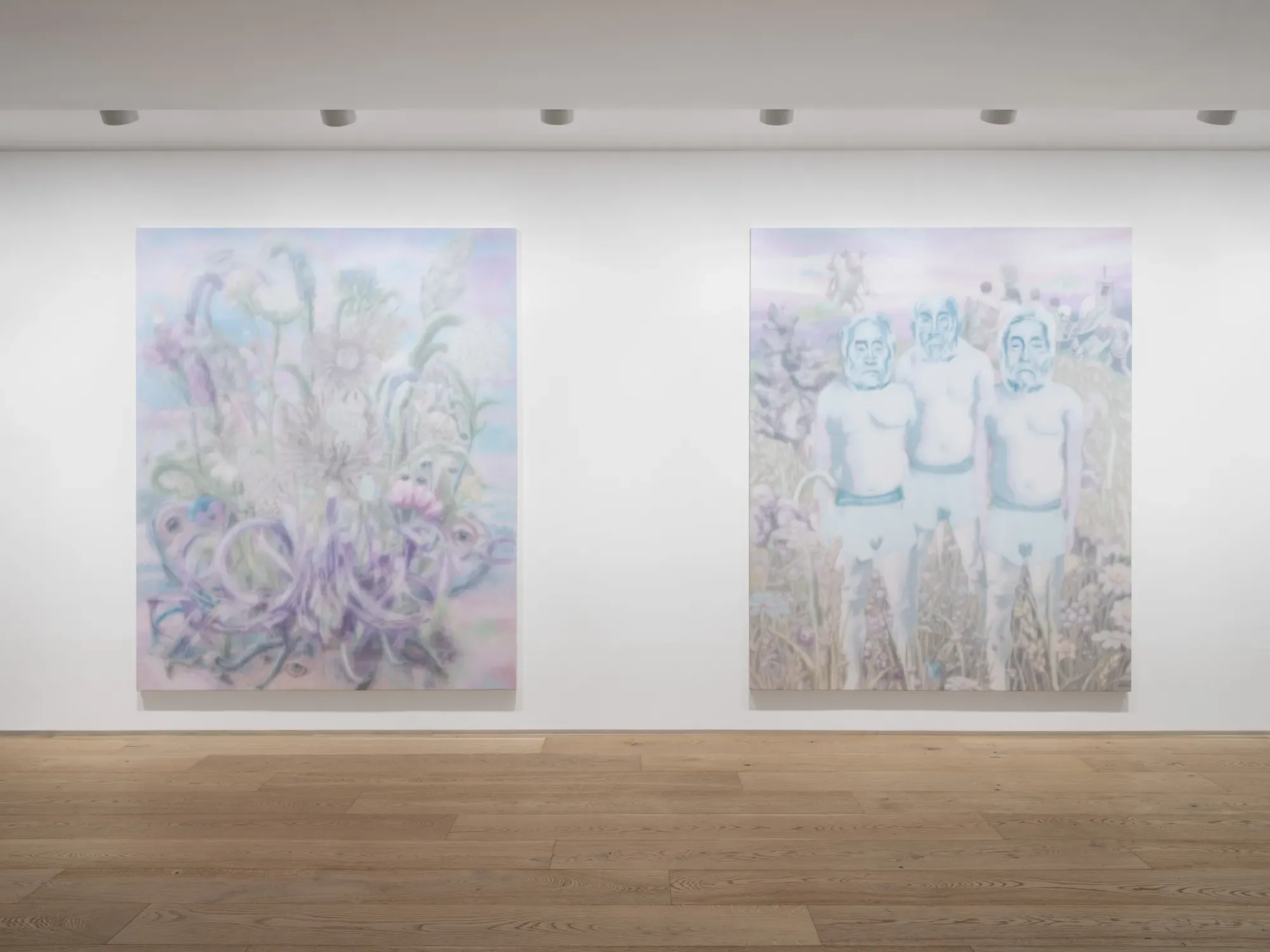 ## Distancing (거리두기) 《Distancing》은 이미지와 물질이 시간을 거쳐 어떻게 초점에 들어오는지를 탐구하는 네 명의 작가 — 이마즈 케이, 김주리, 임노식, 마리아 타니구치 — 의 신작들을 한데 모았습니다. 이 전시는 거리와 지속을 우선시하는 보기의 방식을 제안합니다. 여기서 멀리서 관찰하고 정적 속에 머무는 것은 인식을 가리는 것이 아니라, 오히려 초점을 재조정합니다. 전시는 즉각성에 저항하기보다는 감각이 우리를 따라잡는 지점, 즉 즉각적인 파악에서 벗어났던 것이 거리와 시간을 통해 자리를 잡기 시작하는 지점을 추적합니다. 회화와 조각을 가로질러, 참여 작가들은 반복, 찰흙의 느린 변형, 층층이 쌓인 불투명성, 그리고 이질적인 이미지 세계의 병치라는 독특한 형식적·매개적 전략을 통해 이러한 재조정에 접근합니다. 전시의 입구에서 마주하게 되는 마리아 타니구치의 회화는 이러한 태도를 가장 정제된 형태로 담아냅니다. 반복되는 벽돌 모양의 단위로 구성된 그녀의 캔버스는 특정한 서사보다 시간과 형태의 축적을 전면에 내세웁니다. 일정한 규모와 형식, 그리고 미세하게 변화하는 색면을 가진 이 작품들은 빠른 읽기에 저항하며, 대신 모듈성과 연속성에 기반한 지속적인 보기의 방식을 권유합니다. 타니구치는 2008년부터 이러한 벽돌 회화 작업을 발전시켜 왔습니다. 각각의 캔버스는 고유하지만, 이 작업들은 마치 펼쳐지는 신체처럼 한 표면에서 다음 표면으로 연장되는 듯 보이며 — 아직 완전히 형성되지 않았고 영구적으로 진행 중인 상태입니다. 〈Untitled (2025)〉에서 시간은 반복되는 행위라는 일상적인 척도로 자신을 드러내며, 각 벽돌은 동일한 조건 아래 세심하게 수행된 행위의 증거가 됩니다. 이 작품은 명상이나 자기 성찰에 대한 은유로 작동하기보다는 일련의 규칙에 의존하면서도 결과에 대한 완전한 통제는 거부합니다. 즉, 우연과 미세한 일탈에 열려 있는 안정적인 틀인 것입니다. 반복은 예측을 유예하고, 의미가 즉각적으로 결론지어지는 것을 막으며, 인식이 제 속도에 맞춰 형성되도록 하는 방법이 됩니다. 타니구치에게 회화는 시간, 노동, 그리고 신체적 개입이 층을 이루는 물리적 상태로 존재합니다. 작업이 구축됨에 따라 그 표면은 거의 알아차릴 수 없을 정도로 변화합니다. 미세한 불규칙성, 얕은 융기, 약간의 어긋남은 신체와 시간의 흔적을 대등하게 기록합니다. 이 회화들 앞에서 관람객들은 종종 앞뒤로 발걸음을 옮기게 되며, 여기서 보는 행위는 하나의 현존 형식이 됩니다. 주의력은 서사를 해독하는 것에서 벗어나 서 있음, 호흡함, 그리고 자기 자신의 시선이 갖는 미세한 떨림이라는 순수한 감각을 향해 기울어집니다. 타니구치의 작업이 관람객의 신체와 시선을 조율한다면, 김주리의 작업은 이러한 감수성을 물질성과 물리성의 영역으로 밀어붙입니다. 신체, 물질, 공간 사이의 관계를 직접적으로 소환함으로써, 김주리는 관람객이 자신의 주변 환경과 주어진 환경 내에서 스스로를 위치시키는 방식을 재고하도록 독려합니다. 주로 찰흙으로 빚어진 김주리의 작품들은 생성, 축적, 해체의 원소적 순환을 구현합니다. 〈Wet Matter_202602 (2026)〉는 갤러리의 중앙 공간을 차지하며 전시의 핵심 역할을 수행합니다. 이 작품은 고정됨에 저항하며, 대신 서식처인 전시장의 변화하는 빛, 온도, 습도에 지속적으로 반응합니다. 김주리는 오랫동안 흙을 주요 매체로 사용해 왔으며, 생성과 소멸, 포화와 건조라는 개념이 변증법적 대립이 아닌 하나의 연속체 안에서 작동한다고 제안합니다. 전시가 끝나면 용해될 운명인 이 작품은 주변 환경을 흡수합니다. 〈Wet Matter_202602〉가 현재 속에 흙을 잠시 유예시킨다면, 김주리의 회화 시리즈 〈desert〉는 그 이후에 따르는 과정들을 탐구합니다. 작품에서 수분이 빠져나가면서 틈이 생기고, 표면이 갈라지며, 층들이 파열되고 부서집니다. 〈desert〉는 비옥한 땅이 마르고 갈라질 때 시간이 남긴 비문을 간직합니다. 그것은 귀환과 변형의 장소가 됩니다. 즉, 인간의 흔적이 어떻게 다시 흙으로 접혀 들어가 사용, 붕괴, 퇴적의 순환을 통해 형태를 바꾸는지를 보여줍니다. 김주리는 버려진 벽돌이나 부서진 흙 파편 같은 도시의 잔해들을 모아 다시 으깨고 갈고 층층이 쌓으며, 남아있는 것들의 가장자리를 따라 감각합니다. 이것은 부활이라는 거창한 몸짓이 아니라, 파편과 퇴적물을 형성의 다음 단계로 받아들이는 것입니다. 층을 이룬 표면은 물질을 통과해 간 시간의 기록이자, 붕괴된 것, 축적된 것, 흔적으로 굳어진 것에 주목하며 뒤를 돌아보는 장소로서 서 있습니다. 〈Wet Matter_202602 (2026)〉가 호흡의 친밀한 통과에 대한 메아리로 존재한다면, 〈desert〉는 이 순간을 유예된 상태로 정지시킵니다. 흙과 물, 공기를 붙들고 있는 이 작품은 관람객을 그 몸체로 끌어당기며 호흡을 가다듬을 것을 요구합니다. 그리하여 김주리의 작업은 날카로운 감각을 자극하기보다, 관람객에게 정지의 순간을 발견하고 반응할 수 있는 시간과 근접성을 제공합니다. 임노식의 회화는 전시의 시작 부분에서 마주했던 포착하기 어려