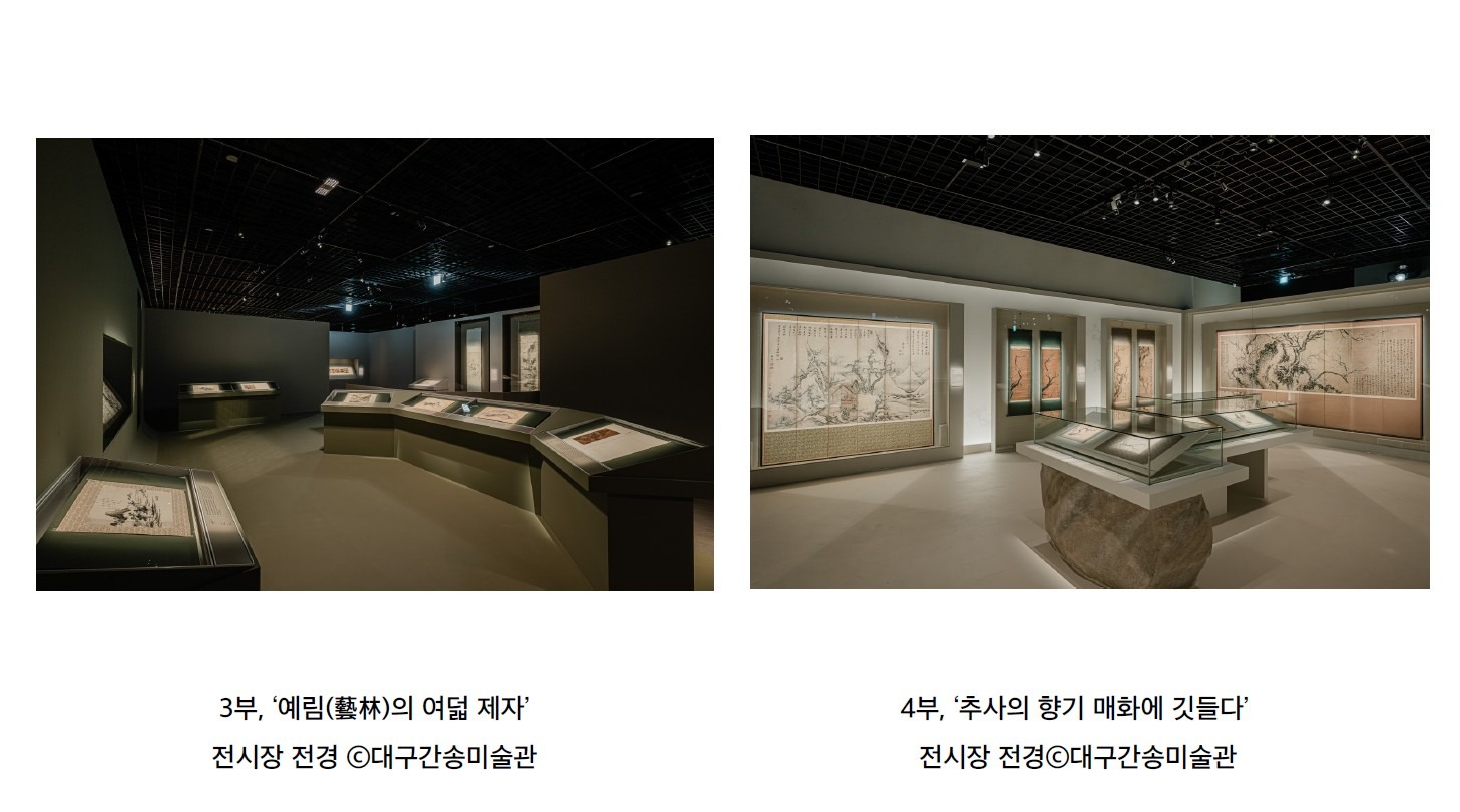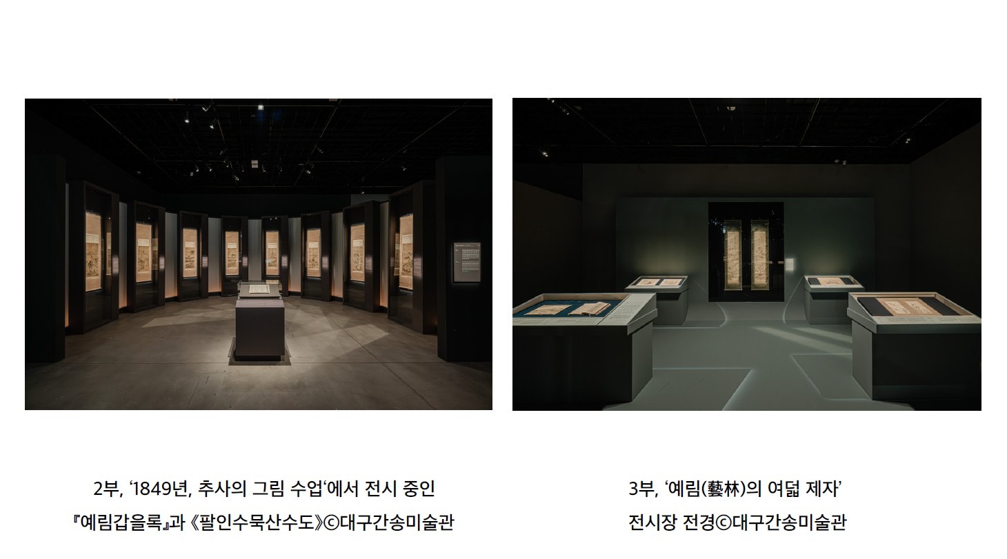 이번 전시는 조선시대 문인화의 정수라 할 수 있는 세한도를 비롯해 불이선란도, 난맹첩 등 추사의 대표 회화 작품을 소개합니다. 이어 제자들의 작품을 비평한 예림갑을록 을 단초로, 추사화파 제자들의 발자취를 따라가 봅니다. 전통이라는 토대 위에서 독자적인 예술 세계를 구축해 나갔던 제자들의 고민과 여정을 이들의 작품들로 소개합니다. 법고창신(法古創新)의 정신으로 새로운 시대를 열었던 추사화파의 그림을 통해, 조선 말기의 회화가 근대로 이어지는 역동적인 흐름을 확인하는 계기가 되길 바랍니다.