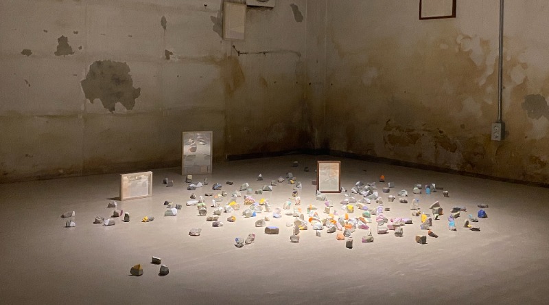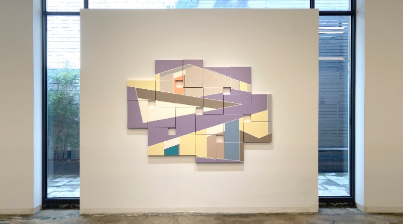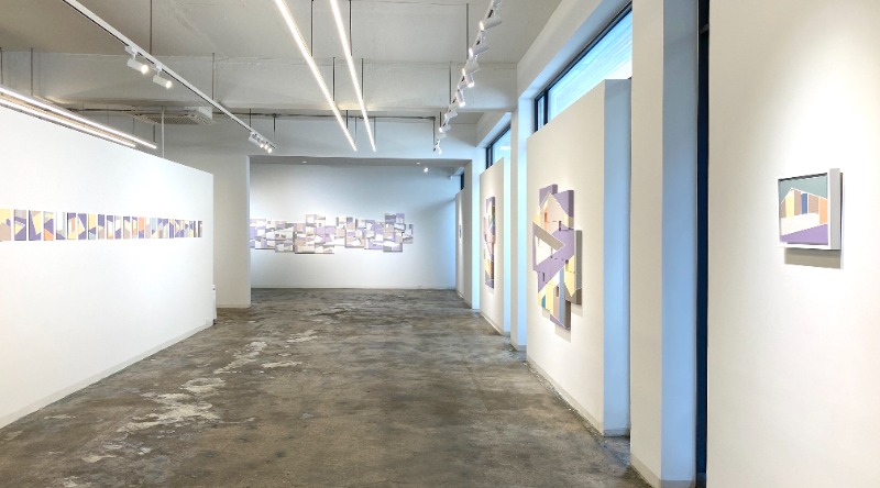 레이블 갤러리는 2021년 5월 21일부터 6월 30일까지 이지연 작가의 개인전 [기억의 걸음 _ Trace of memories]을 개최한다. 이번 전시는 작가가 2020년에 선보인 [기억의 걸음] 시리즈를 되돌아보는 것에서 시작한다. 계속해서 흘러가는 시간 속에서 그녀의 과거 의미 있는 장소의 기억을 정리하고 되새기는 자리이다. 그녀는 테이프로 면을 나누고 색을 배치하여 조형적 구성에 집중하고, 새롭게 조각들을 배열하는 작업을 한다. 이렇게 만들어진 조각들은 다양한 형태로 재조합되어 그녀의 기억 속 존재하는 공간이자 미지의 새로운 공간으로 재구성된다. 이번 전시 [기억의 걸음 _ Trace of memories]는 그간 작가가 보여줬던 공간들에서 보다 다양한 색감과 형태, 새로운 방식으로 이야기를 선보인다. 새로이 선보이는 작품에는 세로 길이 22.7cm의 수 십 개의 얇은 판넬형 캔버스 작업과 두께가 약 2.7cm인 3호 캔버스 70여 점으로 이루어진 대형 작업이 있다. 작은 조각 하나하나가 모여 가변적으로 재조합하는 기존 방식에 작은 변화를 더한 것이다. 그 중 판넬형 작업은 독립된 이미지들을 나열하여 떠오르는 기억을 포착했던 순간을 정리한다. 대표적인 이 두 작업은 각각 작가가 이미지를 그리고 조합해온 태도를 돌아볼 수 있게 해준다. 작가는 오랜 시간 이어온 ‘기억 속 공간_Recollecting Space’에 대한 작업을 되새김질한다. “처음 공간에 대한 기억은 (잊고 싶지 않은) 그 장소에 대한 기억을 붙잡기 위함이었다. 그러면서도 동시에 자연스러운 잊혀짐(망각)을 부정하거나 억지로 붙잡지는 않으려고 했다. 하지만 시간이 지나면서 자연스럽게 남아있는 미련을 인정하며 ‘기억의 걸음’을 돌아보게 되었다.” 이렇듯 그녀의 이번 작업은 지금껏 선보인 공간들에 대한 미련이라는 감정을 떨쳐내기 보다는 감싸 안으며 내면에 혼재하는 모순된 감정들과 그 흔적을 뚫고 나아가는 과정의 한 지점일 것이다. 갤러리 지하공간에 설치될 [애매한 수집, 2021]은 그녀가 2020년 6월부터 지난 3월 말까지 여수 장도(長島)에서 지내는 동안 수집한 돌들로 구성된다. 작가는 장도에서 일상의 기록이자 시간을 담는 방식으로 다양한 것들을 불규칙적으로 수집했다. 그 중 돌에는 수집한 날짜와 수량으로 표기한 고유번호를 남기고 ’색’을 칠해 시간을 담았다. 여기서 우리는 그녀만의 라벨링(labeling) 방식을 통해 기억의 걸음을 따라가 볼 수 있을 것이다. 천장고가 낮은 지하실로 내려가서 작가가 담은 시간의 흔적을 마주하는 동안 머무는 이들에게도 각자의 순간을 돌아볼 수 있는 시∙공간을 만나기를 바란다. - 이지연 Lee Jiyeon 작가노트 오랜만에 무릎에 캔버스를 올리고 테이프로 기억을 그린다. 테이프가 만들어 낸 선을 따라 시간을 밟는다. 조각조각 기억의 공간을 떠올리는 것은 ‘순간’을 만나는 일이었다. 선과 면, 색으로 나와 나의 시간을 살펴본다. 돌아보니 이제 (잠시) 놓아줄 수 있을 것 같다. 다시 찾고 모으는 것이 아닌 새로운 시간을 만나려 한다. 한참을 기억 속에서 뜀박질하며 제자리걸음을 하고 있었을지도 모른다. 스스로 만든 미로 속에서 헤맸는지도 모르지만, 내게는 상상의 걸음으로 확장되는 탐험이자 놀이였다. 그리고 이제는 그 흔적들과 함께 새롭게 만나는 시선과 순간에 호기심의 방향을 틀어본다. _ 2021 봄. 그동안의 발자국이 만들어낸 색들에 대해 생각하며