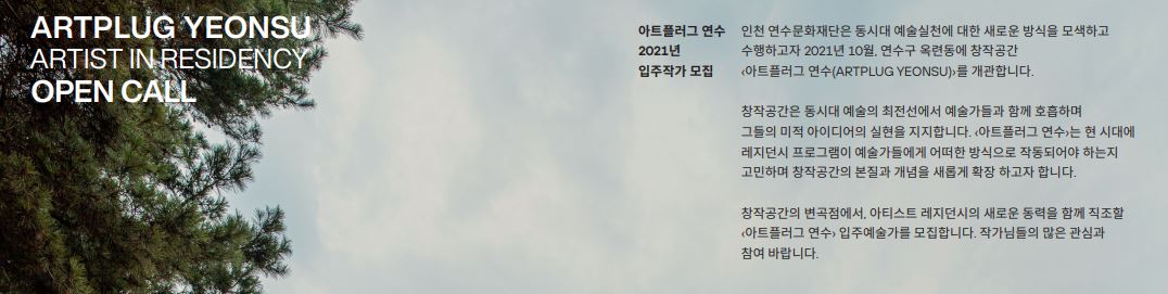 - 아트플러그 연수 2021년 입주기간이 국내외 타 레지던시 기관과 중복되지 않아야 함