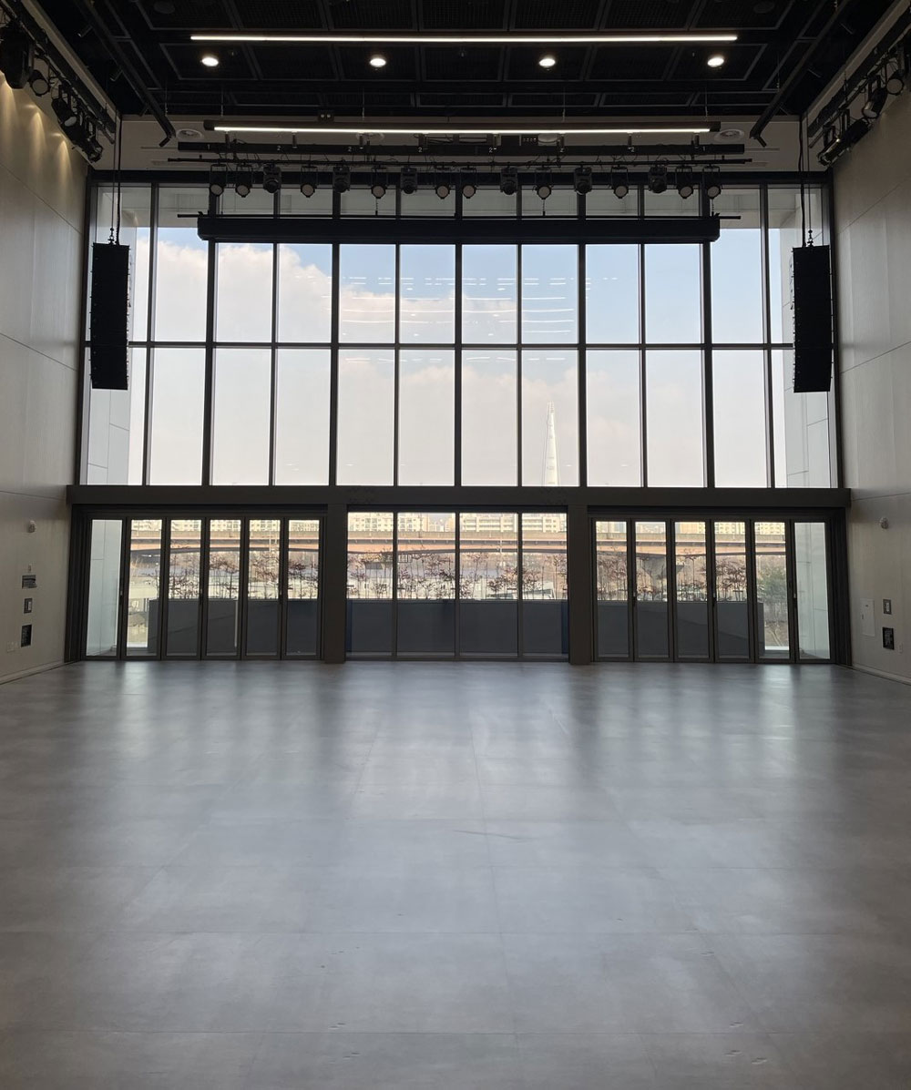 미디어 작업 상영 시 프로젝터와 전문 음향 시스템 등의 장비를 사용할 수 있습니다.