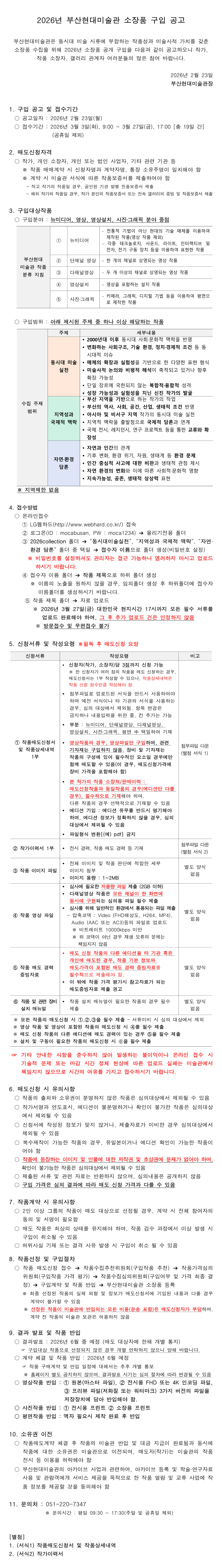 2026년 부산현대미술관 소장품 구입 공고