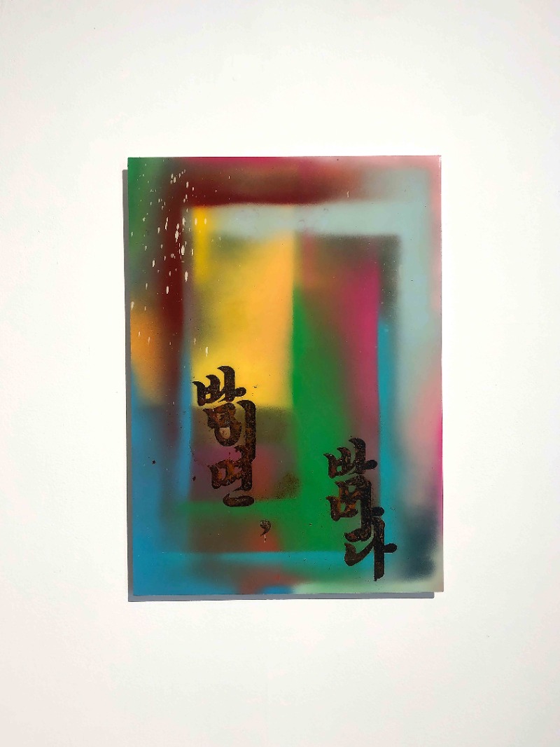 2021 (이미지 제공 = 원앤제이 갤러리) 철판 위에 페인트 스프레이, 부식, 레진 70 x 50 cm