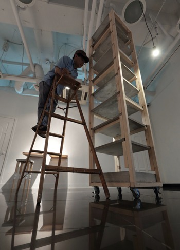 2017 콘크리트, 수정, 오리발, 와이어, 에폭시, 종이, 목탄 117 x 29 x 35 cm