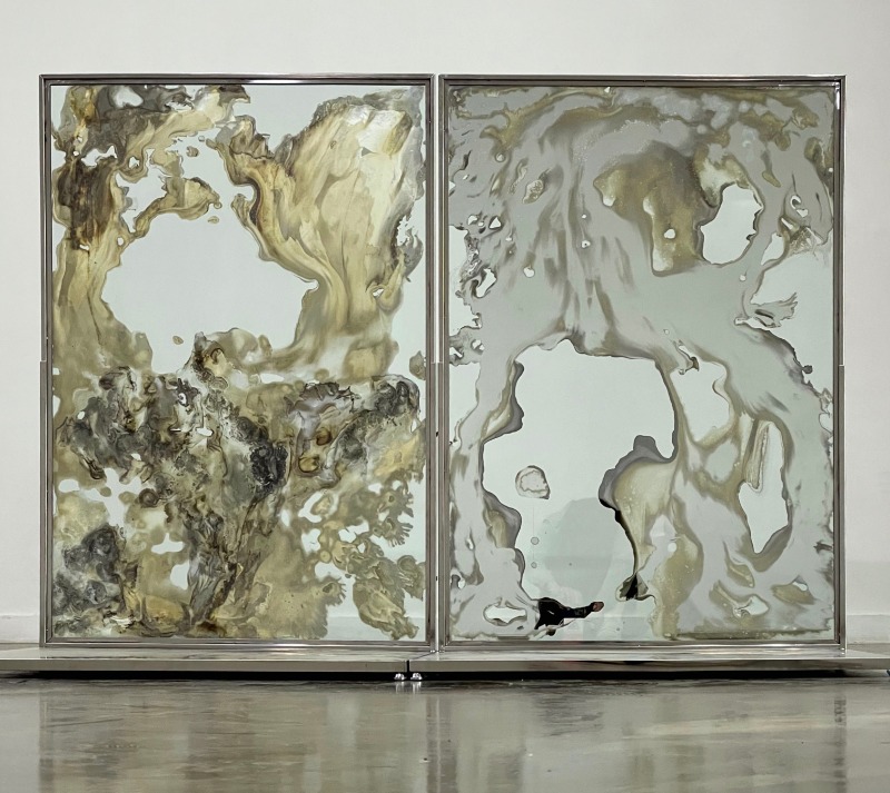 2021 (이미지 제공 = 원앤제이갤러리) 투명 유리에 은거울용액반응, 스테인레스스틸프레임 80 x 120 cm.(each)