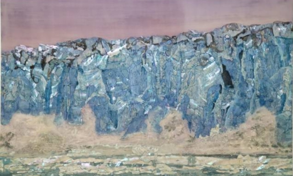 2016~2017 Ash, pigment, gauze, thread on canvas 100 x 200 cm