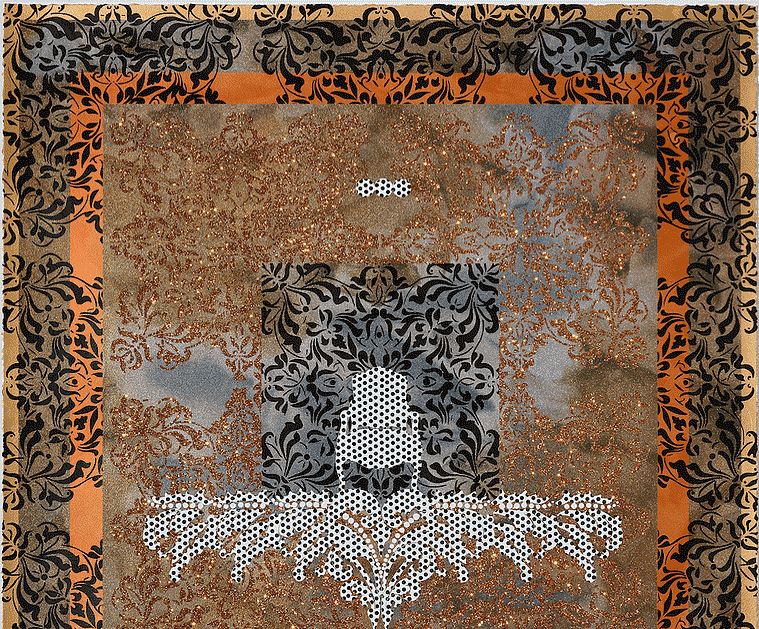 2012 실크 스크린, 스파클 파우더,종이에 핸드페인팅 100 x 100 cm
