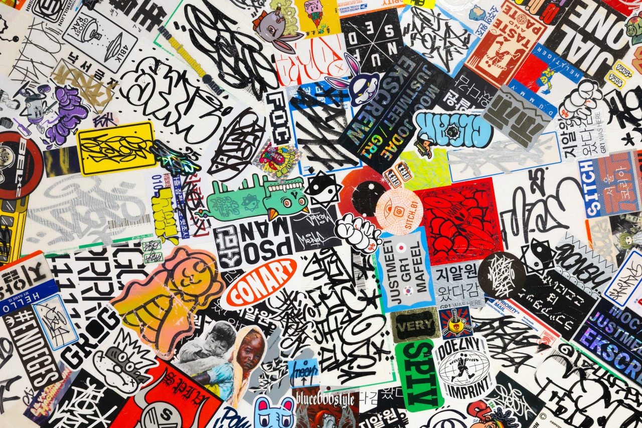 2025 Stickers, sticker collage on canvas d. 120㎝