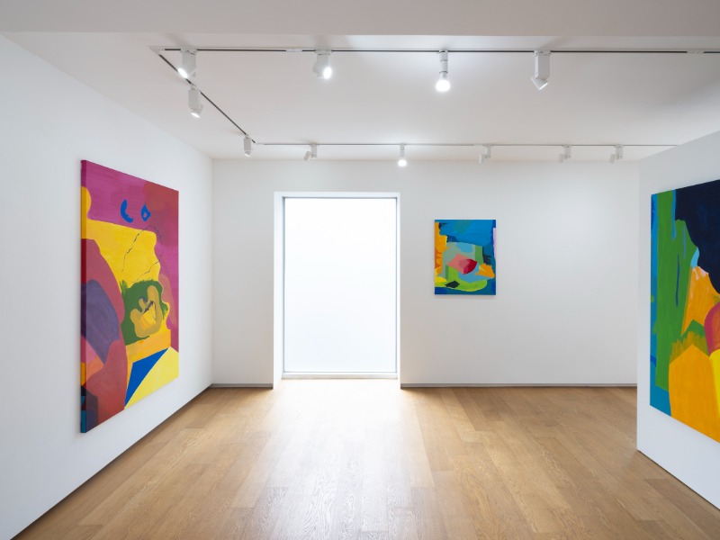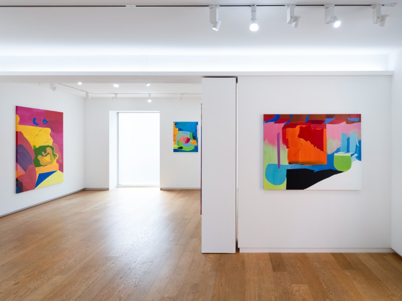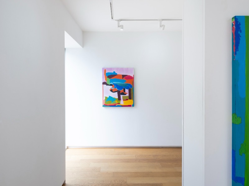 카드가 섞이기 시작한다. 카드는 손 위로 단면을 슬며시 노출하며 다른 카드의 사이사이로 들어간다. 마지막으로 부드럽게 휜 카드는 엄지손가락 아래로 떨어지며 무작위로 뒤엉킨 후 정돈되며 펼쳐진다. 상대방이 가진 패가 무엇인지 맞히기 위해 치열한 눈치 게임이 시작된다. 많은 이들이 배헤윰의 작품을 보고 어떻게 해석할 것인가 고민에 빠진다. 다른 의미가 숨겨져 있는 건 아닐까? 아마도 추상적인 형상 사이로 언뜻 보이는 모양과 강렬한 색채, 생각보다 구체적인 작품 제목 때문일 것이다. ‹COMBO›전은 2021년 작가의 세 번째 개인전이다. 그는 ‹Fyka Foretold…›(2021, SeMA 창고), ‹플롯탈주 PLOTLESS›(2021, 금호미술관)전에 이은 이번 전시에서 커다란 구조로 시작된 추상적 사유의 미시적인 이야기를 다룬다. 작가가 그동안 미스터리함으로 무장하여 작품을 바라보는 대상과 작가 사이의 암묵적 소통가능성을 모색했다면,‹COMBO›전에서는 추상의 연쇄 작용으로 발생하는 구조에 관해 탐구해온 그의 여정과 배헤윰만의 회화적 생태계를 구성하는 과정에 관한 시각을 더욱더 명징하게 느낄 수 있다. 배헤윰은 회화 내부에서 맺어지는 형태와 색의 관계성에 관해 고찰하고 사유의 진행 과정을 구현하기 위해 다양한 시도를 해왔다. 그의 작품에서 형상을 해석하려는 것은 무의미하다. 요컨대 추상 회화라는 형식을 빌려 그의 사유 체계를 엿보고 추론하는 것이 더 가깝다고 할 수 있다. 작가는 과거 캔버스에 ‘운동 이미지’를 해체, 재결합하여 회화 내부의 운동성을 실험했고 이를 강렬한 색의 관계, 언어의 요소 등 추상 행위와 연결했다. 이후 그는 ‘모름’을 상정하고 생각의 흐름에서 발생하는 구조를 전통적인 관념과 다른 방식으로 접근하고자 했다. 작가는 회화 안에서 자신의 서사를 만드는 사람이다. 그는 플롯 개념을 도입해서 본인 작업의 과거, 현재, 미래를 연결하여 구조화하기도 했다. 교차하는 시간성을 암시하듯 작가는 때로 자신의 작업을 복기하여 도상을 되풀이하기도 하고 “제목에 하이퍼링크를 걸어두었다.”는 흥미로운 이야기를 전하기도 했다. 이번 전시에서 곳곳에 등장하는 검은 점들도 마찬가지다. 전시 제목 ‹COMBO›는 끊김 없이 지속하는 타격감을 떠올리는 데 상용화된 단어다. 배헤윰은 캔버스에서 여러 면과 색이 접합하며 드러나는 모양새와 그의 생각이 일치하는 순간을 이 단어와 유사한 감각이라 비유했다. 즉, 이 전시에서 “COMBO”는 추상회화의 연쇄 작용을 상징한다. ‘없음과 모름’에서 도상이 출현하고 형태와 색의 힘겨루기 중 일부 결합하거나 소멸하여 캔버스 내부에서 균형을 이루었을 때, 남겨진 이미지에서 생성된 의미를 획득하는 쾌감을 한 단어로 축약하여 보여준다. 작가가 작품의 제목을 정하는 일 또한 추상 작업의 연장선에 있다고 볼 수 있다. 모든 과정 후에 표제가 결정되기 때문에 결국 그가 주지하는 내용은 타이틀에서 마주하게 된다. 특히 본 전시의 주제를 드러내는 두 작품 중 ‹IN EQUILIBRIUM›(2021)은 회화 내부에서 자연적으로 발생한 요소가 마치 자신의 자리를 알고 있었던 것처럼 천천히 각자의 위치를 잡아 균형을 이룬 것이고, 앞서 말한 전시 제목과 동명의 작품 ‹COMBO›(2021)는 형태가 깨진 후 즉각적으로 의미를 획득한 상황을 가장 적확하게 보여준다. 짙푸른 스트로크가 인상적인 작품 ‹Rolling Dice›(2021) 상단에 있는 분홍색 조각은 이 작품 전체가 구성되기 위한 “방아쇠”가 되었다. 조각이 깨진 후 형태가 쏟아져 내리면서 붓질에 속도가 붙고 새로운 움직임을 형성했다. ‹Shuffling›(2021)은 면이 손에서 섞일 때 운동감을 떠올린 작업이다. 작가는 대면의 대상이 되는 상대를 향해 면으로 이루어진 다수의 개체를 섞는다. 관객은 화가의 손 위에서 무작위로 섞이는 색면의 패를 엿보게 될 것이다. 글 김수현(휘슬, 큐레이터)