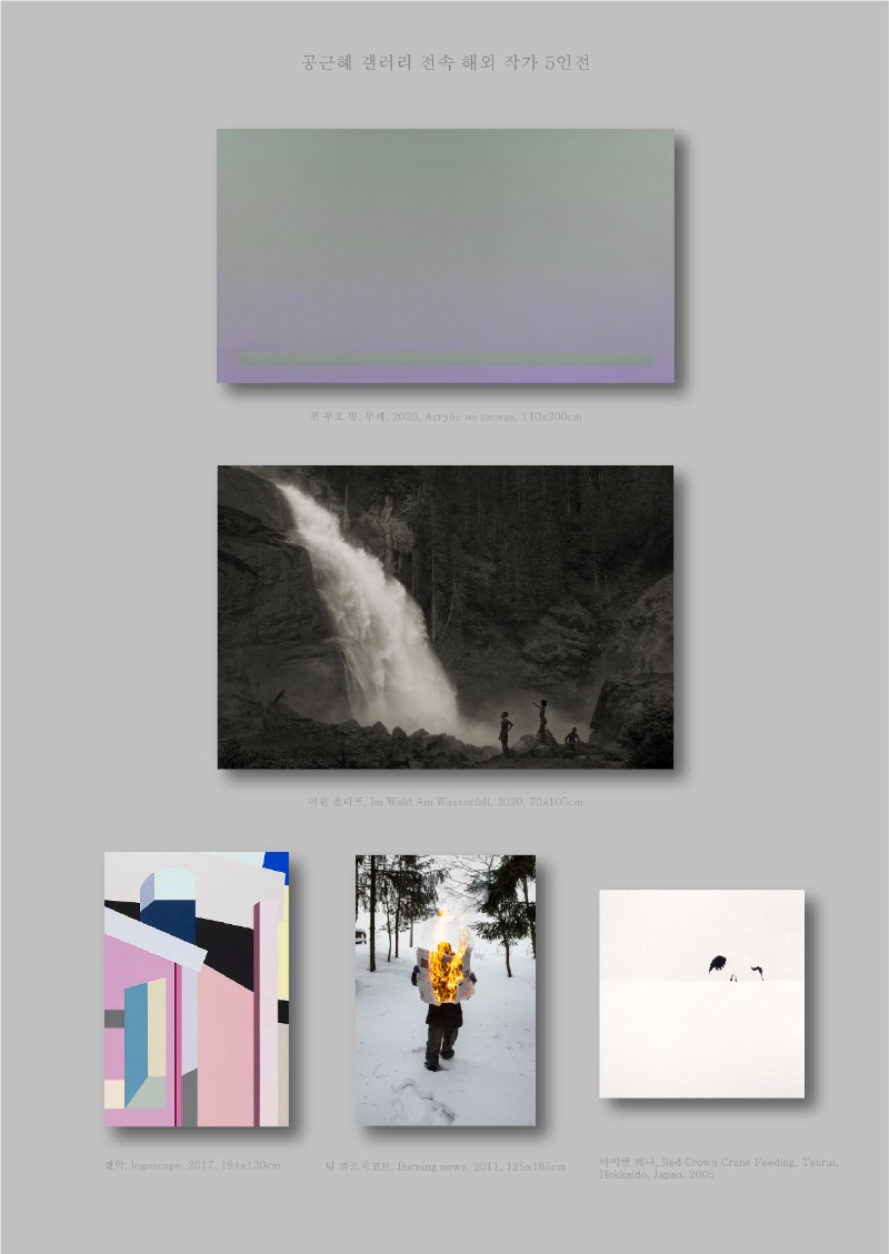 전시내용 2021년 10월 15일부터 10월 31일까지, 키아프 아트페어 기간 동안 서울을 방문하는 해외 컬렉터들과 지방 컬렉터들을 위해 공근혜갤러리는 삼청동 전시공간에 특별 기획전을 마련했다. 갤러리 전속의 해외 작가 어윈 올라프, 팀 파르치코브, 첸 루오빙, 마이클 케나, 젠 박 5인이 꾸미는 특별 전이다. 네덜란드를 대표하는 국민 작가 어윈 올라프(1959-)는 2021년 올 한해, 세계 곳곳에서 열리는 다양한 전시회에 초대받고 있다. 지난 5월부터 4개월 동안, 독일 뮌헨 쿤스트 현대 미술관에서 대규모의 개인전이 열렸고https://www.kunsthalle-muc.de/en/exhibition/details/erwin-olaf/, 9월에 시작된 한국 대구 사진 비엔날레, 일본 교토 국제 사진 페스티벌에서는 대표 작가로 초청 받아 행사의 표지를 장식했다. 또한 오는 12월부터 내년 3월까지, 수원 시립미술관에서는 한국-네덜란드 수교 60주년을 기념하여 어윈 올라프의 대대적인 회고전이 열린다. 이번 공근혜갤러리 전시장에는 코로나 사태 이후 자연의 소중함을 경각시키는 메시지를 담은 그의 2021년 최신작, “ 숲속에서” 연작 중 3점을 선보인다. 2019년 공근혜갤러리에서 첫 개인 전을 가진 러시아 작가 팀 파르치 코브(1983-)는 사진, 영상, 영화로 정치, 사회적 이슈를 다룬 작품들을 선보이며 유럽을 주 무대로 활발히 활동하고 있다. 2022년에는 베니스 비엔날레에 러시아 대표 작가로 참여할 예정이다. 이번 전시에는 그의 대표 작, “불타는 뉴스 “ 작품 2점이 전시된다. 추상 회화가 본격적으로 붐을 일기 시작한 중국에서 현재 러브 콜을 가장 많이 받고 있는 재독 중국 작가 첸 루오 빙(1970-)의 최신 회화 작들도 전시된다. 2021키아프에서 공근혜갤러리 메인 작가로 전시 되는 3미터에 달하는 대작들은 독일의 저명한 RBK 병원 재단이 지원하는 2020년 예술프로젝트에 선발되어 전시되었다. 한자의 한 일 획을 화폭에 그은 듯한 형상은 땅과 하늘이 만나는 수평선에서 발산되는 빛의 에너지를 추상화 한 것이다. 이 밖에도 재미 교포 작가 젠박(1985-)의 도시 풍경을 레고 블록의 형태로 추상화 시킨 독특한 회화 작품들과 영국 사진 작가 마이클 케나(1953-)의 대표 작들도 함께 전시 된다. 특히 젠박과 첸 루오빙의 작품은 인천 국제 공항과 키아프가 공동으로 개최한 인천공항 특별전에도 전시되어 한국을 찾는 여행객들에게 문화를 향유할 수 있는 값진 시간을 선사할 예정이다. 참고 : 키아프 2021 공근혜갤러리 참여 부스 A76 / 참여작가: 어윈올라프, 첸루오빙, 김형기, 젠박,마이클케나 작가 약력 어윈 올라프 Erwin OLAF ( 1959- 네덜란드) 현재 네덜란드를 대표하는 작가인 어윈 올라프는 Utrecht School에서 저널리즘을 전공하고 기자로 활동하다가 사진 작가로 전업을 했다. 1988년 Chessmen 시리즈로 젊은 유럽 사진작가 상(Young European Photographer of the Year)을 수상하며 세계적인 예술가 반열에 올랐다. 이후 2006년 Photographer of the Year in the International Colour Awards, 2007년 Kunstbeeld magazine’s Artist of the Year of the Netherlands, 2011년 Dutch Johannes Vermeer Prize와 Lucie Award from the United States 등 수많은 상들을 수상하였다. 2019년에는 네덜란드 정부가 수여하는 황금사자 기사작위 훈장(a Knight in the Order of the Dutch Lion)을 수여 받는 최고의 영광을 얻었다. 네덜란드 최고의 국립미술관 라익스 뮤즘은 어윈 올라프의 작품 500여 점을 영구 소장했다. 팀 파르치 코브 Tim Parchikov (1983- 러시아) 러시아 작가로 2013년 Best Young Artist 로 선정되며 칸딘스키 상을 수상하였다. 러시아 국립 대학에서 영화를 전공하고, 독립 아티스트 및 영화 감독으로 활발히 활동하고 있다. 현재 모스크바와 파리를 오가며 활동하면서 영국, 스페인 등 유럽 주요 국가와 이스탄불, 중국으로부터 초청 전시가 이어져 세계적인 주목을 받고 있다. 2011년에 열린 54회 베니스 비엔날레에서는 칸디다 회퍼, 난 골딘 등의 세계적인 대가 들과 나란히 Fondacione Cini 에서 열린 Real Venice 전에 참여한 바 있다. 2014년, 파리 퐁피두 미술관 전, 2018, 2021 대구사진 비엔날레에 연속해서 초청을 받았다. 2022년에는 베니스 비엔날레 러시아관 대표작가로 참석할 예정이다. 첸 루오 빙 Chen Ruo Bing (1970- 중국) 중국에서 전통 수묵화를 전공한 후 20대 초반에 독일로 유학을 떠나 뒈셀도르프 쿤스트아카데미에 입학하여 현대 추상 미술의 거장 고타르트 그라우브너 (Gottahard Graubner) 밑에서 수학했다. 2016년에는 독일 보훔 쿤스트미술관에서 3개월 동안 초대 개인전이 열려 중견 작가로서 무르익은 그의 작품 세계를 유럽 전역에서 인정 받는 중요한 계기가 되었다. 상하이 현대 미술관, 베이징 미술관 등에 작품 영구 소장되며 현재 중국 본토에서 가장 빈번하게 초청을 받고 있는 추상화 작가로 손꼽힌다. 젠 박 Jen PAK (1985- 미국) 코넬대학교에서 순수미술을 전공한 이후 파슨스 디자인스쿨에서 패션디자인, 소더비 인스티튜트 미술사 석사, 홍익대학교 회화과 석사 학위를 받았다. 서울, 싱가포르, 뉴욕의 대도시에 거주한 경험을 바탕으로 도시와 작가의 상호작용을 회화, 조각 매체를 통해 표현하며 독자적인 작업을 이어나가고 있다. 2016년 첫 개인전을 시작으로 한국과 미국, 영국, 벨기