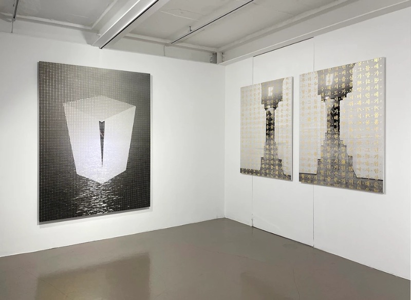 표갤러리는 2021년 9월 29일~10월 30일 이매리의 《Poetry Delivery 2021》전을 개최한다. 이매리 작가는 ‘나는 누구인가, 어디에서 와서 어디로 가는가’라는 개인의 존재론적인 질문을 시공을 뛰어넘은 전 인류적인 사유로 확장하여 작품 속에 담아낸다. 작가의 세계관에 반복적으로 등장하는 테마인 ‘시(詩)’는 작가가 남겨진 지난 세대의 기억을 꺼내 보이고 이를 ‘배달’ 함으로써 과거와 현재, 더 나아가 미래를 연결하고 있는 매체이다. “그 동안, 우리는 수 많은 사람들의 삶과 죽음들을 지켜 보았다. 또한, 우리는 수 많은 문자와 언어들의 생성과 소멸을 보아왔으며, 수 많은 민족과 국가의 흥망성쇠를 보아왔다. 그럼에도 불구하고, 지금 우리는 여기 이곳에 현재 존재하고 있다. 그리고 어제의 우리는.....오늘의 우리로 진화하여가고 있다, 이러한 내용들을 시각화하여 인류의 대서사시 같은 수 많은 이야기들을 한 조각, 한 조각, 시 한 구절처럼 늘어놓는다. 그리고, 미래에 존재하게 될 그들에게 시(詩) 배달 하는 자가 되어, 과거와 현재의 시(詩)들을 배달하고자 한다.” -작가노트 중- 지난 역사의 지층을 드러내는 메타포로 사용되는 가장 대표적인 주제는 작가의 고향 강진에 있는 월남사지 발굴터이다. 이번 전시작에서도 확인할 수 있는 바와 같이, 작가의 여러 작품에서 월남사지 터가 배경으로 쓰였으며, 작가는 이곳에서 다양한 설치 및 퍼포먼스 예술을 선보이기도 했다. 지난 시대의 비밀스러운 시간들을 품고 있는 월남사지 터의 이미지는 태초부터 지금까지 끊임없이 흘러왔으며 앞으로 계속 흘러가게 될 억겁의 시간을 상기하게 한다. 같은 맥락에서 작가는 구약 성경의 《창세기(Genesis)》와 영미 모더니즘 시인 에즈라 파운즈의 장편 시집 《캔토스(The Cantos)》를 작품 표면에 필사한다. 금박 및 금분을 이용하여 캔버스의 전면부에 일정한 간격의 점, 또는 한글이나 알파벳으로 된 텍스트를 올려놓는 표현법은 이매리 작가 특유의 것이다. 변하지 않는 속성을 가진 금을 이용하여 새겨진 텍스트는 시공을 초월한 과거-현재-미래의 영속성에 대해 생각하게 한다. 특히 이번 전시에서 작가의 이전 대표작들과 함께 새롭게 공개되는 2020-2021 신작 ‘homeostasis(항상성) 시리즈’는 《창세기(Genesis)》의 라틴어 및 영어 번역본 텍스트와 《캔토스(The Cantos)》의 첫 구절 “And”를 사용하며 생물학적인 의미의 항상성을 뛰어넘어, 과거와 현재와 미래 사회를 관통하는 본질적인 동일성으로서의 항상성을 암시하고 있다. 어느새 가을로 기울어가는 2021년, 표갤러리가 마련한 이번 전시를 통해 ‘우리는 어디에서 와서 어디로 가는가?’라는 근원적인 질문에 대한 답을 시각적으로 흥미롭게 풀어낸 이매리 작가의 “시(詩) 배달”을 받아 보시길 바란다. (출처=표갤러리)