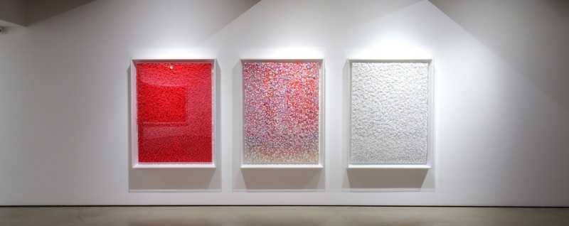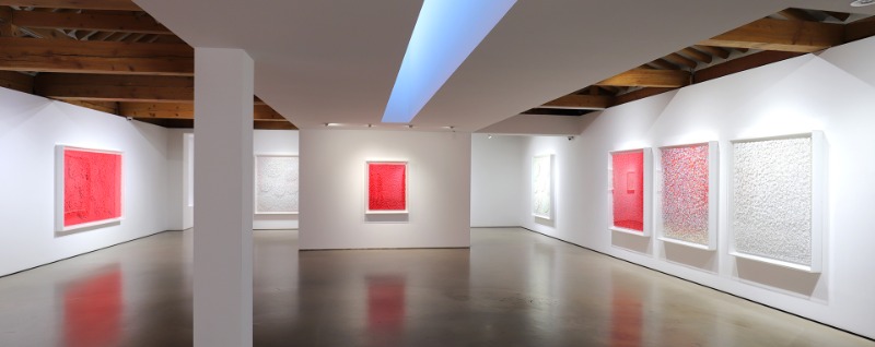 조성희는 어린 시절 아름다운 정원이 있는 전통 한옥에서 자랐다. 꽃을 매우 좋아한 그녀의 아버지는 정원 가꾸기가 취미였다. 각양각색의 꽃들이 지천으로 피어있는 아름다운 정원에서 뛰어놀며 그녀는 마음속으로 ‘꽃의 왕국’을 꿈꿨을지도 모를 일이다. 조성희는 어렸을 적 마음에 품었던 ‘꿈의 정원’을 주제로 작업을 펼친다. 유년시절에 본 정원이 낙원이라고 한다면, 70대 중반의 노년에 이르러 한 사람의 작가로서 펼치는 현재의 작업은 이른바 ‘복락원(復樂園)’인 셈이다. 조성희는 잃어버린 낙원을 꿈꾼다. 그렇기 때문에 그녀가 심혈을 기울이고 있는 현재의 작업은 다름 아닌 바로 그 잃어버린 낙원을 찾아 떠나는 긴 여행이라고 할 수 있다. 미지의 아름다움을 창조하기 위한 조성희의 지칠 줄 모르는 반복적 행위는 작품 속에 그대로 유입돼 특유의 아우라(aura)를 만들어낸다. 붉은색의 단색화가 됐든, 마치 꽃밭 속의 꽃들처럼 다채로운 색상을 지닌 다색화가 됐든, 조성희가 만든 작품들은 아름다운 정원에 대한 유비(analogy)로써 이를 바라보는 관객들에게 심리적 카타르시스를 가져다줌으로써 치유의 효과를 낳는다. 네덜란드 출신의 탁월한 역사가인 후이징아(Johan Huizinga)가 문화의 본질로 본 ‘놀이 정신’이 조성희의 작업 맨 밑바닥에 깔려 있음을 본다. 그렇지 않다면 그처럼 고된 작업을 장구한 세월에 걸쳐 지속하지 못 했을 것이다. 놀이는 무엇보다 재미가 있어야 한다. 그렇다면 늘 새로운 작업을 향한 창조의 더듬이를 통해 작업의 반경을 넓혀나가는 조성희의 예술에 대한 열정은 ‘잃어버린 낙원’을 되찾기 위한 끊임없는 놀이의 천착이 아니겠는가? 70대 노령에도 불구하고 불처럼 뜨거운 정열로 창작에 몰두하고 있는 조성희는 단색화에 대한 자신의 독자적인 영역의 구축을 위해 오늘도 정진하고 있는 것이다. – 「‘잃어버린 낙원(Lost Paradise)’을 향한 회귀 의지」 中 발췌 | 윤진섭 • 미술평론가 (출처=학고재)