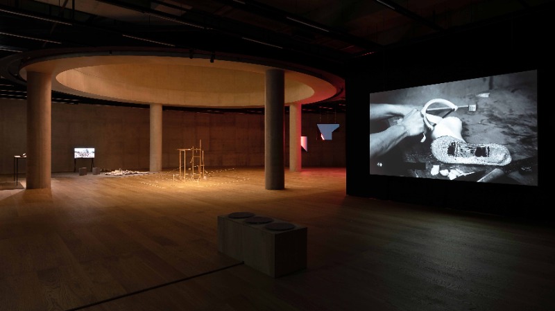 이번 전시에서 김우진은 신작 〈황금 신을 신을 수 있는 사람〉(2021)을 선보이며 사라지는 언어들과 신데렐라 설화의 교차점을 보여준다. 사라지는 것들에 대한 탐구 및 작업을 해왔던 작가는 신작에서 다양한 형태의 암묵적인 통제를 통해 구성원 스스로가 그들의 언어를 버리고, 특정 언어를 몸에 익히며 사용하는 것이 설화 속 구두 이야기와 다르지 않음에 중점을 둔다.