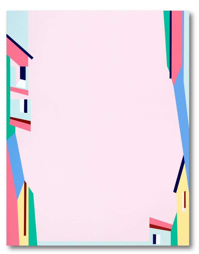레고를 모티브로 도시 속에서 건물과 사람 간의 상호작용에 대한 이야기를 빼곡히 담아냈던 지난 작업과는 달리, 이번 신작에서는 화폭의 대부분을 비워냈다. 코로나 이전에 당연하게 여기던 안정적인 삶에 대한 갈망을 형상화한 것으로 파스텔 톤의 텅 빈 공간은 평온했던 지난 일상에 대한 향수를 떠올리게 한다.