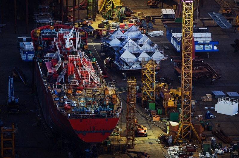 지난 7년 동안 한국의 대표적 중견 사진작가들이 부산의 다양한 면모를 담아 전시해온 고은사진미술관 연례기획의 명칭이 바뀌었다. 새 이름은 보다 의미의 폭이 넓고 유연한 〈부산 프로젝트〉이다. 〈부산 프로젝트〉는 부산의 여러 면모를 다시 새로운 시선으로 보려는 시도이며, 그 첫 결과물이 조춘만의 〈인더스트리 부산〉이다. 조춘만은 그 동안 우리나라의 중요한 공업 시설, 조선소를 비롯한 거대한 산업 구조물들을 촬영해 독보적인 위치를 차지하고 있는 작가이다. 그가 바라본 부산의 산업시설들, 〈부산 프로젝트 2019〉는 어떤 모습을 하고 있는 것일까? 우리가 사는 도시 전체는 일종의 거대한 기계이자 공장이다. 늘 지니고 다니는 휴대전화도 기계이고, 평소에는 그렇게 생각하지 않는 아파트를 비롯한 집 조차도 르 코르뷔지에 말처럼 일종의 거주를 위한 기계이다. 그 기계에 공급되는 동력이 멈추거나 무엇인가 고장 나면 우리의 삶 전체가 흔들리기도 한다. 어쩌면 우리가 사는 세계 자체가 정보와 자본이 잘 흘러 다니는 하나의 유기체로서 조직된 거대한 단일화 된 기계이자 공장을 지향하고 있는지도 모른다. 부산의 제조업은 고무, 신발, 철강, 조선, 화학, 자동차, 의류 등 다양하다. 역사 또한 깊지만 제조업 생산지를 사진으로 이미지화 한 경우는 거의 없다. 있더라도 개별적인 회사들의 필요에 따른 것이거나 공공 기관에서 요구되는 것이었다. 조춘만은 그 부산에 사진기를 들이댄다. 사진기 역시 이미지 포착 기계이니, 기계가 기계를 찍는 셈이고 조춘만 역시 사진 기계의 일종이 아닌지 모를 일이다. 이처럼 부산의 산업시설을 집중적으로 찍은 것은 아마도 조춘만이 처음일 것이다. 조춘만의 카메라에 담긴 부산의 산업시설은 일부는 공장 전체의 풍경이고 다른 하나는 제품이나 제품을 생산하는 도구 또는 물류시설들이다. 거대한 크레인, 롤러에 감긴 고무 벨트, 해독하기 어려운 언어처럼 얽혀 있는 크고 작은 파이프, 큐브처럼 쌓인 컨테이너, 무엇이 담겨 있는지 모르는 화려한 색감의 드럼통, 이빨을 차갑게 드러낸 금속 치차들, 단정하게 줄지어선 선박들과 조정장치, 시뻘겋게 달아오른 철봉과 거대한 단조 프레스 등등이 그가 찍은 대상들이다. 부산이라는 거대 기계는 무엇인가를 생산하는 공장과 그 결과물인 상품과 그걸 운송하는 물류 시스템들로 되어있다. 그리고 그 시스템이 하나의 생태계를 이루는데, 조춘만은 지금까지 대개 공장의 외부를 제법 먼 거리에서 찍었다. 그 이유는 물론 거대 중공업 시설들을 대상으로 했고, 이것들은 거리가 적절히 떨어져야만 전체 모습이 드러나기 때문이다. 그리고 밤에 찍은 사진들이 많은 이유도 다른 것들이 모두 어둠에 잠긴 시간에야 비로소 눈부신 공장의 불빛이 대상의 존재를 잘 드러내어주었기 때문일 것이다. 이번 전시의 가장 큰 특징은 조춘만이 공장의 내부로 들어갔다는 것이다. 그의 시선의 위치와 대상과 거리가 바뀐 것이다. 용접공 출신으로 공장의 내부에 익숙한 조춘만은 다양한 현장의 모습에 압도당하기도 하고, 공장의 디테일에 사로잡히기도 하면서 다른 도시와는 구분되는 부산의 산업적 특징을 포착한다. 그가 찍은 공장 내부는 작은 규모의 공장부터 대규모 공장까지 포함된다. 그래서 전시는 크게 산업 외부와 산업 내부, 디테일, 그리고 항구와 선박이라는 4개의 카테고리로 분류되어 부산 산업의 안과 밖을 모두 조명한다. 조춘만의 카메라가 공장 내부로 들어가면서 두 가지가 우선 달라진다. 하나는 대상과의 거리가 가까워지면서 공장의 디테일들이 등장한다는 것이다. 볼트, 쇳밥 등의 작은 것들부터 거대한 철물의 단조 장면과 고무 제품 제조 시설까지 모두 다 들어온다. 또 하나는 제품을 생산하는 소규모 공장들 속에 노동자의 모습이 눈에 띈다는 것이다. 이는 물론 작은 규모의 공장도 대상에 넣다 보니 일어난 일이다. 조춘만이 촬영한 공장을 채운 사물들의 용도, 목적, 작동방식은 모르지만, 우선 일종의 인위적 장엄함이 느껴진다. 이 느낌은 머리로 온다기보다는 몸으로 온다. 이는 사진이라는 이미지의 힘이자 대상 자체가 가지는 힘이다. 조춘만이 찍은 공장들은 서로 다르지만 물질들을 특정한 목적에 맞춰 새롭게 변형, 제조한다는 점은 같다. 4차 산업혁명이 오고 5G 시대가 왔다고 해도 공업이라고 불리는 2차 산업은 여전히 중요하다. 아무리 정보의 생산, 소비가 산업의 주류가 되더라도 인간은 신체적 조건 때문에 물건들을 필요로 하고 그것을 생산하는 일은 사라지지 않을 것이다. 조춘만의 사진은 일종의 유형학적 특성을 가지고 있지만, 결코 거기에 국한 되지않는다. 그의 호기심은 현재 왕성히 활동중인 공장들부터 운영이 멈춘 오래된 공장들에 이른다. 그는 압도적인 산업의 경관을 통해 인간과 함께 살아 숨쉬는 기계와 공장을 보여주었다. 그리고 인간이 운영하는 공장뿐 아니라, 어떤 무엇이라도 언젠가는 무너지고, 사라지고 그 위에 풀과 나무가 자란다는 것을 독일의 폐공장인 푈클링엔 제철소 사진으로 드러냈다. 이는 일종의 공장의 미래에 대한 예언이며 현실이자, 그의 사