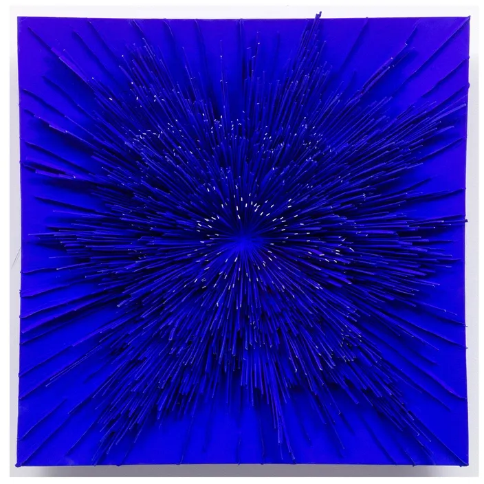 아트비앤 기획 <THE ONE PIECE OF ART> 프로젝트는 한점의 작품과 작품제작 영상을 전시, 한점의 작품에 집중하며 작가의 작품세계를 보다 심도 있게 조명하는 전시형 아트 프로젝트입니다. 이번 원피스아트 세번째 프로젝트인 김세중 개인전: BLEU CRÉER 展을 소개합니다. 수년간 파리를 중심으로 활동해온 작가 김세중은 오랜 기간동안 빛과 공간에 대한 개념을 자신만의 조형적 언어를 통해 다양한 시각적 구성요소들을 평면에 구현해 왔다. 작가가 표현하고자 했던 빛이라고 하는 추상적인 개념을 시각화하기 위해선 무한한 공간이 아닌 한정된 평면 공간에서 어떻게 그것을 구현하는가 하는 물음에서 작업은 시작되었을 것이다. 회화적 붓칠에서부터 입체적 형식을 제작하기 위한 절대적인 시간을 통해 수많은 공정 과정이 생겨났고, 그 과정 속에서 서로가 맞물려 불규칙하거나 예측할 수 없는 구조성을 발견한다. 수많은 구성 요소들의 상호작용을 통해 각각의 특성과 다른 새로운 현상과 질서를 만들어낸다. 서로 결합된 상태와 조합에 의해 크게 달라지는 조형성의 공존은 각 부분이 서로 밀접하게 관련을 가지고 있어 떼어 낼 수 없는 상호유기적 관계를 가진 생명체처럼 보인다. 작품의 블루(파란색)는 고요함이나 평온함을 떠올리게 하며 또는 평화롭고 고요한 안정감을 느끼게 한다. 살아있는 듯 화려하게 보이는 빛의 에너지와 대립되는 어둠(그림자)이 함께 또다른 관계성을 가지며 서로 조화롭게 무한한 공간으로 예술적 상상력을 더해 뻗어 나간다. 이번 전시는 한점의 작품으로 <푸른 빛> (2021, 160x160cm, 캔버스 천, 알루미늄 망, 피그먼트)이소개되며, 작업실에서 흔히 볼 수 있는 물감, 글루건, 원료통, 분진 마스크 그리고 와인병 등 버려질 법한 오브제를 푸른 피그먼트를 칠하고 새로운 빛의 에너지를 불어넣은 10여점의 설치작업도 함께 선보인다. (출처 = 아트비앤)