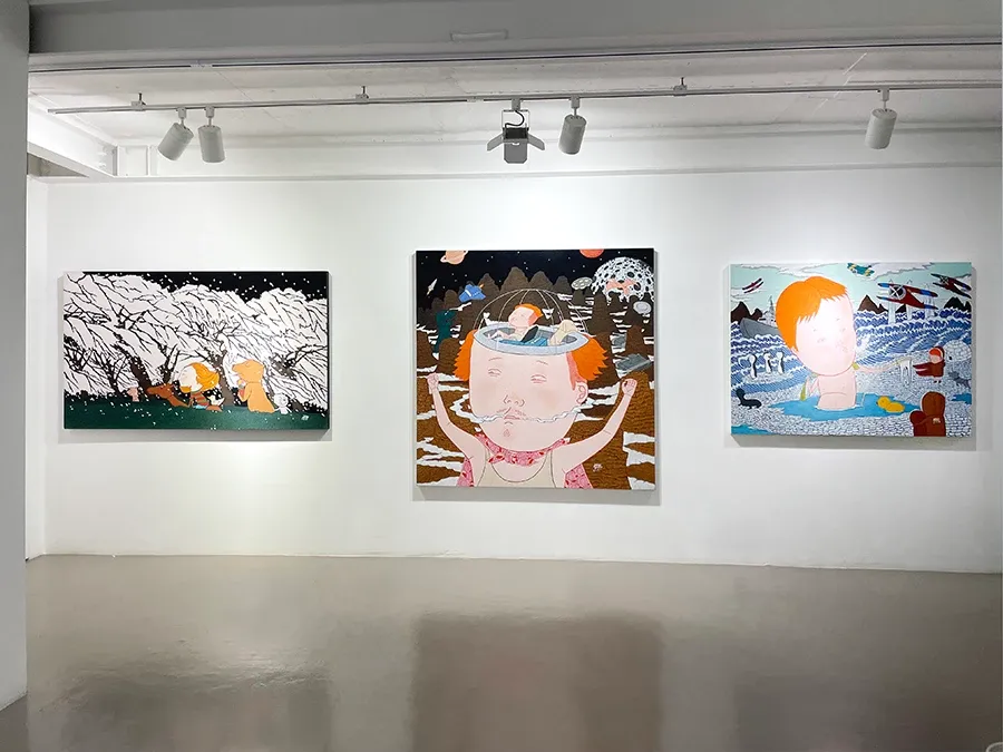 표갤러리는 2022년 6월 24일 (금) – 2022년7월 16일 (수), 강지만의 《" I am looking for an orange"》를 개최한다. 강지만은 스트레스로 인해 머리만 커져버린 ‘얼큰이’를 통해 무거워진 몸과 마음을 짊어지고 살아가는 이들의 삶을 표현한다. 큰 머리에 비율이 맞지 않는 작은 몸을 가진 얼큰이는 뚱한 표정에 흘겨 뜬 눈을 한, 작가만의 독특한 캐릭터로 무거운 삶의 무게를 진 채 빠르게 살아가야 하는 이들의 모순적 운명을 그려낸다. 일러스트레이션 혹은 만화와 같은 강지만의 그림은 실세계의 예민한 관찰을 작가의 심성 속에서 재구성하고, 새로운 캐릭터의 형상을 통해 재현한 것이다. 어른 동화와 같은 작품을 통해 강지만은 평범한 삶에서 우러나는 깊은 단상들과 쓸쓸함, 그리고 외로움과 같은 인간의 심리를 작가 특유의 유쾌함으로 풀어낸다. 외형이 유쾌하고 기발하지만 뚱한 얼굴을 한 캐릭터의 표정에서 묘한 페이소스가 전달된다. 듬성듬성 난 수염이 있는 성인 남성, 혹은 개구쟁이 소년, 혹은 긴 머리를 흩날리는 소녀 등으로 조금씩 달리 표현되는 캐릭터에서 우리 모두의 삶과 감정이 투영되고, 한편으로 다소 무겁고 사색적이지만 특유의 재기발랄한 풍자는 관객들에게 남다른 여운을 남길 것이다. (출처 = 표갤러리)