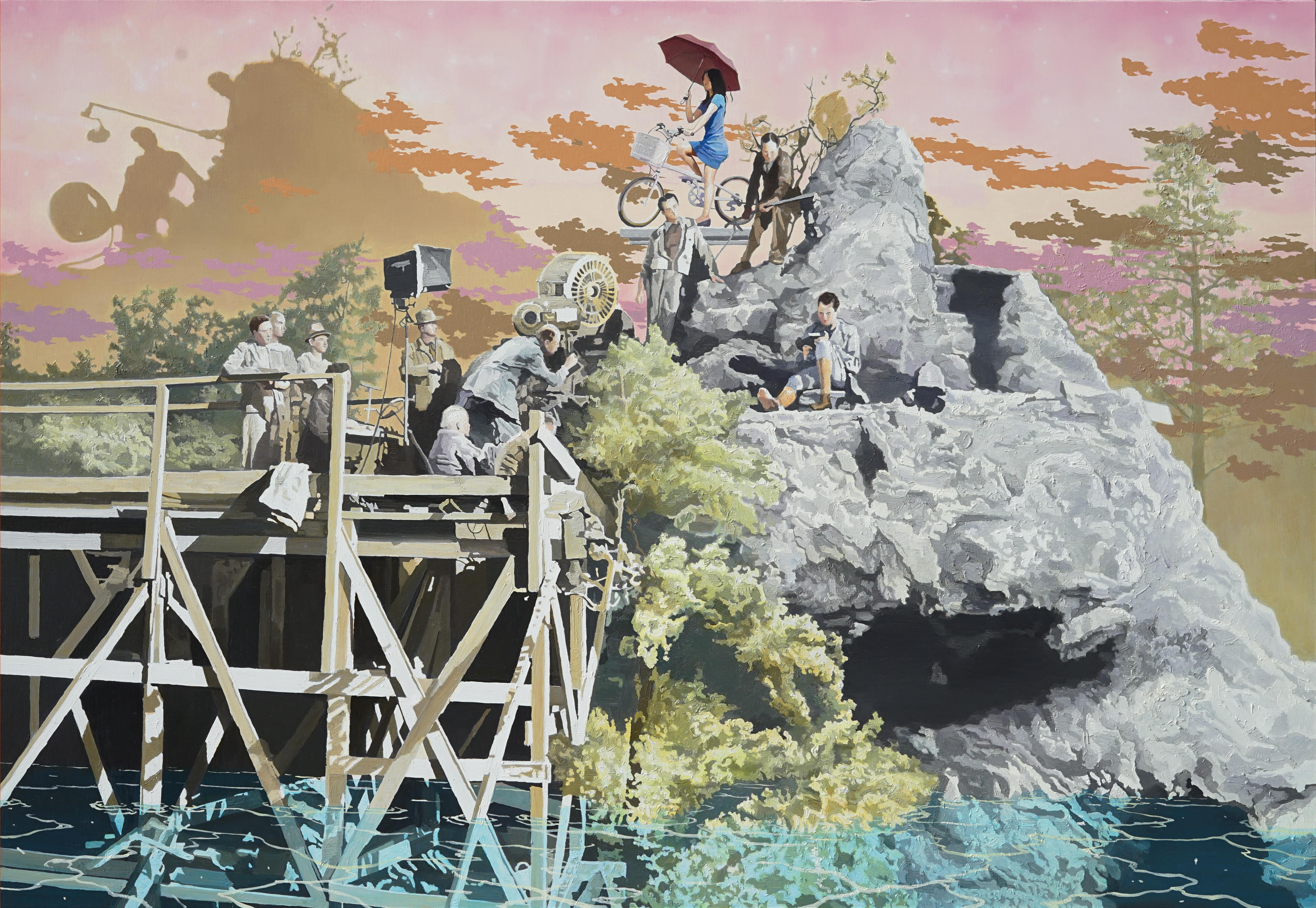 갤러리조은은 윤상윤의 개인전 《Gram Gram》을 7월 26일부터 8월 20일까지 개최한다. ‘중력에서 벗어난 존재’를 주제로 현실과 환영이 혼재된 세계를 작가만의 독창적 조형 언어로 풀어낸다. 영화 촬영 현장과 같은 작가의 작품에서 등장인물은 중력을 잊은 듯 하늘을 날아다니고 타잔처럼 이리저리 흔들리며 세상을 횡단한다. 현실과 닮아 있지만, 현실 그 어디에서도 찾아볼 수 없는 환영의 풍경이다. 오른손과 왼손 양손 작가로 잘 알려진 윤상윤은 마치 두 명의 화가가 그린 것처럼 각각 다른 두 세계를 발전시켜왔다. 개인과 집단 그리고 초자아라는 3단 구조를 가진 오른손 회화가 의도적이고, 계획적이면 다듬어지지 않은 불규칙한 선으로 이루어진 왼손 회화는 무의식의 영역을 표현한다. 표현방식에서도 오른손 회화가 르네상스 시대 글레이징 기법으로 흑백으로 음영을 잡고 색을 엷게 수십 번 칠하며 건축적 구조로 작품을 완성한다면, 자동기술적 드로잉에 가까운 왼손 회화는 임파스토 기법의 즉흥적인 브러쉬 스트로크로 화면을 구성한다. 학습되고 길들여진 오른손이 문명과 문화를 상징한다면, 날것의 자유분방한 왼손은 야생과 본능을 상징한다. 이제껏 서로 대비되고 충돌했던 두 세계가 이번 전시를 통해 작품 안에서 서로 공존하며 혼재된다. 이를 두고 김노암 미술비평가는 “마치 마술사의 트릭처럼 두 세계의 환영을 번갈아 가며 우리 앞에 펼쳐 보이는 것 같다”고 말한다. 작가에게 왼손 오른손이 중요한 게 아니다. 현실을 닮은 듯하지만, 현실 어디에도 찾을 수 없는 장소의 풍경, 시대, 인간군상을 통해, “당신의 진짜 세계는 어디에 있는지 골라보라는 듯” 우리네 존재의 의미에 대해 질문을 던진다. (제공 = 갤러리 조은)