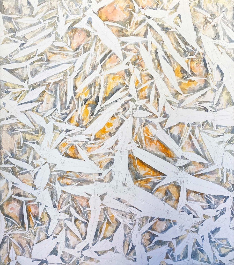 작품에 활용한 소재와 기법을 보면 그 종류가 매우 다양하다. 종이, 섬유, 템페라, 에나멜, 금속, 모양을 변형한 캔버스 조각 등을 활용한 덕분에 전통적인 캔버스 유화를 넘어서는 추상 미술의 가능성을 제시할 수 있다. 당시 헝가리 추상 미술 작가는 다채로우면서도 실험적인 사조를 고수했기 때문에 저마다 다른 특성의 해결책을 전면적으로 활용하려는 태도가 작품에 살아 있으며, 이런 특징은 헝가리를 벗어나 글로벌한 장소에서 전시회를 열 때 더욱 그 가치가 빛난다. ‘접히고-펼쳐진 (Folded–unfolded)’이라는 타이틀은 ‘미지’와 ‘미지의 발견’을 암시한다. 새로움을 향한 이 여정 길에 오르기 위해서는 열린 마음으로 작품에 다가가야 하며, 그렇게 다가가야만 다층적으로 형성된 작품의 의미를 하나하나 살펴볼 수 있을 것이다.