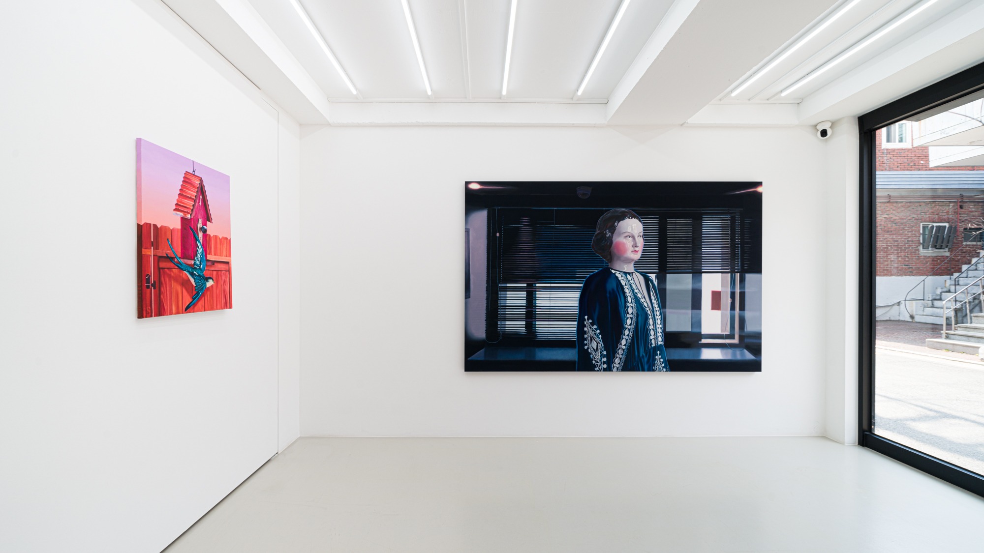 *오프닝 리셉션: 2023.3.3.(금) 5-8pm - 인간은 삶에 대한 끈질긴 욕구를 가지면서도 그 너머의 영역을 갈망하고 꿈꾼다. 우리가 제어할 수 없는 현재 밖의 것들은 경외와 미지의 지대가 되며, 이곳에서 상상과 욕동의 시간이 작동한다. 문화와 역사를 가로질러 남아있는 죽음과 후생에 관한 여러 흔적들이 이를 증명할 것이다. 화려한 장식의 부장품, 무덤을 휘감는 패턴, 산 자의 몸에 지니는 부적, 동물과 곤충을 박제하고 전시하는 일. 인류가 강박적으로 그려내고 보존해온 기묘한 사물들은 삶과 죽음의 메커니즘이 필시 한 페이지 위에 있음을 상기시킨다. 최지원은 이러한 인류의 보편적인 호기심과 질문에 동요하며, 이를 자신의 세계에서 다소 독특한 풍경으로 묘사하고자 한다. 전시 《채집된 방 (Collecting Chamber)》은 작가가 만들어낸 크고 작은 방에 수집된 것들의 의미를 좇는다. 그는 종종 자신의 방안에 가만히 놓인 장식품, 도자 인형, 오래된 새집 모양의 시계, 창틀에 말라 떨어져 있는 곤충을 바라본다고 했다. 이들은 주로 생명이 있었던 것, 혹은 생명체를 빼닮은 모조품이다. 살아있는 것보다 더 진짜 같은 대상들은 그에게 있어 덧없는 삶의 가냘픔과 아름다움을 이야기하는 상징물이다. 작가는 이 실체의 형태와 존재 의미에 집중하며, 스스로 구획한 초현실적인 공간에서 신비로운 오브제를 빚어낸다. 이내 그의 세계는 반짝이는 모습의 파편들로 조금씩 채워지기 시작한다. 작은 새 조각, 실크 질감의 옷을 입은 인형, 알록달록한 액자 안에 갇힌 나방과 벌은 이미 죽어 멈춰있는 정물이지만 역설적으로 비밀의 방 안에서 강한 생명력을 얻고 에너지를 발산한다. 깜깜한 밤의 어둠과 블라인드 틈으로 빛이 갈래갈래 새어 들어오는 오후의 볕 사이에서, 그들은 자신의 모습을 드러내며 이야기를 건넨다. 한편 이들은 다양한 장소에서 등장한다. 작가의 침실이, 사방이 문으로 가로막힌 곳이, 혹은 인간이 아닌 동물이 머무를 집과 안뜰이 그림의 배경이 되었다. 특히 그의 근작들에서 두드러지는 건축적 요소들은 화면을 보다 복잡하게 변형시킨다. <멈춰버린 순간>속 거울은 사슴의 앞모습과 뒷모습을 겹쳐보게 하고, <블루문>의 유리창은 등장한 인형을 외부로부터 내부로 끌어들인다. 또 <정지된 시간의 방을 향하여>나 <닫힌 문>에서 반복적으로 등장하는 문은 주어진 공간을 사방으로 분할하면서도 연결할 수 있다. 중요한 사실은 이 장벽들이 언제든 현실의 차원을 다른 영역으로 이동시키는 포털이 될 수 있다는 것이다. 요컨대 문과 창, 벽, 액자 틀의 구조물은 얕은 생명을 오래도록 기억하고, 곧 사라져버릴 작은 존재의 이면을 탐닉하고 마주하고자 하는 작가의 의지를 드러내는 장치로 볼 수 있다. 최지원이 채집한 찰나는 선명한 이미지가 되어 보는 이를 매혹한다. 그의 방은 비어있는 여백(room)의 상태이기보다 언어화되지 않은 미완의 이야기들이 이리저리 뒤섞여 적재되어 있는 진공의 보관소(chamber)에 가깝다. 관객들은 작가가 열어 둔 방을 하나 둘 들여다보며, 생과 사의 경계가 무너지는 장면의 마디마디를 떠올리고 그 속에서 긴장감과 해방감을 동시에 경험하게 될 것이다. 그리고 그때, 소리도 향기도 없던 누군가의 마음 안팎은 곧 새로운 생의 기운으로 채워질 것이다. 글 : 박지형(디스위켄드룸 큐레이터) (출처 = 디스위켄드룸)