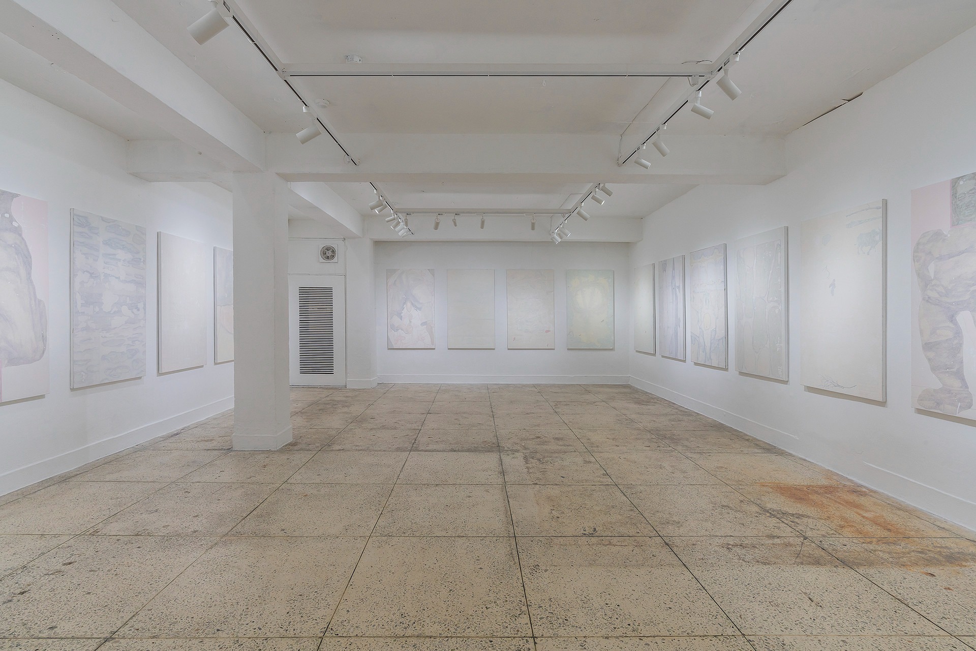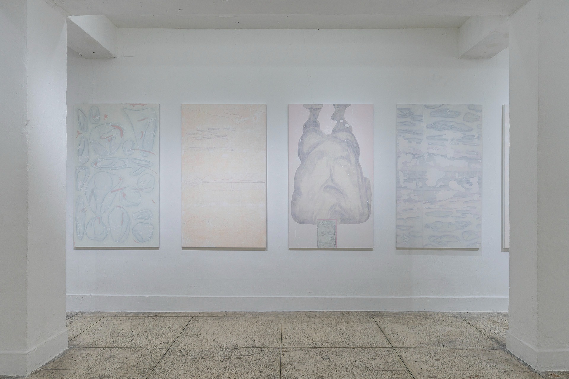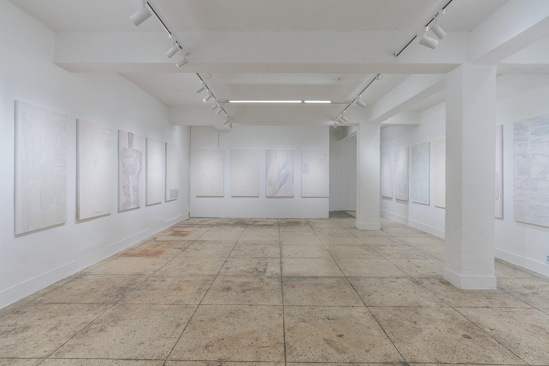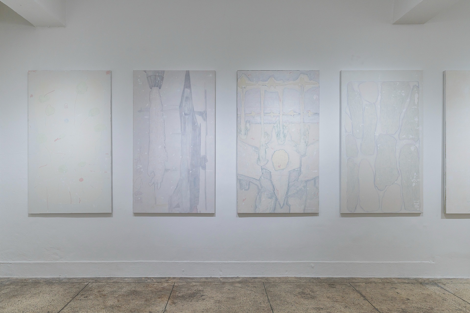 회화란 무엇인가? 이 질문에 임노식 작가는 “단정 지을 수 없다.”고 답한다. 그림을 그리는 작가로서, 수없이 자신에게 던졌을 질문이었음에도 모호한 답변에 그친다. 작업을 선보인 지 10년이 채 안 되는 작가에게 섣부른 질문일 수도 있겠지만, 이번 전시는 작업의 터닝 포인트를 찾고 있는 작가에게 이 질문을 생각할 수 있는 시점과 공간을 제시하였다. 스스로에게 그림의 본질과 태도를 되묻고 매체를 고민해 온 시간, 그리고 수집해 온 소재, 장소, 사건 등을 돌이켜 보며 이것들이 과연 나에게 어떠한 의미를 지니고 있는가? 그 의문을 풀어내면서 ‘긴 이야기’는 펼쳐진다. 긴 이야기에는 줄거리가 없다. 그림 속 이야기는 함축되어 담담하고 내밀한 조어 (造語)로 기술되었다. 그래서 이야기로 건져 올린 불분명한 수집물들의 경계는 멀겋게 희석되었고 내면의 소리를 찾고자 한다. 작가는 6개월 동안 캔버스 25개를 펼쳐놓고, 화면 전체를 그리고 지우기를 반복하며 단계적으로 쌓아 올리는 수행의 과정을 실행하였다. 얇은 켜들이 겹겹이 축적되어가는 동안, 그는 지금까지 이어진 개인적인 서사와 감정들이 이 안에 봉합되는 것을 목도한다. 더 나아가 비가시적인 요소를 파편화된 시각적 재현의 영역으로 구축해가며, 화면에 모인 각각의 모티프는 시공간을 넘나드는 또 하나의 서사로 거듭났다. 작가는 25개의 동일한 크기의 작품이 공간에 펼쳐지며 하나의 전체를 이루는 전시 풍경을 의도했고, 보는 이가 상상하고 느끼는 것에 따라 모두 다른 이야기가 될 수 있는 상황을 처음부터 설정했다. 작품이 작가의 창작을 떠나 다른 영역으로 이동했을 때, 보는 이의 생각과 태도를 담아낼 수 있는 여백과 쉼이 필요했다. 그림에서부터 이러한 시선은 반영되었다. 과거에는 뚜렷하고 명시적인 것들이 시간에 의해 퇴화된 것처럼 끊어진 이야기가 되고, 때로는 모호하고 불명확한 그림들이 어렴풋한 연결고리를 내포한다. 작가는 그 연결점을 그림과 그림을 잇는 ‘간(間)’으로 간주하며, 전체를 하나로 잇는 매개의 통로로 열어두었다. “모든 것이 미세하게 그곳과 연결되어 있으면서, 각각에 집중할수록 그곳과는 멀어진다.” 작가노트에 담긴 작가의 생각을 바탕으로 자연스럽게 직사각형의 네 벽면에 작품들은 같은 간격으로 배치되었다. 작업실에서 순서 없이 진행되었던 제작 과정처럼, 작품들은 전시장에 옮겨진 순서대로 벽면에 걸었다. 이야기의 흐름, 작가의 의도, 회화적 개념, 조형적 효과, 관객의 시선 등 가능한 주관적인 감각의 개입을 최소화하고, 무작위로 배열된 작품들이 자연스러운 흐름을 이루도록 연출하였다. 쉼 없이 열정적으로 달려온 작가에게 이번 전시는 ‘비워진 것들에서 답을 찾는’ 중요한 기점이 되었다. 무엇보다 인식의 대상이 외연의 풍경에서, 모호한 내면의 세계로 향한 변화의 지점을 엿볼 수 있다. 정면으로 나 자신과 마주하는 과정에서 느낀 부담과 고민을 작업에서 온전히 삭이면서 회화작가로서의 자의식 또한 한층 두터워졌으리라 생각한다. 다시 회화란 무엇인가를 반문한다. 명확하게 단정 지으면서 사라지는 모호한 것들의 가능성이 임노식 작가의 작업에는 계속 열려 있기를 기대해 본다. 이관훈 사루비아 큐레이터 (제공 = 사루비아)