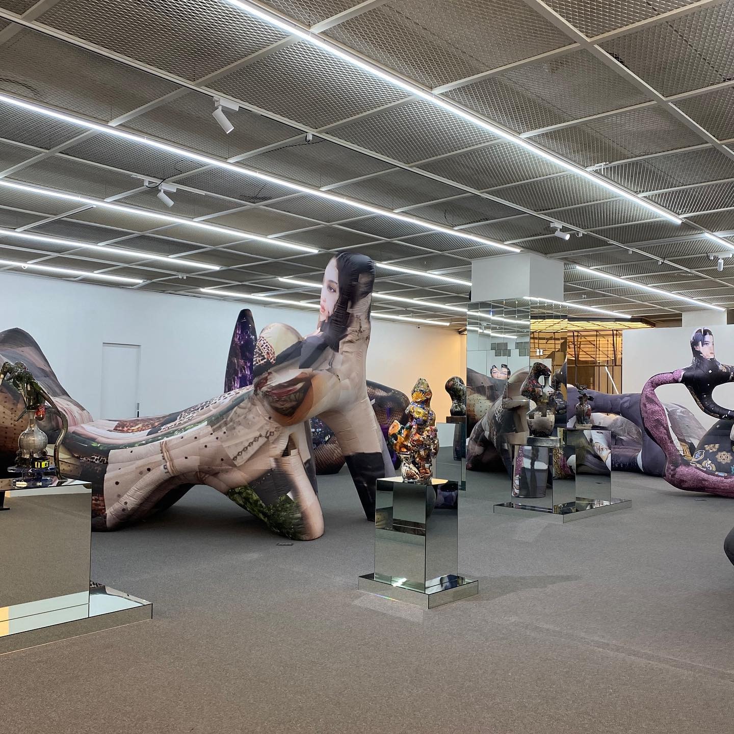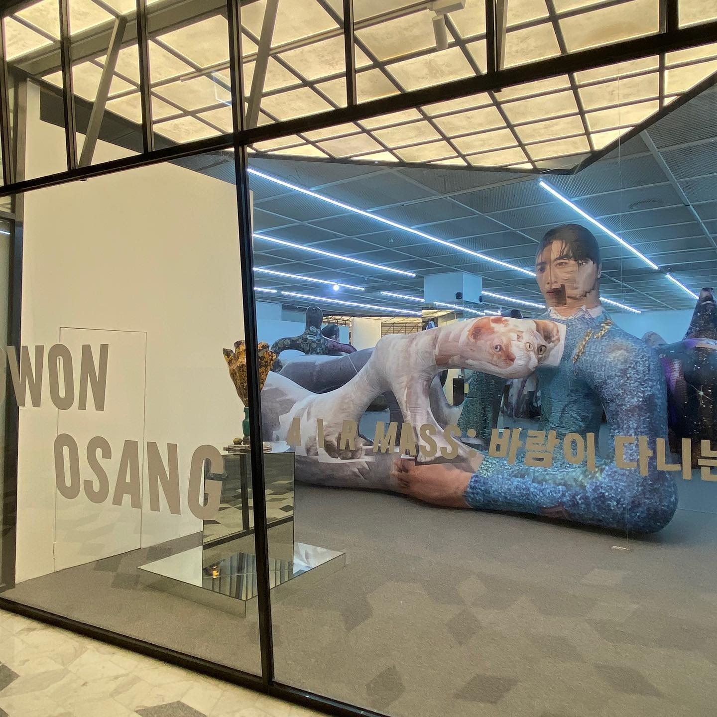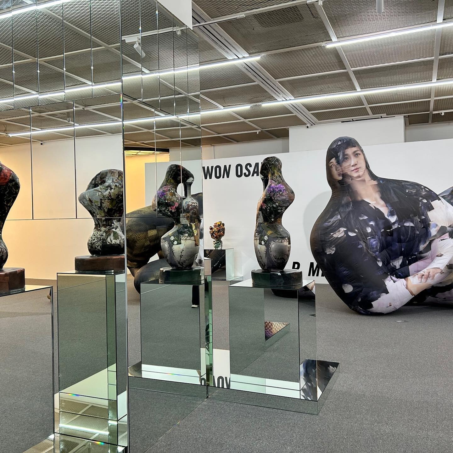 장소 : 에비뉴엘 6F 아트홀 - 권오상(b. 1974)은 국내외 미술계 무대를 누비며 자신만의 조각 세계를 견고하게 다져왔다. 조각의 범위와 개념을 확장시키기 위한 그의 모색은 무궁무진한 스펙트럼으로 펼쳐졌다. 수백 장의 사진을 붙여 사물과 인물을 이어 붙인 사진 조각 ‘데오도란트 타입(Deodorant Type),’을 시작으로 평면의 콜라주 ‘릴리프(Relief)’, ‘더플랫(The Flat)’ 이를 3차원으로 확장한 더 스컬프처(The Sculpture), ‘뉴 스트럭처’ (New Structure) 시리즈, 그리고 이번 전시에 선보이는 ‘에어-매스(air mass)’시리즈가 그 대표적인 예다. 안소연 평론가의 설명처럼, 조각가인 그는 언제부터인가 헨리 무어(Henry Moore)의 와상(reclining figure)을 참조적으로 전유해 사용하기 시작했다. 그리고 (굳이 추측하자면) 무어의 압도적인 스케일과 중량감에 맞서기 위해서인지 모를, 내부에 공기를 주입시켜 크기를 확대할 수 있는 인플레이터블(inflatable)을 사용해 스스로 매체의 전환점을 마련해 놓았다. 이 ‘에어-매스(Air-mass)’ 연작은 기존의 ‘매스패턴스(Masspatterns)’에 대응하는 일련의 관계도를 구축하며, 조각의 중량감에 관한 문제의식을 증폭시킨다. (*평론글 인용) 이번 전시 ⟪Air-mass: 바람이 다니는 길⟫에서도 그러한 작가의 시도를 증명하듯이, 헨리무어를 연상시키는 비스듬이 누워있는 높이 3.2m 가로 5m가 넘는 시야를 가로막는 거대한 와상이 전시장을 가득 채웠다. 큰 조각(AIR MASS)은 공기로 인해 자립하고, 작은 조각(정물)들이 공기 위에 부양해 있는 이미지로 연출되어 큰 조각과 작은 조각 사이에 바람이 다니는 길이 비로소 완성된다. 마치 미로 정원처럼 그 사이를 관람객이 거닐며 조각 사이의 바람을 느끼고 공유하는 순간이다. 형태와 부피감, 공기와 중량감에 대한 철저한 고민을 통해 탄생한 거대한 에어매스 사이에 거울로 랩핑된 공간은 조각과 조각 사이에서의 무한한 공간감으로 이미지의 숲을 거니는 환상적인 느낌을 제공한다. *AIR MASS (에어매스) : 기존의 ‘매스패턴스(Masspatterns)’에 대응하는 일련의 관계도를 구축. 내부에 공기를 주입시켜 크기를 확대할 수 있는 인플레이터블(inflatable)을 사용해 거대한 볼륨 조각으로 탄생시켜 에어매스라 명칭한 신작. (출처 = 롯데갤러리)