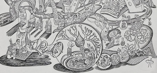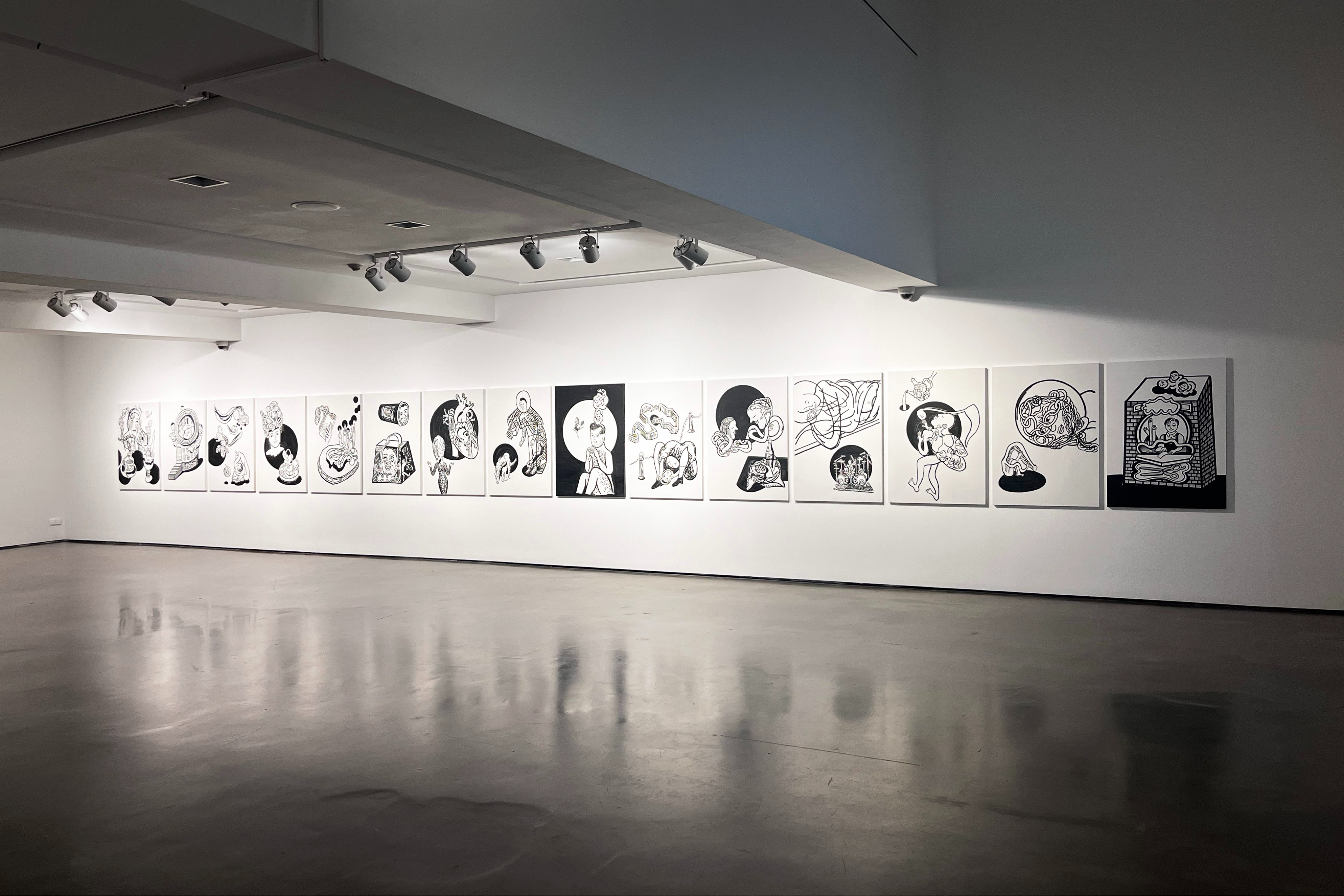 • 			이번 전시에서는 Chat GPT의 도움으로 만들어낸 소설과 시, 이미지생성-인공지능을 통해 그린 그림들이 등장한다. 나의 드로잉과 인공지능의 아이디어가 섞여 있는 동화적 공간 안에서 전통-현재-미래를 연결하는 수묵화, 드로잉, 애니메이션을 선보인다.