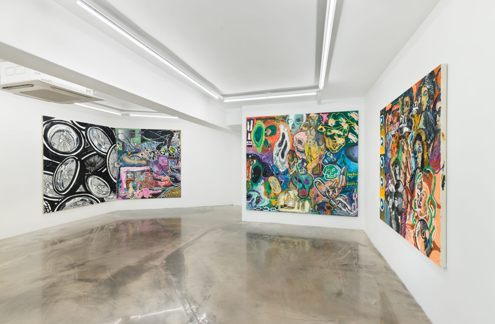 Various Small Fires is pleased to present Los Angeles-based artist Alex Becerra’s debut presentation in Asia titled Prelude to Understanding. This is the second solo exhibition with the gallery. Becerra approaches painting with the aim to summon embodied responses, enrolling the viewer in an experience that links vision with the emotional body. Using oil-paint in copious qualities, Becerra builds dense surfaces and pictures that are raucous with color, gesture, and images. Often, Becerra’s paintings have an element of montage; many moments in time are layered into a single painting, reflecting the cacophonous and disjointed scroll and distraction of contemporary life. (...) (Source = vsf)