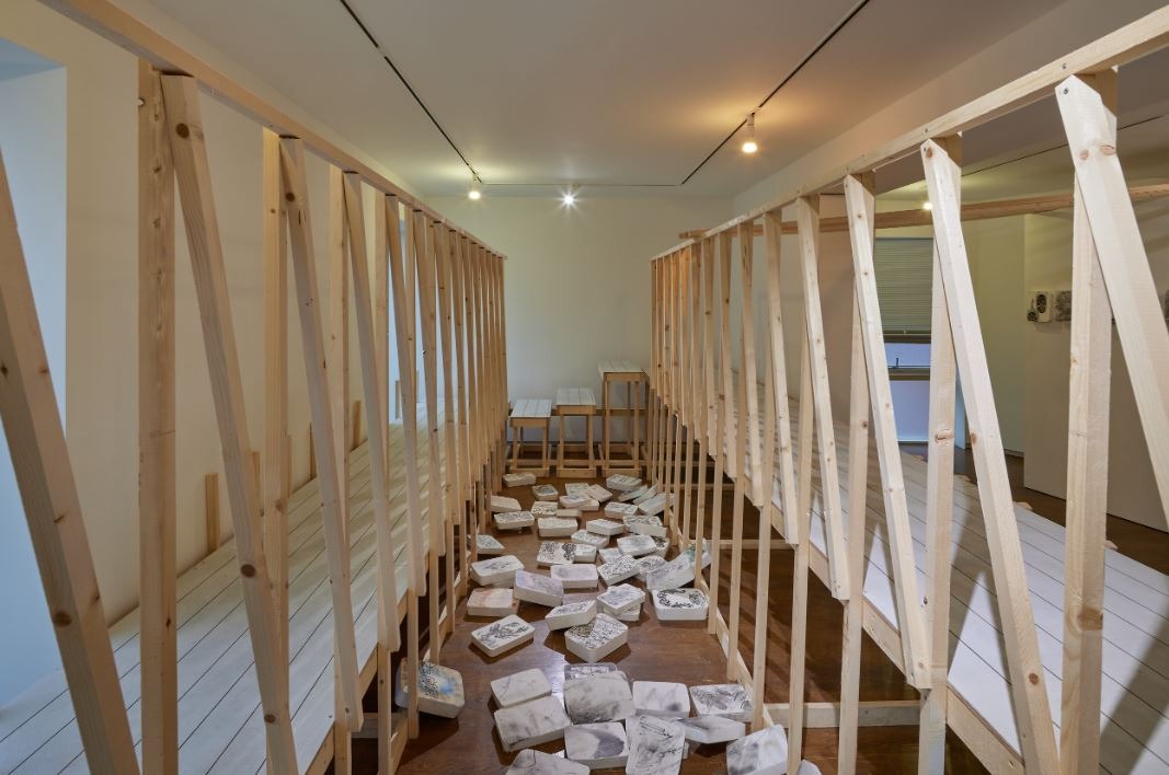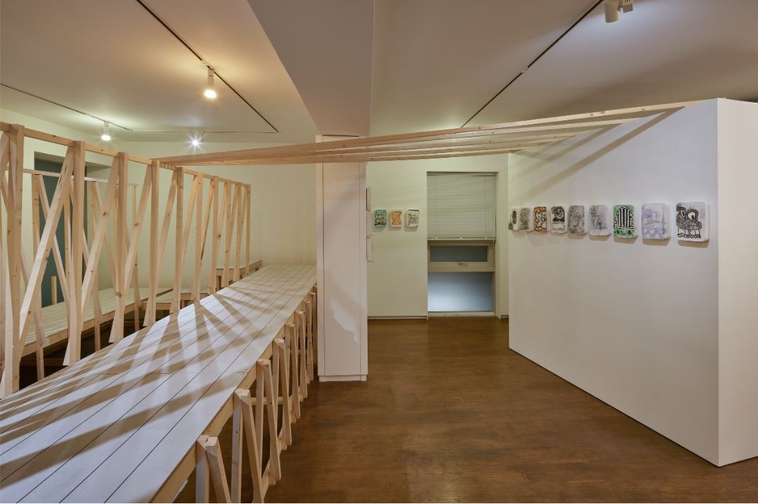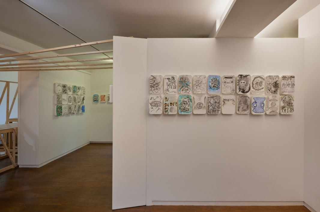 dpgp78(김지환, 민성식)과 신관수는 전시 공간에 관람자가 익숙하지 않은 장면과 상황을 마주하고 공간을 유람하도록 여러 장치들을 설치했다. ‹Letsing digging›전의 동선은 규칙 없이 자유롭게 선택할 수 있지만, 구조물을 통과할 때 신체적 조건에 따라 일종의 제약이 생긴다. 세 작가는 공통적으로 장소에 맞추어 작업의 형태를 유동적으로 전개한다. 그들의 자유로운 협업 방식은 일종의 놀이처럼 읽히며 동시에 즉흥 연주와 같은 긴장감을 유지하고 있다. 이번 전시는 작가들이 휘슬의 전시장을 점진적으로 점유해 나가는 과정을 담고 있다. 관객은 전시 공간에서 참여하는 방식에 따라 변화하는 개인의 의식과 감각의 범위를 시험할 수 있다. 신관수는 상황을 연출하여 다양한 방식의 놀이 환경을 구현하는 것을 목표로 작업한다. 작업의 결과물은 장소 특정적이며 모임 또는 공연을 동반한 고유의 시간성을 갖는 비물질적인 형태를 취한다. 작가는 참여자를 그의 작품이 기능하게 하는 매개체로 활용하며, 현장에 관람객이 모여드는 상황을 조성하여 공간과 시간을 일시적으로 점유한다. 그는 놀이에 유희뿐만 아니라 해방, 일탈과 같은 모험적 요소를 포함한다. 작가는 ‹Letsing digging›전에 약간 불편한 관람로를 설치했다. 전시는 관람자가 머리를 숙이고 허리를 굽혀 이동하며 시작되고, 게임의 도전 과제와 같은 조건을 수용하면서 새로운 놀이가 된다. dpgp78(김지환, 민성식)은 2019년부터 함께 활동 중인 콜렉티브로 동시대 미술의 생태계와 그를 둘러싼 제도권을 재치 있게 비껴가는 다원적 프로젝트를 진행하고 있다. 두 작가는 서로 드로잉을 공유하고 복제하여 작업에 유기적으로 배열한다. 이들의 작업은 형식과 대상을 자유롭게 넘나드는데, 그림의 배경이 되는 재료와 작품이 놓이는 공간의 성격에 유연하게 대처하는 특징을 가지고 있다. 뜯어서 사용하면 그림이 사라져 버리는 300개의 두루마리 휴지¹, 사람의 피부에 새긴 타투, 신도시²의 천장과 내부 곳곳을 채운 그림, 동화책 모닝빵³ 삽화 협업 등을 그 예로 들 수 있다. 이번 전시에서 dpgp78은 백여 개의 표면과 부피가 다른 석고 덩어리를 만들어 현실과 공상 사이를 오가며 나눈 대화로부터 시작된 도상들을 마커, 연필, 펜 등을 사용하여 담았다. 김지환과 민성식은 작품을 재사용하고 자체 대량 생산을 시도하는 등 현대 사회에서 미술이 소비되는 현상과 작품을 소장하는 의미를 다크 코미디 같은 내러티브로 풀어내고 있다. 신관수 (b. 1994) 신관수는 서울에 기반을 두고 설치 작업을 한다. 그는 현재 아티스트 콜렉티브 ‘서울핑퐁클럽’으로 활동 중이며 전시와 프로그램을 기획하고 전시공간 ‘샤워’와 제작 회사 ‘샴푸’를 운영하고 있다. dpgp78 (est. 2019) dpgp78은 김지환, 민성식으로 이루어진 콜렉티브로 얼터사이드, 휘슬에서 단체전에 참여했고 최근 소설가 이상우와 협업한 책‹모닝빵›(2023, 나선프레스)을 출간했으며 다수의 팝업, 출판 프로젝트에 참여했다. 타투이스트, 음악 활동도 병행 중이다. ¹ dpgp78은 2021년 미도파(@midopacoffeehouse)의 팝업 행사에서 300개가 넘는 두루마리 휴지에 마커로 벽돌 문양을 함께 그려서 전시했다. ² 신도시(@seendosi)는 2015년 서울 을지로에 문을 연 펍이자 공연장으로 이병재, 이윤호가 설립, 디제잉과 퍼포먼스 등 다양한 이벤트가 이루어진다. 그동안 다양한 예술가들과 협업하며 서울에서 하나의 예술적 신을 생산한 곳이기도 하다. ³ 소설가 이상우의 글과 dpgp78의 드로잉을 배열한 동화책. ‹모닝빵›, 2023, 나선프레스 (출처 = 휘슬)