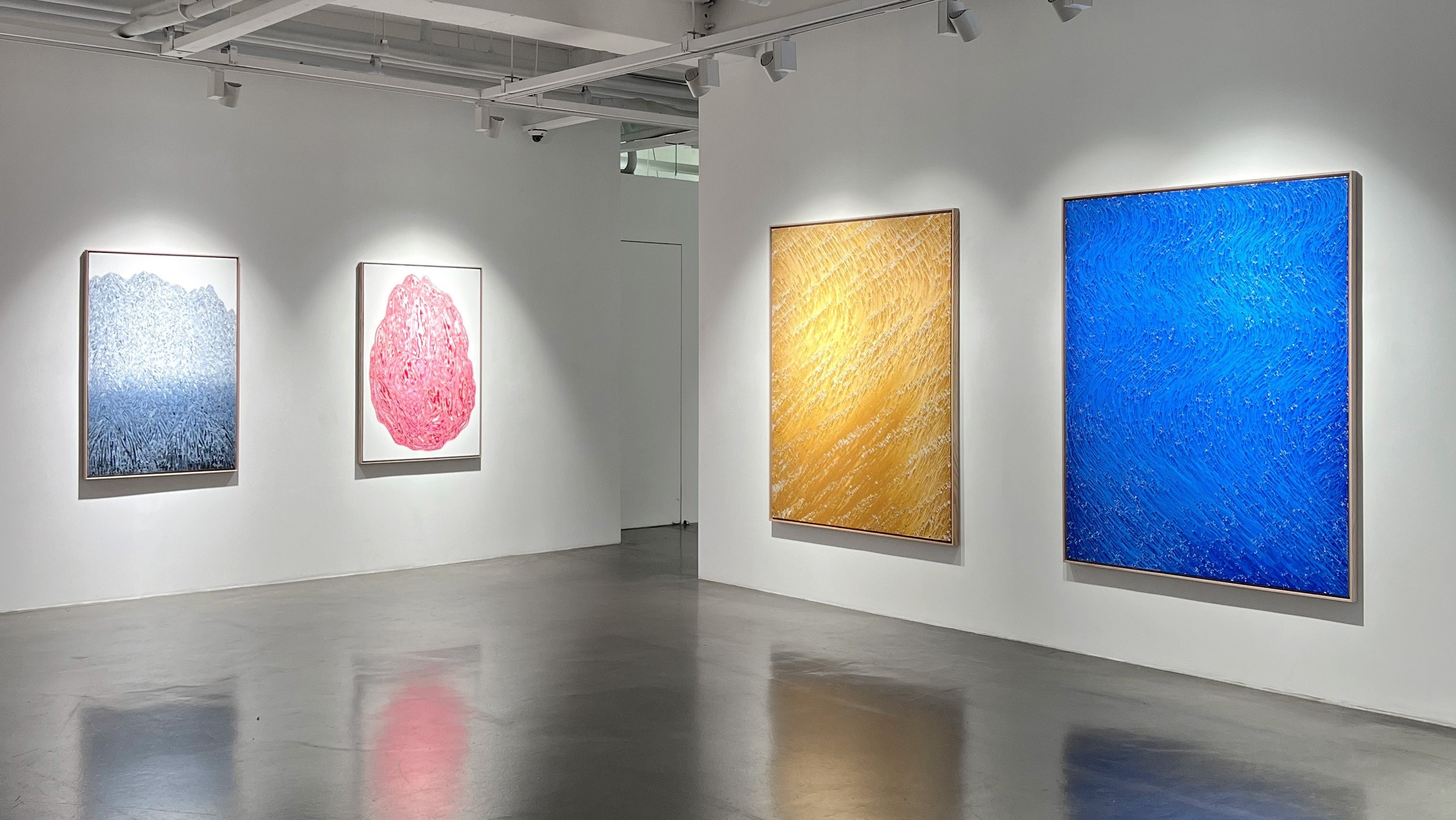 갤러리조은은 채성필(b.1972), 장광범(b.1972)의 2인전 《Floating Gesture 흐르고 움직이는》을 7월 17일부터 8월 17일까지 개최한다. 두 작가는 한 순간도 고정하지 않고 흐르고 움직이는 대자연의 근원적 아름다움을 특유의 독창적 조형 언어로 펼쳐낸다. 본질적인 것에 아름다움에 있다고 믿는 채성필에게 ‘흙’은 하나의 모델이자 원형으로, 작가만의 독특한 미학을 전개하는 기본적 재료이다. 거대한 캔버스에 진주 펄을 얇게 바른 후, 흙과 천연안료, 먹 물 등을 직접 조합해 만든 물감으로 뒤덮는다. 작가가 직접 고안한 싸리비를 연상시키는 붓으로 물감을 붓고 쓸어낸 후, 물을 부은 캔버스를 이리저리 움직여 물길을 터, 색과 물 스스로가 그림을 그리게 한다. 작가는 붓과 물길이 나아가야 할 방향을 정할 뿐, 그 뒤의 일은 자연스러운 우연에 맡긴다. ‘스스로 그러하다’라는 자연(自然)의 의미처럼, 물감은 높은 곳에서 낮은 곳으로 흐르며, 스스로 자연을 닮아간다. 인위적 방식이 배제된 체, 흙과 물이 만들어내는 흔적은 대지의 표면 위에 끊임없이 움직이고 변주하는 자연의 이미지를 연상시키는데, 일련의 과정을 거쳐 나타난 화면은 “나무가 되고, 들판이 되며, 물결치는 바다가 되고, 바람에 이는 대지가 된다.” (미술평론가 안느 캐드라옹 Art Critic Anne Kerdraon) 본 전시는 기존의 대표 시리즈인 ‘물의 초상 Portrait d’eau’, ‘대지의 몽상 Rêve de terre’, ‘익명의 땅 Terre anonyme’과 함께 흙과 바위의 모습을 미적으로 재구성한 ‘르네상스 체크 Renaissance Check’와 사람과 사람이 얽힌 형상을 표현한 ‘세상 Le monde’을 공개하며 작가의 작품 세계를 망라한다. 서울대학교 동양화 학사 및 동 대학원 석사를 마치고 프랑스 헨느 미술대학 석사를 거쳐 파리 1대학 조형예술 박사 과정을 수료한 채성필은 프랑스 파리 근교 오베르 쉬르 우와즈 Auvers-sur-Oise에 거주하며 20년 넘게 작품활동을 이어오고 있다. 2022년 평창동 가나 아트센터, 2023년 파리 마리안 이브라힘 갤러리 Mariane Ibrahim Gallery 그리고 2024년 아트조선 스페이스에서 개인전을 거쳐 유럽과 한국을 오가며 활발한 작품활동을 이어오고 있다. 국립현대미술관, 서울 시립미술관, 파리 세르누치 미술관 Cernuschi Museum 등을 비롯 주요 미술 기관에 작품이 소장되어 있다. 채성필과 함께 프랑스를 기반으로 활동을 이어 오고 있는 장광범(b.1972)은 캔버스에 물감을 입히고 걷어내는 과정을 통해 ‘시간의 형태’를 가시화한다. 땅이 지층을 쌓듯, 작가는 캔버스에 여러 겹의 물감을 쌓아 올린다. 물감이 충분히 마르면, 조각을 하듯, 캔버스 뒷면에 볼록한 물체를 대고 물감이 입혀진 표면을 연마기로 갈아내며 마티에르를 걷어낸다. 이때 쌓여진 물감 지층이 연마기로 갈아지며 나무의 나이테를 닮은 원형의 유기체들이 나타난다. 연마기로 갈려진 미세한 결 사이로 자연의 총 천연색을 연상시키는 레드, 블루, 그린 톤의 색감들이 드러나는데 그라데이션 혹은 보색대비로 화면에 깊이감과 율동감을 더한다. 빛에 의해 시시각각 변화하는 다양한 색이 사물의 본질이라 여긴 인상파 화가들처럼, 장광범의 원형 모티브들은 몽환적이고 미묘한 빛깔로 매 순간 그 모습을 달리한다. 수축하고 동시에 팽창하는 유기체들이 한 순간도 고정하지 않고 움직이는 대자연처럼, 때로는 산 능선으로 때로는 물 풍경으로 그 모습을 드러낸다. “모네의 수련화부터 동양의 수묵 산수화까지 동서양을 아우르는 대자연의 풍경”이 그의 작품 안에서 다시 태어난다. (마엘 벨렉, Mael Bellec 파리 세르누치 미술관 학예연구실장) 본 전시를 통해 작가는 대표작 ‘반영 Reflet’과 더불어 ‘산 Montagne’ 시리즈의 연장선으로, 프랑스 브르타뉴 지방의 쁠루마나슈 Ploumanac'h 해안의 둥글고 거친 돌에 영감을 받은 ‘Roche’ 연작을 공개하며 작가만의 영롱하고 몽환적인 시간 풍경을 선사한다. 중앙대 미대를 졸업한 장광범은 프랑스 파리 8대학에서 미술 이론 석사, 박사 과정을 수료했다. 유럽과 한국을 오가며 다수의 개인전과 기획전을 가졌을 뿐 아니라 아트 브뤼셀 Art Brussels, 아트파리 Art Paris와 같은 세계 유수의 페어에 참여하며 국내외 미술계에서 자리매김을 하고 있다. 국립현대미술관, 파리 세르누치 미술관 Cernuschi Museum에 작품이 소장되어 있다. (출처 = 갤러리조은)
