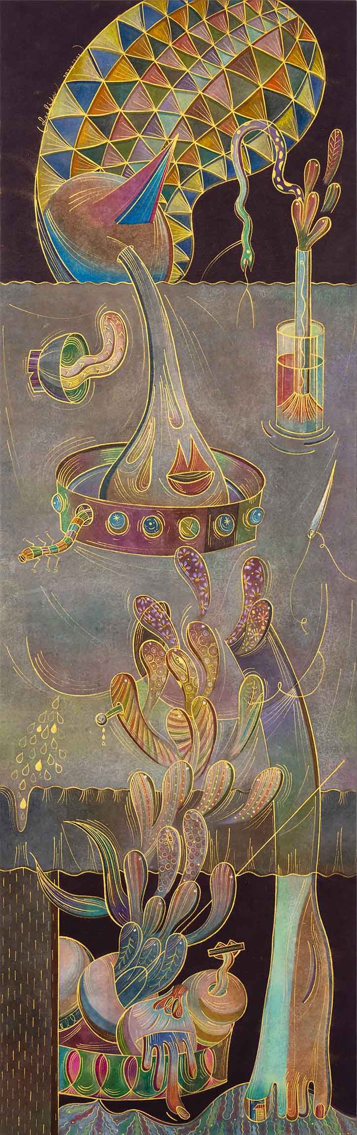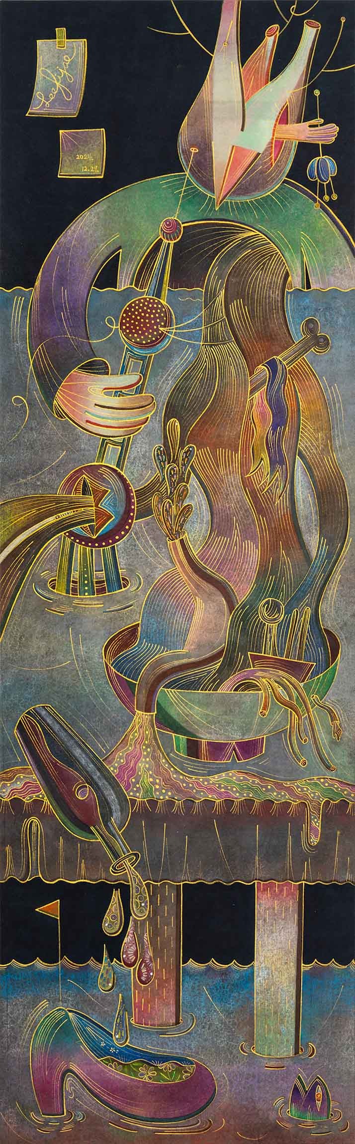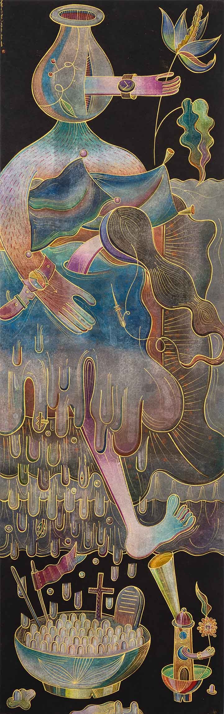 2024 장지에 먹, 색연필, 금분, 아크릴, 수채 191 x 61cm