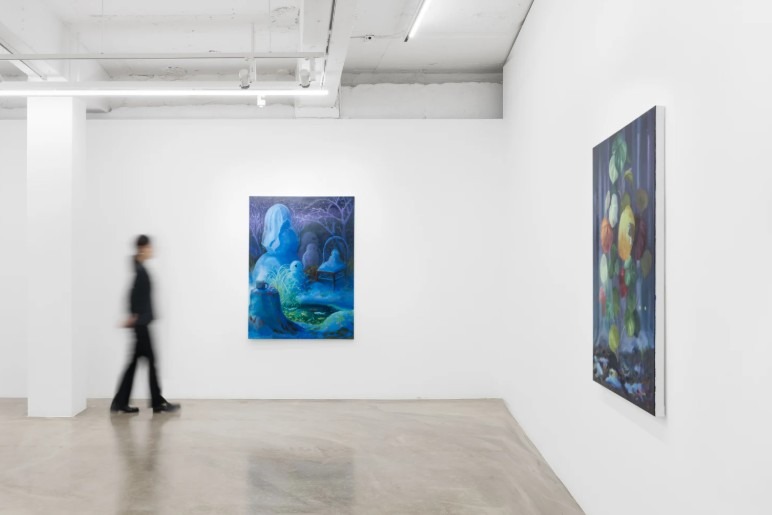 갤러리바톤은 런던을 기반으로 활동하는 최민영(b. 1989)의 개인전 《Midnight Walk》을 7월 9일부터 8월 9일까지 한남동 전시 공간에서 개최한다. 최민영은 개인적 경험에서 비롯된 기억과 이미지를 바탕으로 기억과 환상이 교차하는 자유로운 서사 구조로 초현실적인 풍경을 그려낸다. 그녀의 작업에 등장하는 낯설고도 익숙한 장면들은 꿈속의 이미지처럼 시각적 착시를 유도하며, 일상의 틈새에 미묘한 균열을 일으킨다. 이는 현실의 틈새에 잠재된 감정과 상상을 드러내며, 우리에게 또 다른 시선을 제안한다. 이번 전시는 스페이스K 서울 개인전 《꿈을 빌려드립니다》(2024.12.12~2025.02.23)를 성공적으로 마친 작가가, 내면 깊숙한 층위에서 길어 올린 서사를 따라, 작가는 자신만의 세계관을 점진적으로 확장해 나가는 여정을 보여준다. 일상의 기억과 꿈의 파편을 결합한 구상적 표현에서 출발하여, 점차 심화한 사적 경험과 내면 의식의 차원으로 나아가며, 감각과 상상의 경계를 허무는 고유한 미학으로 귀결된다. 전시는 미지의 장소와 시간을 배경으로 하는 신작 및 근작을 통해 다층적인 내러티브를 구성한다. 주조색으로 활용된 파랑과 초록은 새로운 시공간의 초자연적 분위기를 조성하며, 수면 위아래로 교차하는 생명체들의 기묘한 움직임은 강한 시각적 인상을 남긴다. 예를 들어, Sleepless Nights (2025)에서는 안개 자욱한 심야의 숲속에서 거대한 쌍둥이 고양이, 올빼미, 게, 물고기 등이 모습을 드러낸다. 이들은 캔버스 밖을 향한 시선으로 관람자의 존재를 직시하며, 마치 언제든 다가올 듯한 긴장감을 자아낸다. 달빛이 비치는 검푸른 공기는 이 장면이 수중일지도 모른다는 상상을 유도하고, 뚜렷한 형상들은 존재의 이중성을 암시하며 복합적인 신화를 구성한다. 작가는 현실과 비현실, 공간과 시간, 의식과 무의식이 교차하는 경계 위에서 신비로운 서사를 형성하고, 감각적 층위를 자극한다. 작품 속 반복적으로 등장하는 올빼미, 고양이, 토끼, 거북이, 잉어, 메기 등은 동서양 문화에서 다양한 상징성을 지닌 존재들이다. 이들은 익숙하면서도 이질적인 방식으로 예기치 않은 장소에 등장하며, 이는 앙드레 브르통(André Breton)이 말한 ‘순수한 내면의 모델’에 접근하는 하나의 시각적 전환, 데페이즈망(dépaysement)으로 작용한다. 모순된 요소들이 병치된 화면은 누군가의 꿈을 펼쳐 보이듯, 신비로운 빛의 확산과 함께 시적인 몰입감을 자아낸다. 이때 '빛'은 최민영 작업의 핵심 요소로 기능한다. 달빛, 석양, 인공광 등 다양한 광원은 작품의 구성뿐 아니라 감상의 리듬을 결정짓는다. Dear Storm (2025)은 부드러운 빛으로 연못 속 어린 물고기들과 눈사람 형상의 존재를 감싸며, 생명과 교감하는 순간을 포착한다. 내리는 눈 속에서의 무언의 몸짓과 얼굴 없는 시선은 순수한 감정의 핵심을 맑게 드러낸다. 또 다른 작품인 Nighttime Bathing (2025)은 차가운 겨울 공기, 생명력 넘치는 연못, 그리고 그 안의 거북이 가족을 병치하며, 이질적인 요소들의 공존이 주는 역설적인 감각을 시각화한다. 이 이미지들은 관람자로 하여금 낯설고도 익숙한 감정의 여정을 따라가게 하며, 내면의 기억과 환상 속을 유영하도록 이끈다. 최민영은 서울대학교 및 동 대학원 서양화과를 졸업했다. 영국 슬레이드 미술학교(Slade School of Fine Art)에서 석사 과정을 마친 후 런던에 머무르며 작업하고 있다. 스페이스K 서울(2024), 베이징 하이브 현대미술센터(Hive Center for Contemporary Art, Beijing, 2023), 올베라 현대미술센터(Olvera Contemporary Art Centre, 2017)에서 개인전을 개최했고, 쓰시 미술관 (Sixi Museum, 2023), 대전시립미술관 대전창작센터(2023)에서 열린 단체전에 참여해왔다. 작가는 2018년 웰스 아트 컨템포 러리 어워드(Wells Art Contemporary Award)에서 차세대 미술상(Next Generation Art Prize)을 수상했고 2017년 슬레이드 서머 스쿨 레지던시와 올베라 현대미술센터 레지던시에 선정되었다. *출처 및 제공: 갤러리 바톤