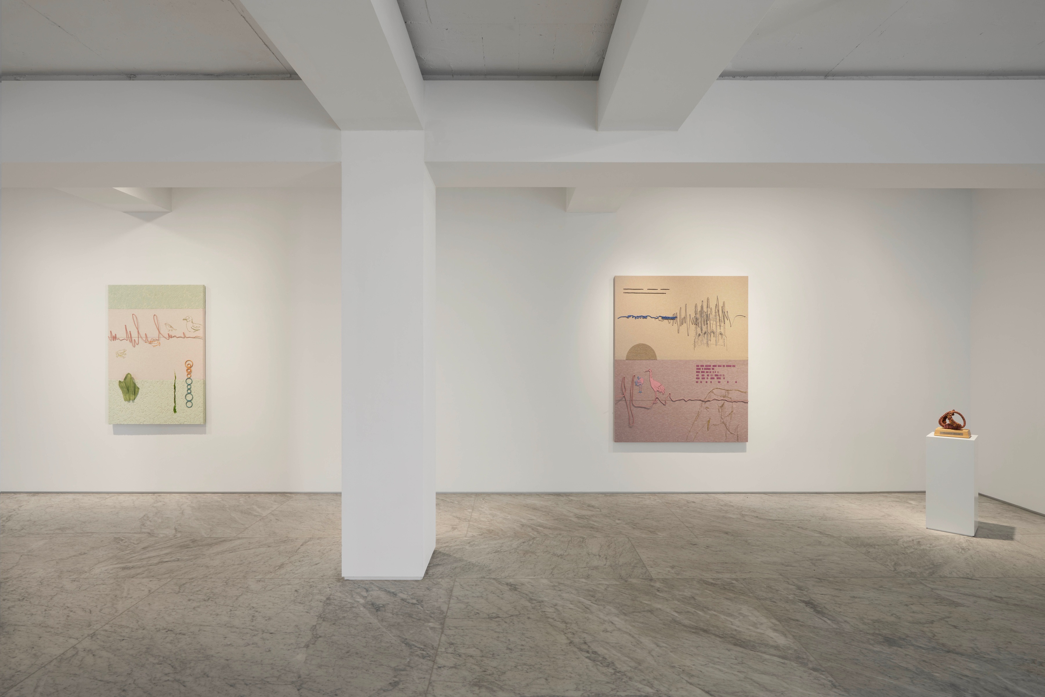 서투른 작곡가 홍영인 개인전 PKM 갤러리는 8월 20일부터 9월 27일까지 홍영인(b.1972)의 개인전 《서투른 작곡가Amateur Composer》를 개최한다. 홍영인은 우리 삶 속에 존재하는 위계 구조를 비이분법적 사고와 다매체적 접근을 통해 유연하게 허무는 작업으로 주목받아 온 작가다. 올 봄 아트선재센터에서 열린 《홍영인: 다섯 극과 모놀로그》에 이어 개막하는 이번 전시에서는 소리에서 출발하여 시각과 촉각, 움직임의 공감각을 경유하는 조각들과 자수 회화 및 패치워크 등 20여 점의 신작들이 최초 공개된다. 전시 개막일인 8월 20일에는 오후 6시부터 바이올리니스트가 전시작들과 교감하며 즉흥적으로 연주하는 퍼포먼스가 약 한 시간 동안 진행될 예정이다. 홍영인은 이동과 여정 속에서 자신을 사로잡은 소리들을 지난 7년여간 채집해 왔다. 《서투른 작곡가》는 그렇게 모은 소리들을 색과 이미지, 촉감의 코드로 편곡하여 선보이는 자리이다. 동물과 새, 곤충, 강물, 바람, 교회 종성 등의 소리 기록은 작가로 하여금 당시의 기억을 사진보다 더 선명히 떠올리게 했다. 나아가 작가는 음音의 감각에 귀 기울일 때 기존의 지배적인 구조, 즉 언어 및 인간 중심의 체제로부터 벗어나 세상을 다르게 인식할 수 있음을 깨닫게 된다고 말한다. 《서투른 작곡가》의 메인 공간에는 홍영인이 동물의 음성을 포함해 수집한 소리들을 악보로 번역하거나, ‘똬리’와 같이 사라질 상황에 처한 수공예 기법을 작곡의 요소를 빌어 되살리고자 한 작업이 자리한다. ‹소나타: 두루미와 나Sonata: Durumi and I›에서는 전통 방식으로 짐을 머리에 얹은 작가가 사람 크기의 두루미와 마주하고 있는데, 멸종위기종인 두루미는 무리를 지어 다니기에 항상 복수의 소리를 내며, 춤으로 연대를 표하는 새이다. 작가는 이들의 비언어적인 소통에 주목해 그 추상적인 화음과 움직임을 보표 위에 시각화 했다. 이와 같은 멸종 위기 동물에 더불어, 홍영인은 기존의 관심사인 여성 노동자 등 역사적으로 주변화된 주체의 목소리를 3D 악보 또는 악기 조각을 통해 전시장으로 불러 들인다. 실, 로프, 와이어, 직물, 세라믹 등 다양한 재료가 유기적으로 엮인 이 악보·악기 조각은 연주를 통해 재해석되고 활성화되기를 기다리는 잠재적인 상태에 놓여 있다. 한편, 별관에서는 홍영인이 다양한 시점에 제작한 벽면 작업과 소형 조각들이 소개된다. ‹모튼 펠드만을 위한 패턴Patterns for Morton Feldman›은 운율의 구성 수단으로서 색상과 형태를 탐구한 패치워크 시리즈이며, ‹공생의 구성Symbiotic Composition›은 녹음된 소리를 재료와 이미지로 전환시켜 본 초기 평면 악보 시리즈이다. ‹모뉴먼트Monument› 시리즈에서는 동물들의 놀이를 위한 장난감이 기념비적인 형태로 전환되어 관객을 맞이한다. 작가는 이 동물 장난감 조각이 미래에 인간 중심적인 도시 공간을 성찰하는 대규모 공공미술이 되는 상상을 한다. 작업의 시작점이 되는 작은 드로잉과 소품에서부터 크고 복잡한 설치 작업에 이르기까지, 작업이 확산되어 가는 낯설지만 따뜻한 과정을 관객과 공유하는 이번 전시는 우리가 우리를 둘러싼 세계와의 관계를 다시 바라보고 새롭게 정의할 계기를 마련해 줄 것이다.