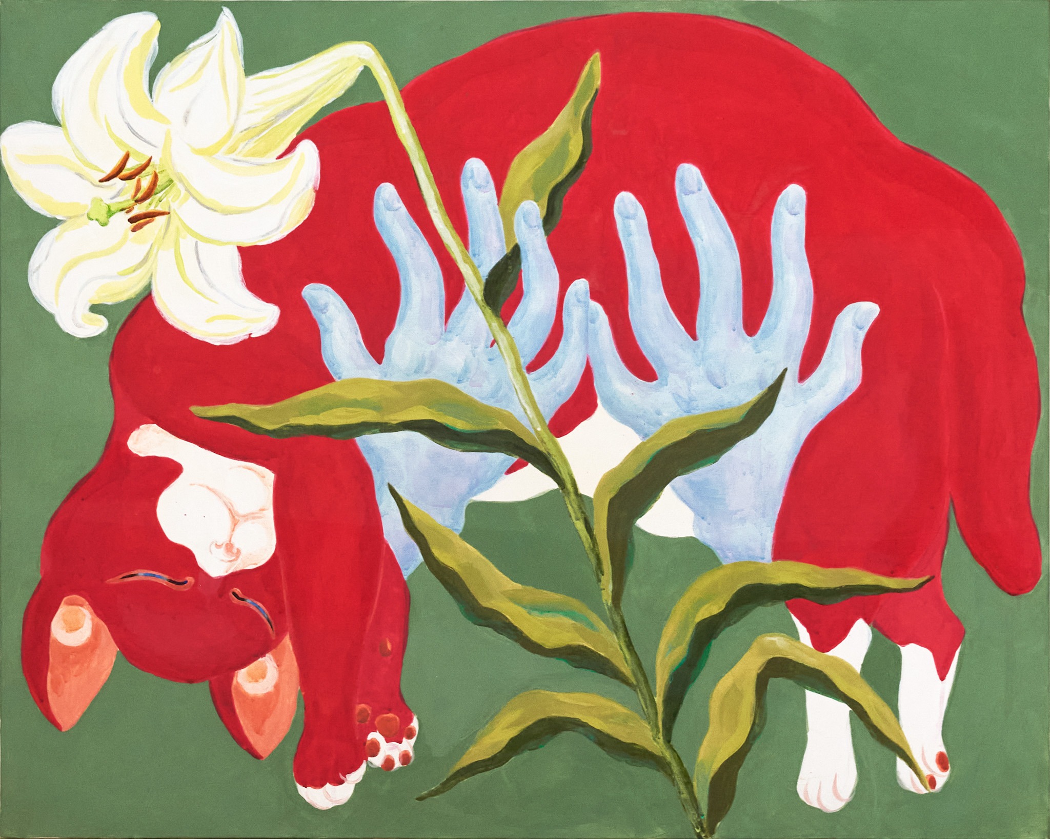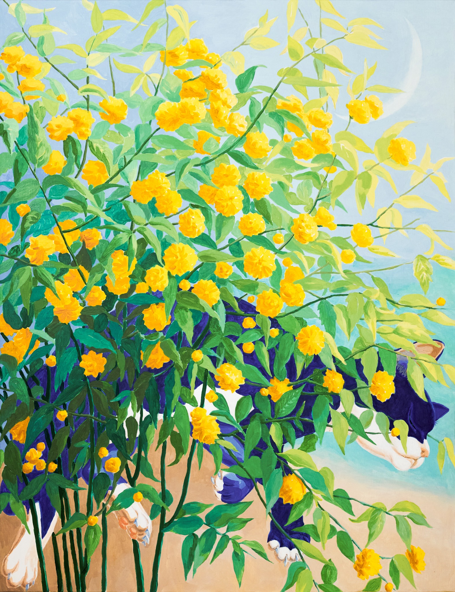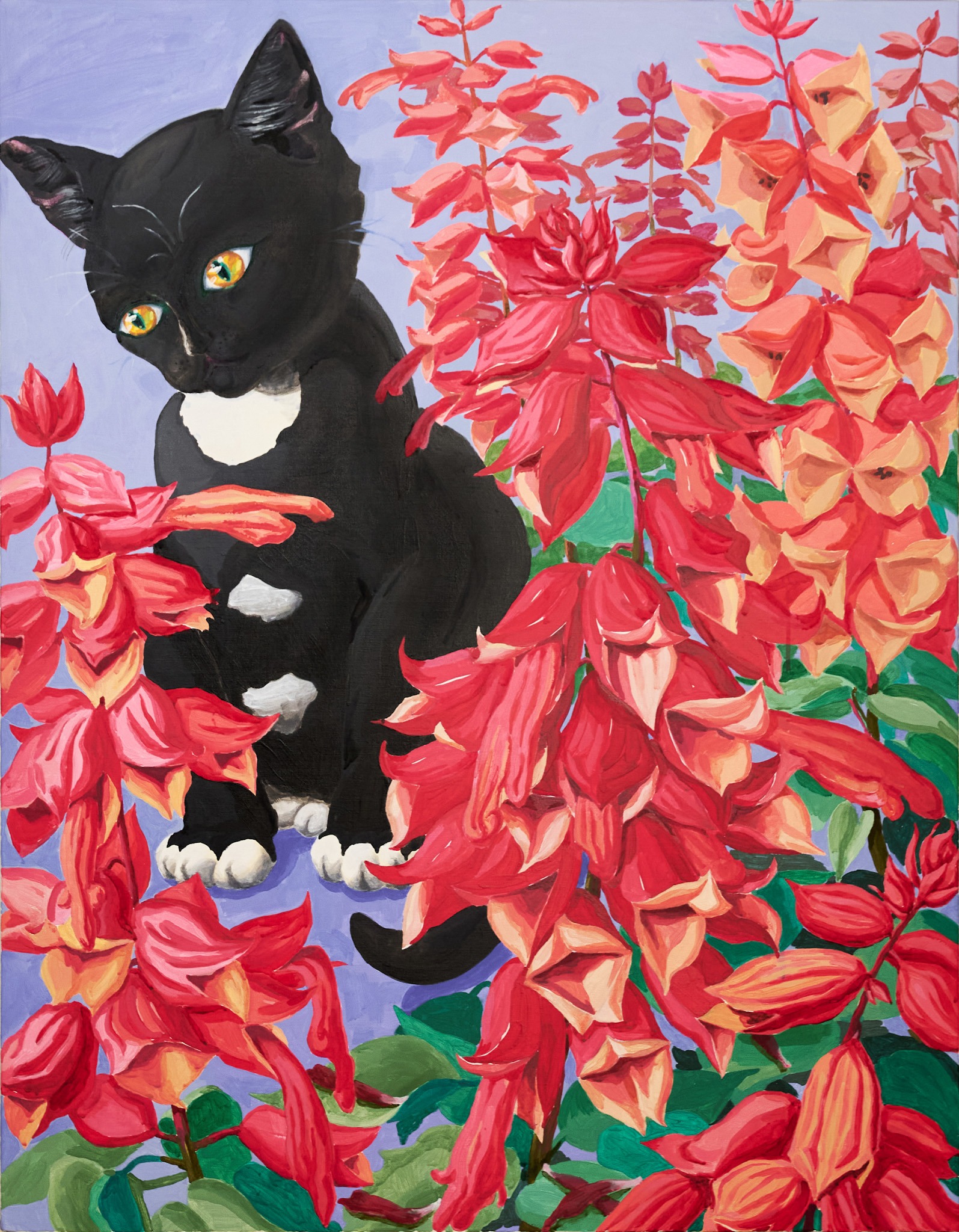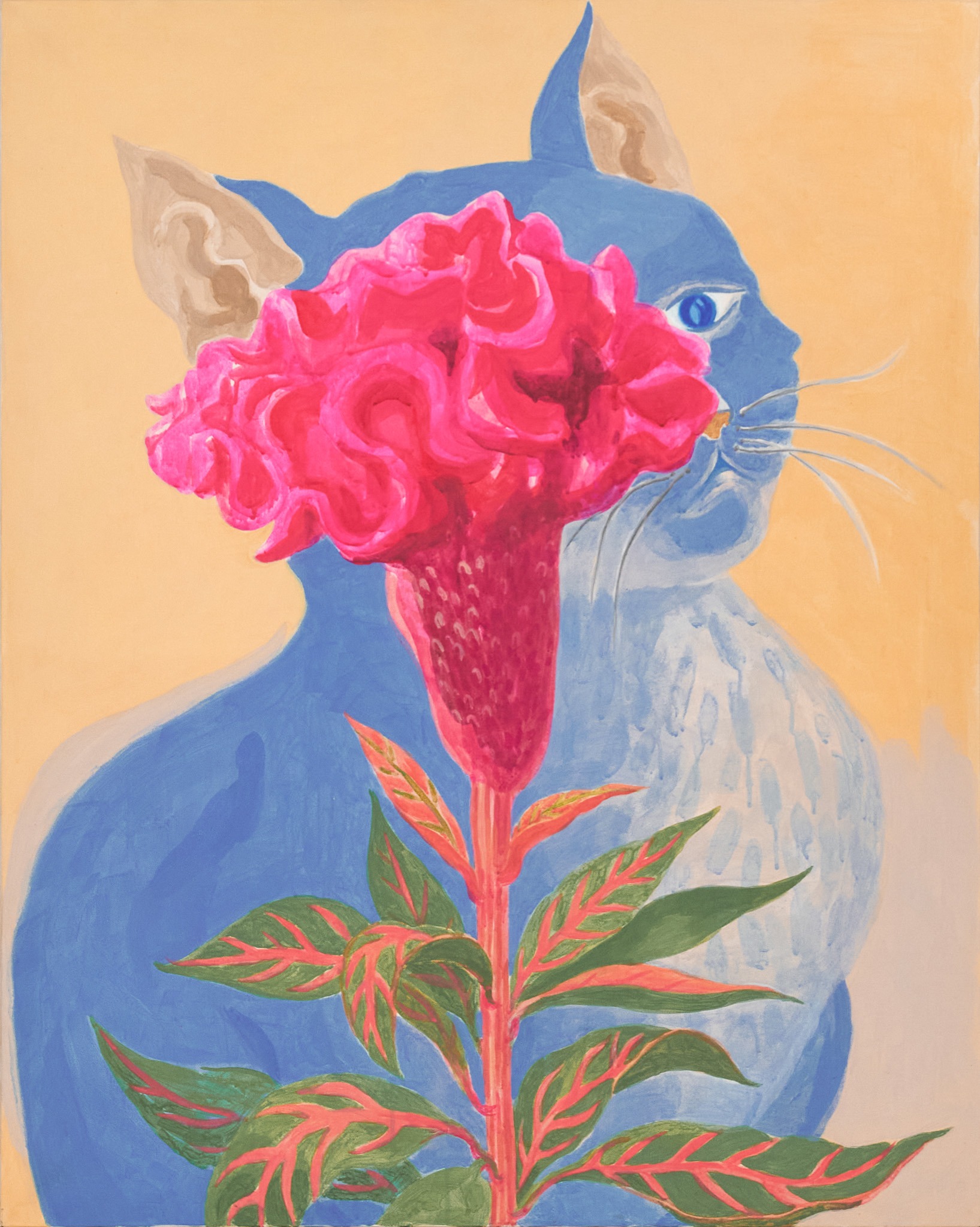 HAPPY LOSS 김줄 개인전 도시에 밤이 내리고 창문 밖 빌라도 멀리 있는 산도 모두 잠자러 가면 나의 방으로 시체들이 찾아온다. 고양이 모양을 한 나의 빈 곳으로 차곡차곡 겹쳐 눕는다. 다정한 시체들의 밤. 로드킬 당한 길고양이로 시작해서 함께 살던 고양이와 가족들에 이르기까지, 그림 속 고양이와 꽃들에는 그동안 통과해 온 죽음과 그로 인해 겪은 감정들 이 겹쳐있다. 가까웠던 존재의 죽음은 비탄을 불러일으키기 쉽지만, 내가 그린 고양이의 시체들은 특별한 감정을 자아내지 않고 그냥 거기에 놓여 있다. 모 든 의미나 판단이 제거된 채 텅 빈 공간을 응시하는 커다란 동공처럼. 거대한 생물학적 사이클의 관점으로 보면 죽음은 소멸의 과정에 불과하다. 힘차고 부드럽게 움직이던 신체는 썩거나 불에 타 사라지고 총명하게 반짝이던 정신은 어디론가 흩어져 보이지 않는다. 슬픈 일이긴 하다. 하지만 죽음에 그 이상의 의미를 부여하는 것은 억지라고 생각했다. 어쩌면 사후세계란… 죽은 이들에 대한 기억으로 축조된 것이 아닐까? 내가 죽은 누군가를 떠올리는 순간 산산이 흩어져 감지할 수 없던 그의 몸과 정신의 조각들이 내 안 어딘가에 서 재조립 된다. 그리고 나의 일부가 되어 나와 함께 계속 살아간다. 10년 넘게 키우던 고양이가 췌장염에 걸려 일주일 남짓 앓다 떠났을 때, 북받치는 설움 속에서도 슬며시 떠오르는 문장 하나가 있었다. 그 문장은 고양이 가 죽으면서 나에게 남긴 마지막 전언이라도 되는 양 내 머릿속을 떠다녔다. ‘행복하기를 선택하기’ 투병 중 중요한 몇 번의 기로에서 내가 내린 잘못된 결 정이 그 작은 아이의 죽음을 재촉한 것 같다는 죄책감이 들겠지만… 그러나, 그럼에도, 여전히 나는 행복하기를 선택해야만 한다. 철학자 로지 브라이도티는 저서 <포스트 휴머니즘>에서 인간 존재를 근대적 개념인 개별적이고 독립된 자아가 아니라 타인과 비인간, 환경과 얽혀 끊임없 이 변화하는 유기적 존재로 설명했다. 그에 따르면 죽음 역시 삶과 죽음이라는 이분법적 관점에서 본 단순한 종결 상태가 아니며, 살아있는 사람들과 기억, 기록, 유전정보 등을 통해 새롭게 관계 맺으며 지속되는 또 다른 형태의 존재 방식이다. 나의 고양이는 죽음으로써 더 이상 나와 분리된 존재가 아닌 내 인 식의 일부가 되었다. 그만큼 나의 정체성도 확장되었으니, 나는 슬퍼하거나 불행해 할 필요가 없다. 물론 계속 슬프거나 불행해 할 수도 있다. 고양이가 죽 음을 통해 나와 새로운 관계 맺기를 했다고 그가 겪은 고통이 없던 일이 되는 것도 아니니까. 단지 선택의 문제일 뿐이다. 하지만 연가시가 감염된 숙주를 물가로 이끌듯 내 안의 고양이가 나를 조종하는 것만 같았다. 행복하라고. 행복해지기를 선택하라고. 자기가 겪은 고통이 헛되지 않도록 자신의 몫까지 최 선을 다해. 죽음을 테마로 작업하면서도 허무하거나 쓸쓸한 정서보다는 행복한 뉘앙스를 주고 싶었다. 그림 속 고양이들은 완만하고 둥근 형태로 편안한 포즈를 취하 며 꽃들은 강한 대비와 비비드한 색감으로 폭발하듯 피어난다. - 작업노트 中 *출처 및 제공: 김줄 작가