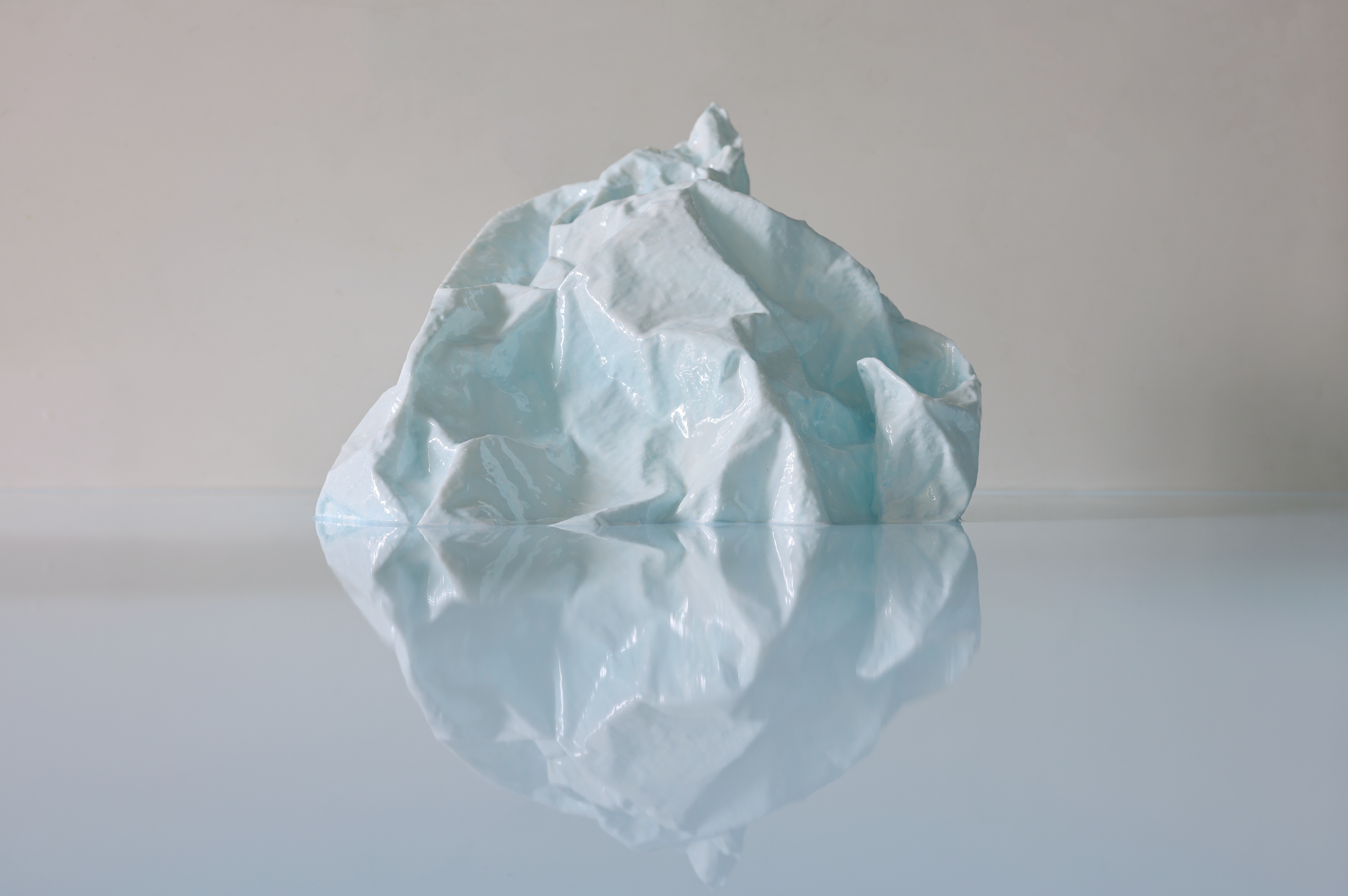〈Plastic Islands〉는 비닐봉지를 3D프린터로 재현하고 푸른색 수지를 입혀 바다 위를 떠다니는 빙하처럼 연출한 작품이다. 일회성 소비재인 비닐봉지가 장엄한 빙하의 형태로 대체되면서, 플라스틱 폐기물이 자연을 대신하는 아이러니를 직관적으로 드러낸다. 인공적 물질이 조형적 질서와 색감 속에서 새로운 형태의 미감을 획득할 때, 관객은 파괴와 아름다움이 공존하는 복합적 감정의 지점을 경험하게 된다.