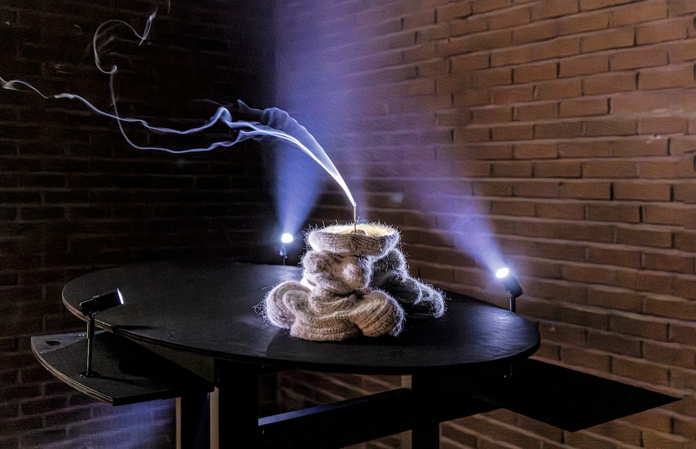 《섭씨 22.5도 습도 20퍼센트 서풍 초속 8.7미터》는 작가의 감각이 시간의 궤적을 따라 뜨개질·연기·바람 으로 순환하는 과정을 보여준다. 물과 공기가 순환하듯, 작가의 작업 역시 자신의 삶 속에서 마주해 온 환경과 관계의 변화 속에서 새로운 리듬과 움직임으로 재발현된다. 이번 전시는 작가 개인의 수행에 머무르지 않는다. 보이지 않는 대기가 만들어내는 리듬과 관계의 세계로 관객을 초대하며, 관계와 교감 속에서 만들어지는 공동의 감각을 제안한다.