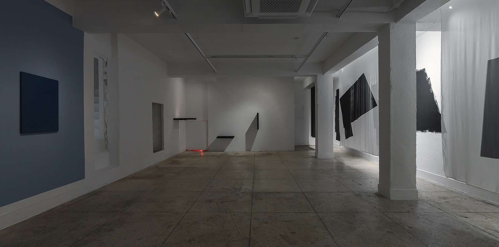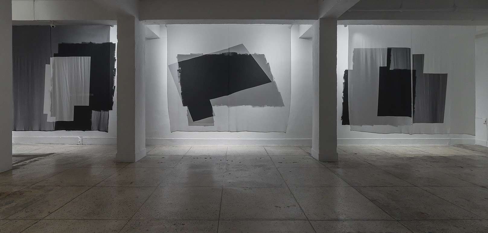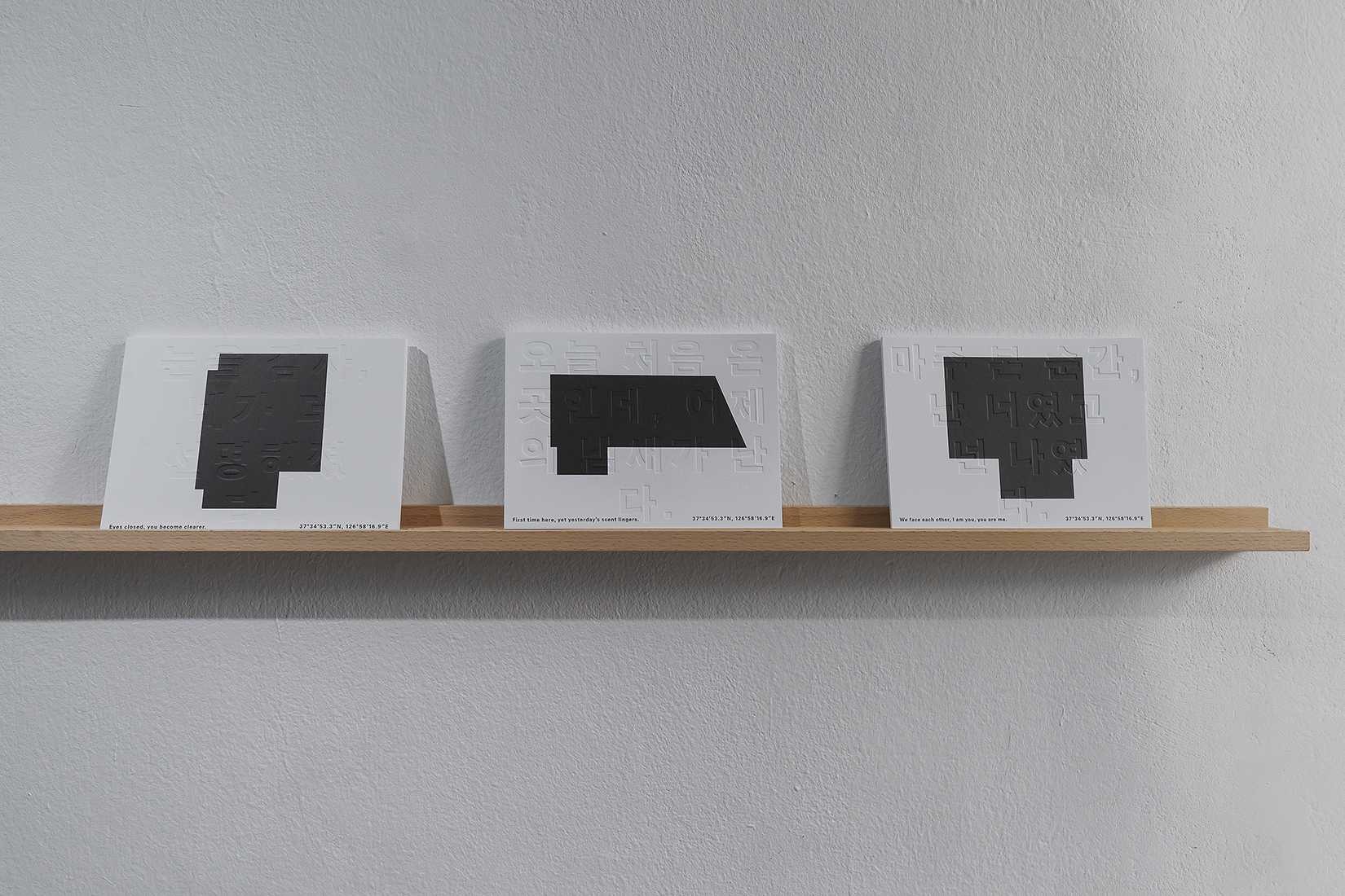 빛과 그림자, 소리, 냄새, 온도와 습도, 질감, 색채가 오감을 자극하고 상호감응하며 시선은 움직인다. 먼저 대상을 선택하여 물리적인 공간 구석구석을 관찰·발견하기 시작한다. 가장 습하고 냄새나는 숨겨진 세 곳의 평면도가 다양한 물성과 톤으로 검은 형상을 드러낸다. 그림자를 감지하기 위한 빛, 빈 공간을 인식시키는 투영, 정적을 일깨우는 사운드, 감정과 기억을 소환하는 냄새는 모두 감각을 일깨우는 무게 없는 존재들이다. 예술가의 감각과 직관을 유사하게 그리고 예리하게 보고 느낄 수 있을 때, 시각적인 감응은 극대화된다. 확장된 지각의 스펙트럼은 다중적 관계를 만들고 유추의 단계를 거친다. 시간 또한 연결된다. 과거의 흔적으로부터 빛의 변화를 감지하는 현재의 순간까지 시간의 흐름 속에서 선택은 관람자의 몫이다.