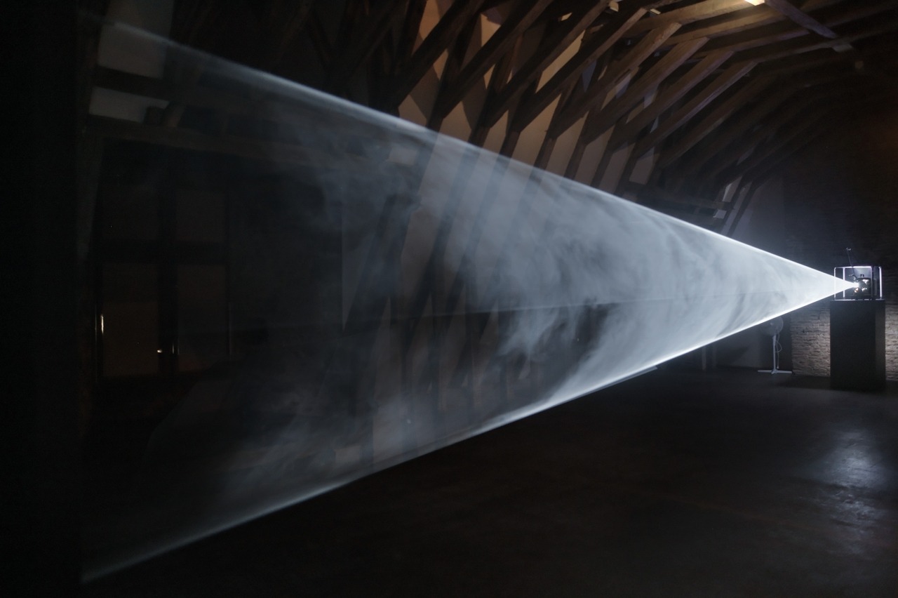 .“작품은 어디에 있는가? 벽에 있는가? 바닥에 있는가? 공간 안에 있는가? 아니면 내가 바로 작품인가?” 전시 《원뿔을 그리는 선 2.0》은 안소니 맥콜의 솔리드 라이트(Solid Light) 작업을 중심으로 영화와 조각· 설치의 경계를 넘나드는 그의 작업 세계를 조명한다. 움직이는 빛의 선은 서서히 공간을 가로지르며 원뿔과 같은 형태를 만들어 내고, 그 과정은 고정된 결과물이 아닌 시간 속에서 생성되는 사건으로 나타난다. 1970년대 초 ‘확장된 시네마’라는 영화계 프로젝트를 통해 작업을 시작한 그는, 1973년 담배 연기와 16mm 프로젝터를 이용한 작품 〈원뿔을 그리는 선〉을 선보였다. 벽에 투사된 하나의 선 드로잉은 공간 속에서 거대한 원뿔 형태를 형성했지만, 당시의 고정관념과 기술적 한계로 인해 이러한 작업을 지속하기는 어려웠다. 그는 이후 약 20여 년간 작업을 중단하게 되었고, 2000년대 초 필름 작업을 디지털 파일로 전환하며 또 하나의 전환기를 맞이한다. 기술의 전환은 작품의 형식뿐 아니라 철학적 깊이에도 영향을 미쳤다. 필름 프로젝터가 만들어내던 백색소음은 사라졌고, 그로 인해 관람객은 자신의 신체와 감각, 내면에 더욱 집중하게 된다. 단순한 선 애니메이션은 율동감 있는 드로잉 선으로 진화했으며, 담배 연기로 채웠던 안개는 연무기로 대체되어 보다 선명한 빛의 구조를 드러낸다. 2000년대 이후 그의 작업에서 가장 두드러진 변화는 관람객의 신체 개입이 보다 적극적으로 요구된다는 점이다. 관람자는 더 이상 스크린 앞에 머무르지 않고, 빛으로 형성된 원뿔형 구조 안으로 들어가도록 유도된다. 작품을 마주한 신체는 빛에 의해 절단되거나 분할되어 보인다. 관람객이 공간 안에 존재하고 움직이며 이동하는 기본적인 행위 자체가 곧 작품의 일부가 된다. 여기서 빛은 더 이상 바라보는 대상이 아니라, 신체가 통과하며 인식하게 되는 경험으로 작동한다. 〈원뿔을 그리는 선 2.0〉은 완성된 형상을 제시하는 전시가 아니다. 전시는 빛이 그려지는 과정을 마주하며, 그 안에 자신의 신체를 위치시키고, 시간 속에서 생성되고 사라지는 형태를 직접 경험하게 한다. 이때 작품은 스크린 위가 아니라, 관람자의 몸과 감각, 그리고 그 순간의 공간 안에서 비로소 형성된다. *출처: 울산시립미술관