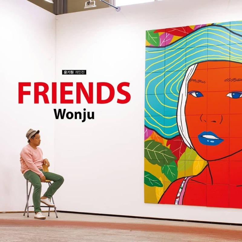 얼굴을 위한 파노라마 고석희(공셸 에디터) “사람이 태어나서 처음 그리는 이미지는 무엇일까. 으레 해와 꽃, 나무와 집 그리고 가까운 이의 얼굴을 그린다. 얼굴을 그린다는 것. 그것은 타인의 존재를 자발적으로 정의하고 묘사하는 행위다. 아울러 그가 내게, 내 가까운 곳에 존재하는 의미를 스스로 묻고 대답하는 과정이다. 윤기원 작가는 오래도록 아끼는 이들의 얼굴을 꾸준히 캔버스에 담아왔다. 그림 속의 찬란한 얼굴들. 그것들이 자신에게 주는 의미를, 작가는 오래 전부터 조용히 이해하고 되새겨 온 듯하다.” 친근하지만, 결코 쉬이 그려진 그림은 아니다. 사실적인 묘사 대신 이목구비의 특징을 압축한 조형, 어느 맑은 아침 창문을 열듯 주저없이 슥슥 뻗은 윤곽선이 호쾌하다. 초상화에선 작가가 바라보는 대상의 정수가 어슴프레 느껴진다. 한 얼굴 안에 선과 선, 색과 색이 구획을 나누고 접경한 모습은 오묘한 긴장감을 잣는다. 대상에 대한 명쾌한 해석이야말로 그의 초상화에 깃든 강력한 힘이다. “제 주변의 인물들을, 그 중에서도 특히 그들의 얼굴을 그리고 있습니다. 제 그림 속에 등장하는 인물들은 어떤 방식으로든 저와 관계된 사람들이죠. 저와 만나고 지나쳤던 시간 속에는 그들 각자의 삶이 있고, 역사가 존재하죠. 이들의 초상화를 통해 그들의 이야기를 풀어내고 싶었습니다.” 그의 작품에선 다분히 팝아트다운, 대중적인 디자인 요소가 눈에 띈다. 동양화의 먹선에서 따온 외곽선, 총천연색 만화책의 한 페이지를 찢어낸 듯한 강렬한 원색은 그의 지인들에게 전례 없는 개성을 부여한다. 머플러, 선글라스 등 그들 하나하나를 상징하고 기억해낼 액세서리들과 함께 말이다. 이처럼 주변인들의 얼굴을 독창적인 선과 색으로 재현하는 그의 작업 스타일은 지구 여러 국가의 예술가들과 함께 민주주의에 대해 고민하면서 작업한 작품 <민주주의>에서 잘 나타난다. 다양한 얼굴색과 포즈, 개성 넘치는 이들이 왁자지껄 떠드는 그 풍경은 어찌 보면 우리가 멀고 어렵게만 생각해왔던 민주주의의 본질인지도 모른다. 단순화의 미학. 비단 기법뿐만 아니라 작품의 메시지를 전하는 태도에서도 윤 작가의 타고난 쾌활함이 배어 있다. 단순하고 대담한 외곽선이 대상을 요약한다면, 작품을 완전히 매듭짓는 건 비비드한 컬러다. 자연색과는 전혀 다른, 즉물적이고 거침없는 채색은 분명 작가의 눈이 아닌, 그가 받았던 인상에서 뻗어나온 것임이 분명하다. 표정이 머금은 감정의 단서를 옹졸하게 묘사하기보다, 작가는 쿨하게 한 발 멀어진 채 여유있게 대상의 속성을 탐색한다. 그림에는 인물에 대한 작가의 시선뿐 아니라 작가와 인물과의 관계, 대상에게 품는 느낌이 담뿍 묻어있다. 윤 작가의 작품에서 종종 나타나는 의상의 패턴, 소재와 질감, 음영의 묘사는 어쩌면 인물을 바라보며 작가가 느꼈던 감탄과 소회를 일종의 디테일로 덧붙인 게 아니었을까. “그림 속의 인물들은 내가 아끼고 사랑하고 또 우러러보는 사람들의 모습입니다. 결국 제가 그림을 그리는 이유는 그들과 더 속깊은 대화를 나누기 위함인 것 같아요.” 윤 작가는 수년째 강원도 원주시의 한 마을에서 동료 작가들과 함께 아트 스튜디오를 열고 수년째 예술 활동을 이어오고 있다. 예술가로 살아가기 위한, 예술이 지역 사회와 세상에 이바지할 수 있는 방법을 모색하고 있다. 요즘은 공셸 유튜브 채널의 전시 소개 프로그램 '윤기원의 아트스톡'(www.youtube.com/c/gongshalltv)을 진행 중이다. 전시 오픈한 갤러리를 직접 찾아가 작품 속에 담긴 작가들의 이야기를 들으며 미술 세계를 공유하기 위함이다. 언젠가는 그가 만난 동료 작가들의 얼굴도 차곡차곡 캔버스에 담아갈 예정이라고. 그가 사람에게서 받았던 온기와 영감 혹은 사람을 위해 소비했던 시간과 에너지는 결코 허투루 쓰이는 법이 없단 걸, 작가는 확신하는 듯하다. 타인을 기억하는 저마다의 방식이 있다. 휴대폰에 저장된 전화번호로써, 명함 속의 이름과 직함으로, 혹은 첫 만남의 분위기와 표정으로. 윤기원 작가에게는 분명 얼굴로 기억될 것이다. 어쩌면 그는 그 얼굴들을 쉬이 잊지 않기 위해서, 혹은 작가 자신의 얼굴을 잃지 않기 위해 계속해서 그림을 그리는지도 모르겠다. 하루하루 부끄럽지 않은 삶을 살아 온 이들의 가치를 보증하고, 애정과 긍지로서 그 얼굴들 하나하나를 보듬기 위해.