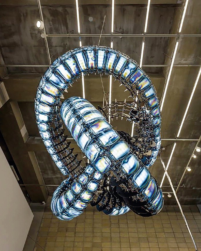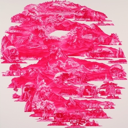 기획의도| <2019 신소장품 : 현대미술의 채도>전은 대전시립미술관이 2019년에 수집한 작품들을 한 자리에 모은 전시다. 공립미술관의 주요 역할 중 하나는 동시대의 미술흐름을 반영하는 우수 작품을 수집하는 일이다. 작품을 연구하고 전시와 교육으로 활용하는 것, 보존 관리하여 후세를 위한 문화유산으로 물려주는 것은 모두 작품 수집을 근간으로 한다. 대전시립미술관은 1998년 개관 이래 객관적인 수집정책을 바탕으로 미술사적으로 유의미한 작품을 수집하고 있다. 2020년의 경우 2005년에 재정비된 수집정책을 따라 한국의 근현대미술을 대표하는 작품, 대전의 근현대미술을 대표하는 작품, 한국의 뉴미디어 부문을 대표하는 작품을 대상으로 했다. 신소장품은 총 35점으로 이 중 기증 작품이 20점, 구입 작품이 15점이다. 각 작품의 의미를 보다 잘 전달하기 위해 본 전시는 크게 기증 작품과 구입 작품으로 구분하여 기획되었으며, 총 3개의 전시실을 3전시실은 고 민경갑 기증 작품, 4-5전시실은 뉴미디어, 설치, 한국과 대전의 대표 회화작품 및 대전 청년작가 작품으로 묶었다. 기증작품을 소개하는 3전시실에서는 2018년 작고한 민경갑 작가의 비구상 실험이 담긴 1960년대 작품부터 작고하기 1년 전인 2017년에 제작된 작품까지 작가의 작품세계를 총망라하고 있다. 그의 작품은 과거 동양화의 답습을 일소하는 현대성과 신선함, 부단한 실험정신을 보여주는 작품으로 ‘한국화’의 진면목을 보여준다. 또한 전시 부제인 ‘현대미술의 채도(Contemporary Chroma)’에서 알 수 있듯이 동시대 현대미술이 지니고 있는 다양한 면면을 수집한 작품들로 조명하고자 한다. 전시내용| 3전시실 - 민경갑 기증작품전 Gallary 3 1933년 충남 논산서 태어난 민경갑 화백은 한국전쟁 중이던 1953년 부산에서 피난하며 지원한 서울대 미대에 입학 후 수묵화의 세계에 입문한다. 이후 대학 4학년 때 한지에 그린 인물화로 최연소 국전 특선을 했다. 대학시절 몰두했던 인물화 이후 1960년대 한국에도 유입된 추상표현주의의 영향으로 실험적인 추상 작업이 유행했고 그도 이에 동참하여 묵림회의 초기 멤버로 참여하였다. 초기 작업은 무채색의 추상화였고 8년여에 이르는 추상 작업 이후 본인의 작품과 맞지 않는다는 자각에 접게 되었다고 한다. “작품 경향도 현대회화라는 이름으로 구상 쪽보다는 비구상 계열의 작업을 하는 작가가 훨씬 많은 것은 시대조류 탓인가 보다. 현대화라고 해서 꼭 비구상이어야 할 이유는 없다.” 그는 1960년대 추상작업에 대해 이렇게 언급했다. “나도 한때는 현대적 감각과 다양한 방법으로 질감의 추구와 형체의 해체를 시도하는 추상작업에 심취되어서 몰입한 적이 있었다. 이는 당시에 한국화가 지니고 있었던 관념의 두꺼운 벽을 파괴시킴으로서 서구 미술과 국제적으로 대등해질 수 있지 않을까하는 막연한 생각에서였다. 그간 하고 있던 작업이 과연 우리 것인가 하는 회의에서 벗어날 수가 없었다. 그래서 처음부터 다시 시작하겠다는 일념으로 추상에서 구상으로의 전환이라는 결단을 내리게 되었다.” 그의 작업은 이후 자연을 주제로 우리의 정체성을 찾는 것으로 향한다. 자연과 인간의 조화를 추구한 특유의 화풍은 1970년대 이후 ‘자연과의 조화’(~1990년대 초반), ‘자연과의 공존’(1990년대 중후반)과 ‘자연 속으로’(2000년대 초반)로 변화해간다. 1970년대 이후 민경갑 화백의 주요 소재인 산이 등장한다. 그는 전통 수묵화의 고정관념을 탈피하여 사실적이면서도 색면이 강조되는 산을 그리며 점차 디테일한 형상들을 생략해나가기 시작한다. 2000년대 ‘자연속으로’의 시기에는 오방색의 색동과 흰 깃발, 단청 등이 등장하며 이는 한국인의 정신성을 나타내는 것이라고 하겠다. 이후 2000년대 무위 無爲(자연그대로의 모습)와 2010년대의 진여 眞如(있는 그대로의 모습)에서는 자연과 인간의 어우러짐을 통해 무위자연의 정신을 담았으며, 2012년 이후 잔상 殘像으로 향한다. 2018년 세상을 떠나기 전의 그림은 그간 꾸준히 그려오던 산은 점차 간결해지고 무채색의 수묵언어로 대체된다. 4전시실 Hall 4 윤지선 YOON Jiseon 누더기 얼굴 #15004 Rag face#15004 2015 초상 사진과 광목 위에 재봉질 sewing on fabric and photograph 135×104cm 자신의 얼굴 사진에 미싱으로 박음질을 하고 변형시켜 전혀 다른 사람처럼 보이게 함으로써 고정된 자아의 개념에 의문을 던진다. 색색의 선들은 그로테스크한 이미지를 구현하는데, 이는 전통적인 미싱의 기능을 전복시킴으로써 여성을 가두어 두었던 이미지를 해방시키는 과정이다. 이세현 LEE Seahyun Between Red-015JUL02 2015 린넨에 유채 oil on linen 250×250cm 화면을 채우고 있는 극사실적인 형상들은 모두 붉은색의 비현실적 색감으로 그려져 관람자로 하여금 긴장감과 불안한 감정을 일으킨다. 작품 곳곳에 배치된 해골로 상징되는 죽음에 대한 메타포는 전쟁과 분단을 겪은 우리 역사를 담아내고 있다. 김주현 KIM Joohyun 뫼비우스의 띠 Möbius Strip 2016 동선, 자체제작 기판, LED, 3.3V 전압조절기 copper wire, electric plate, LED, 3.3V SPMS 135×170×55cm (2kg) 우주 공간의 다양한 변화와 가능성을 형상화한 작품으로